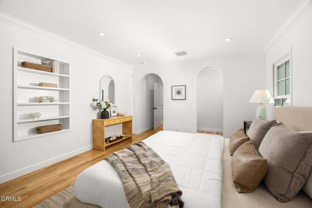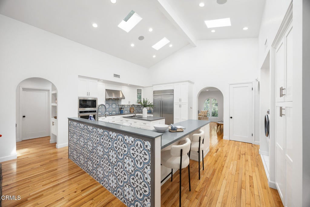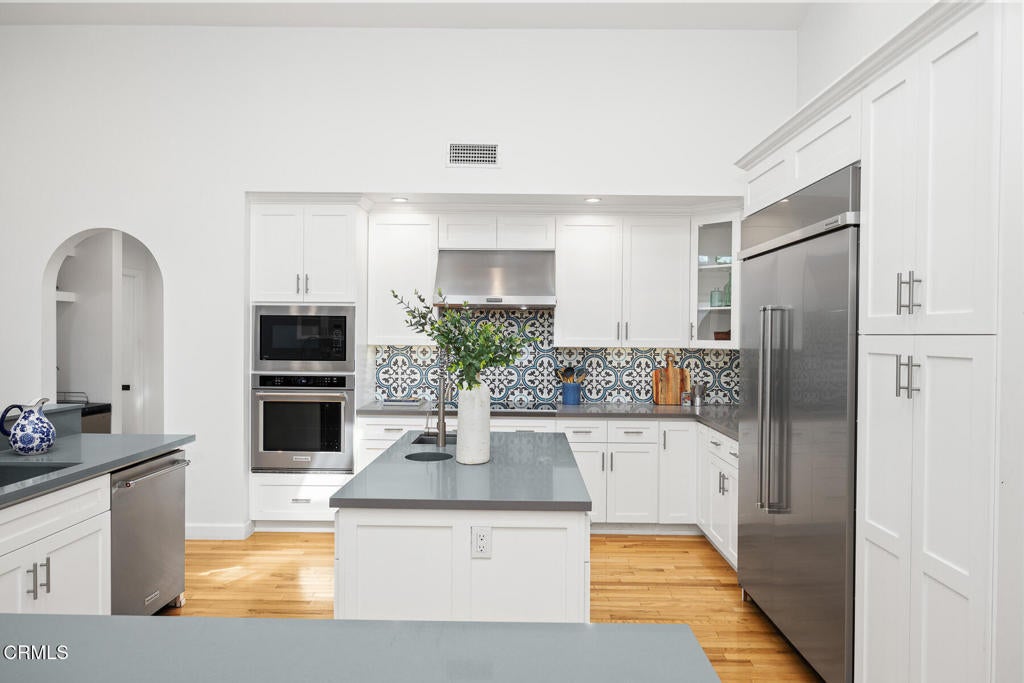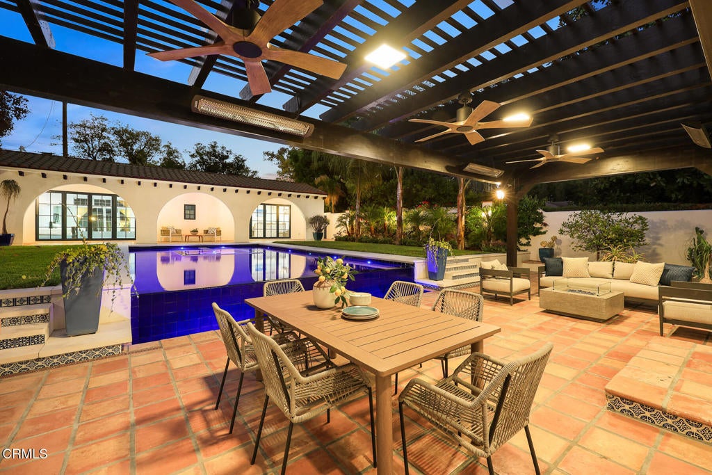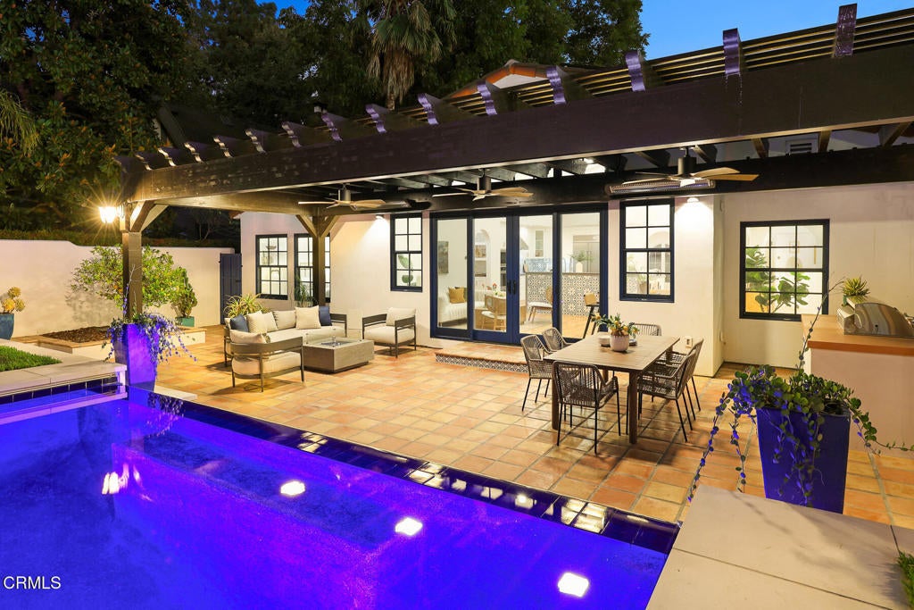 Stunning Renovated Spanish-Style Retreat with Luxe Features & Detached ADU. Welcome to this beautifully remodeled Spanish-style residence that perfectly blends timeless architectural charm with modern luxury. Situated in a serene and sought-after neighborhood, this captivating 4-bedroom, 2-bathroom home boasts refined details and exceptional craftsmanship throughout. Step through the formal arched entryway into a grand interior highlighted by soaring ceilings, rich hardwood floors, and elegant arched passageways that guide you through the thoughtfully designed living spaces. The inviting living room features a cozy fireplace, custom built-in bookshelf and dual arched windows, perfect for intimate gatherings or quiet evenings at home. The gourmet kitchen is a chef's dream, showcasing stainless steel built-in appliances, a generous center island with a second sink, two dishwashers, an abundance of counter space and open to the family room ideal for effortless entertaining and everyday living. Retreat to the spacious bedrooms for rest and relaxation, while the spa-inspired bathrooms offer a touch of luxury with upscale finishes. Step outside to your private oasis--a pergola-covered Spanish tile patio leads to a breathtaking pool and spa adorned with elegant water features. Whether lounging by the water or dining al fresco, the outdoor space is designed for year-round enjoyment. Adding even more value and versatility, the detached ADU spanning over 1,000 square feet, offers a covered patio and is ideal as a guest suite, home office or gym. This exceptional home effortlessly combines classic Spanish elegance with modern convenience--truly a rare gem not to be missed.