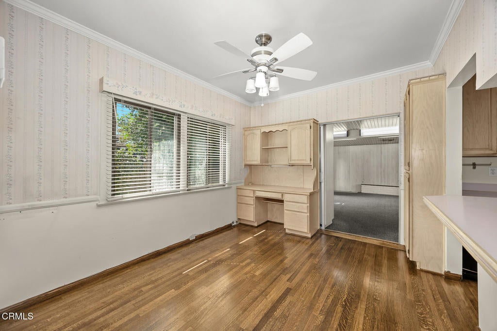Charming Alhambra Fixer with Endless Potential. Nestled in a desirable Alhambra neighborhood and close to South Pasadena, this character-filled fixer-upper is brimming with potential and original charm. Step through the entryway into a spacious living room featuring hardwood floors, fireplace, elegant box beam ceilings, and built-in bookshelves--perfect for creating a warm and inviting atmosphere. The formal dining room also beautifully showcases original hardwood floors, classic wainscoting and flows seamlessly into an attached sunroom, offering a sunny retreat or a potential home office. A large kitchen and breakfast area open to a generous family room, ideal for entertaining or everyday living. Adjacent, you'll find a convenient laundry room for added functionality. This home offers three bedrooms and two bathrooms, along with distinctive architectural details including hardwood floors, decorative crown molding, and soaring high ceilings. Outside, a detached 2-car garage includes a versatile bonus room and pull-down stair access to attic storage--great for a workshop, studio, or future expansion. There is an abundance of original character and room to make it your own, this Alhambra gem is a rare opportunity for investors or homeowners looking to renovate and build equity. Conveniently close to South Pasadena, Alhambra Park and much more. Don't miss out on the chance to transform this unique property into your dream home!