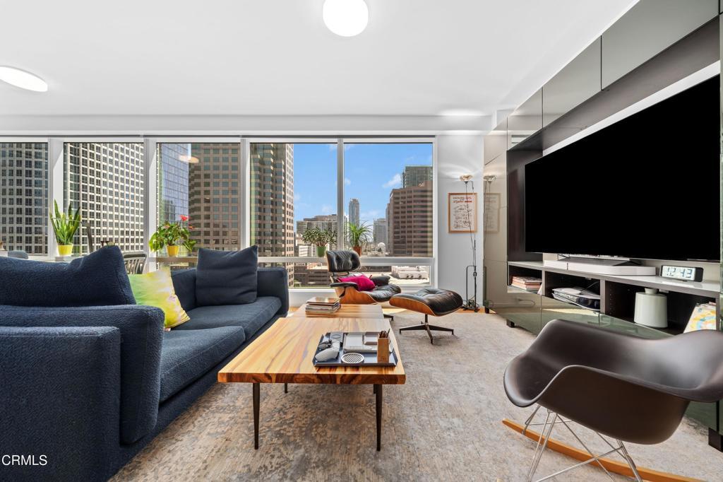 Modern Luxury in the Heart of DTLA. Experience elevated city living in one of Downtown LA's most celebrated high-rises -- Metropolis Tower 2. This corner residence spans 1,311 sq. ft. and features 2 bedrooms, 2 bathrooms, and wraparound views of the city skyline -- framed by floor-to-ceiling windows and enhanced by custom motorized shades for comfort and privacy.Inside, a thoughtful open-concept layout blends warm wood floors with modern finishes, creating a space that feels both refined and relaxed. The chef's kitchen is anchored by a large center island -- ideal for entertaining -- and equipped with top-tier Miele appliances. The primary suite offers a spa-like retreat with dual vanities, soaking tub, and custom closets designed for everyday organization.Life at Metropolis Tower 2 extends far beyond your front door. The amenity deck is one of the most impressive in Los Angeles -- a full city block dedicated to recreation and relaxation. Picture yourself at the resort-style pool, in a private cabana, or entertaining in the glass-enclosed dining pavilion. There's even a resident dog park for four-legged friends. Indoors, enjoy a screening room, billiards lounge, expansive gym with yoga studio, and a SkyLounge on the 21st floor -- a perfect sunset vantage point over the LA skyline.A 24-hour concierge, secured parking, and pet-friendly policies complete the luxury experience. Priced competitively per square foot, this residence offers exceptional value in one of DTLA's premier full-service buildings.Metropolis Tower 2 -- where luxury meets lifestyle.