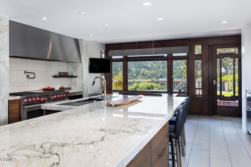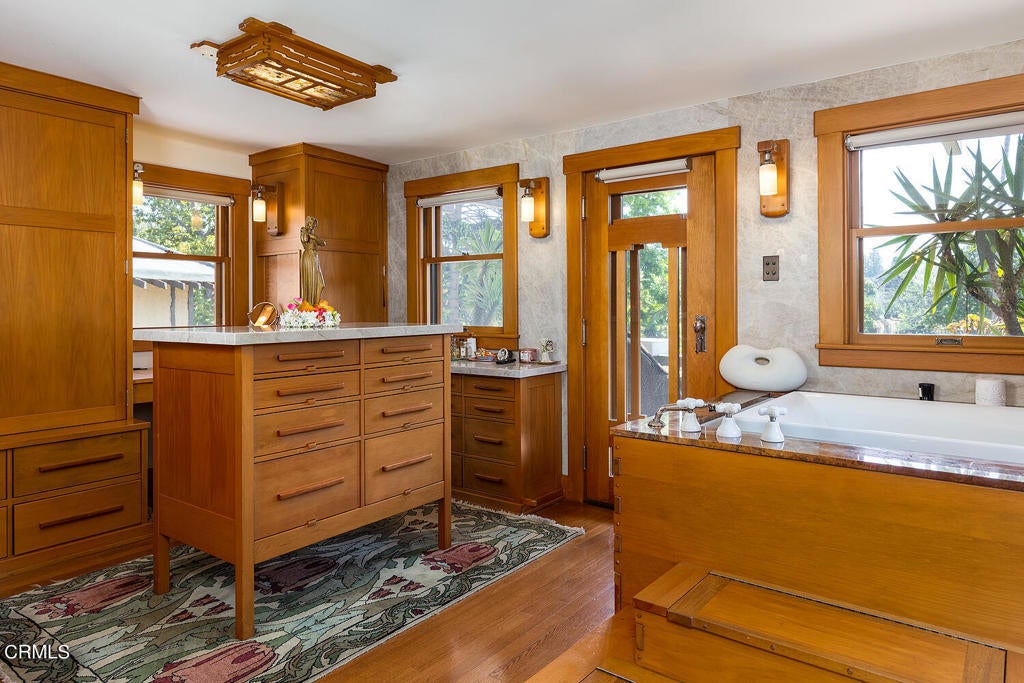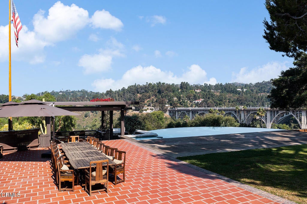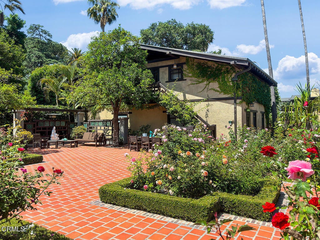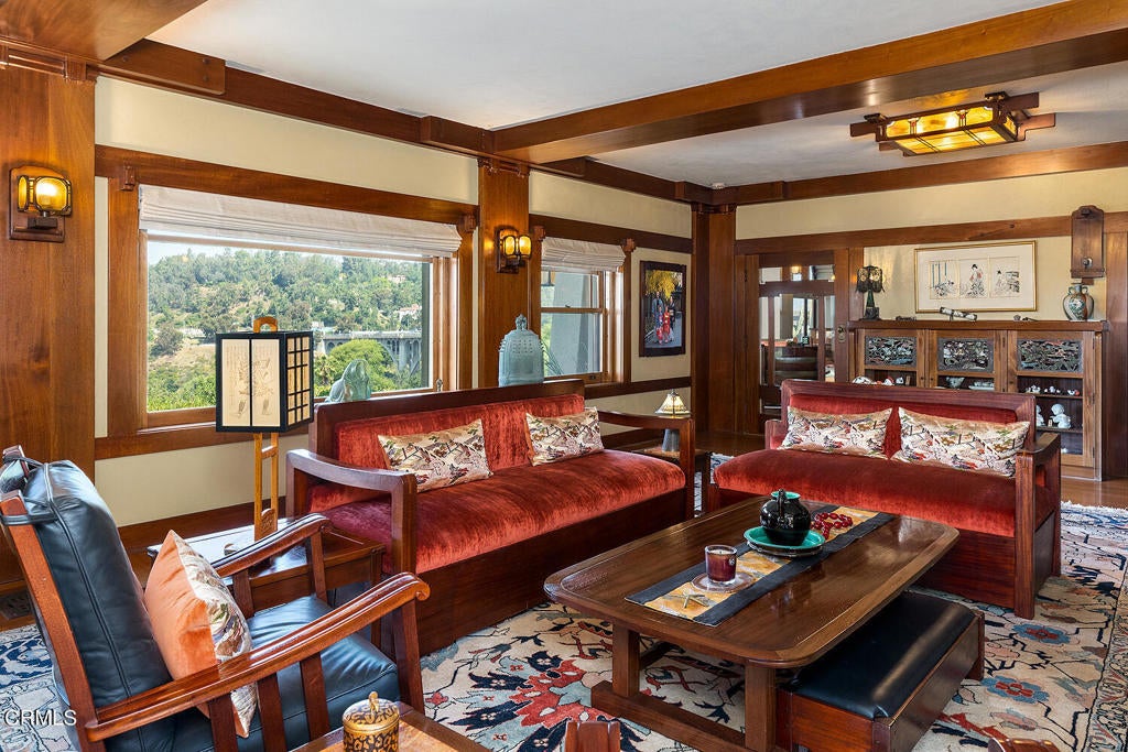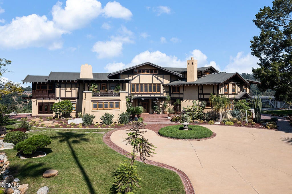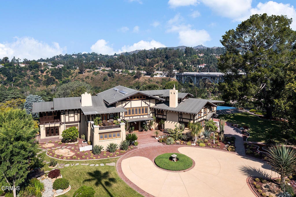 The Robinson House, masterfully crafted by architects Charles & Henry Greene in 1906, sits majestically on 3.36 sprawling acres overlooking the vast Arroyo Seco bluffs & the historic Colorado Bridge. Meticulously restored over 7 years by its third owners, this iconic mansion proudly showcases exquisite wood detail & artisan craftsmanship from a bygone era blending seamlessly with modern technology & amenities for today's discerning lifestyle. A long gated driveway, past wondrous landscaped gardens, offers a first breathtaking view of this architectural treasure. A dramatic two-story entry foyer, clad in rare Port Orford cedar, welcomes guests, and features a cantilevered staircase & an original mahogany stained-glass chandelier. Spectacular & spacious public rooms, furnished in original Greene & Greene furniture or period reproductions, capture panoramic views of the Arroyo. A stunning LR with Batchelder-tile fireplace & a handsome library with built-in inglenook seating & fireplace, provide intimate spaces to host friends. Enjoy romantic sunset views as you dine at a custom sushi bar, or in the magnificent formal DR with a gorgeous stained-glass chandelier. French doors lead out to a glorious terrace, an infinity-edged pool perched dramatically on the Arroyo banks with swim-up bar, an outdoor kitchen & numerous mesmerizing garden destinations. The newly-remodeled gourmet kitchen is a chef's dream with top-of-the-line appliances, a 14' center island & a built-in breakfast area with spectacular vistas. Four generous BR suites with custom closets & panoramic views, and a laundry room, grace the second floor. A back staircase continues to a darling guest suite with sitting room on the third level. A 2265sf basement houses a media room, wine cellar, billiard room, card room & storage rooms. Bask in the CA sun and enjoy the many enchanting garden rooms after an invigorating swim on the Arroyo's edge or a pickle-ball match. Stroll the leafy paths by the stream & wisteria-covered bridge; savor delicious pizza hot from the oven; relax by the romantic lily pond; enjoy delicious fruit from the orchard; be intoxicated by the fragrant rose garden; mediate in the Zen Japanese garden; camp out in a teepee under the night stars; stroll to Old Town for dinner & shopping; or catch an easy freeway to DTLA or the West side... the lifestyle possibilities are truly endless when you seize this magical once-in-a-lifetime opportunity to experience Pasadena's ultimate Paradise!