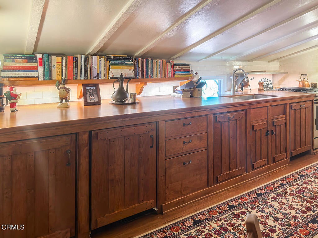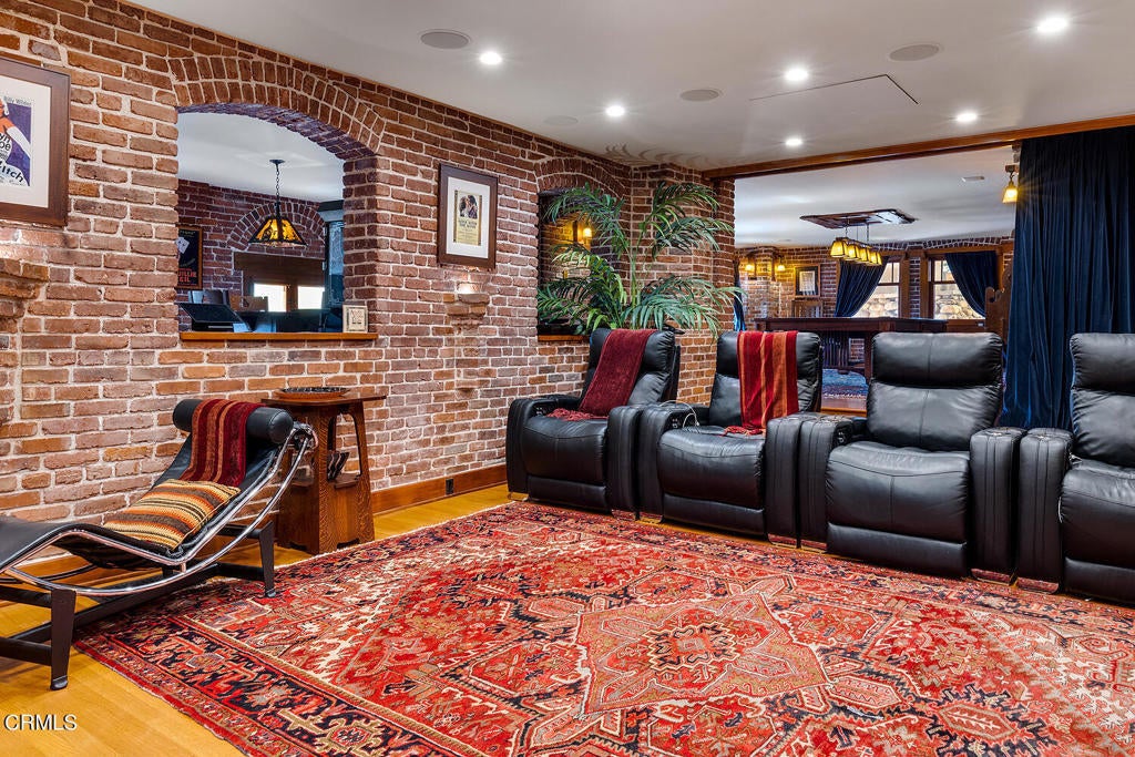 Beamed Ceilings, Wet Bar, Breakfast Bar, Built-in Features, Brick Walls, Balcony, Crown Molding, Separate/Formal Dining Room, Eat-in Kitchen, High Ceilings, In-Law Floorplan, Living Room Deck Attached, Multiple Staircases, Open Floorplan, Pantry, Partially Furnished, Paneling/Wainscoting, Stone Counters, Recessed Lighting, Storage, Smart Home