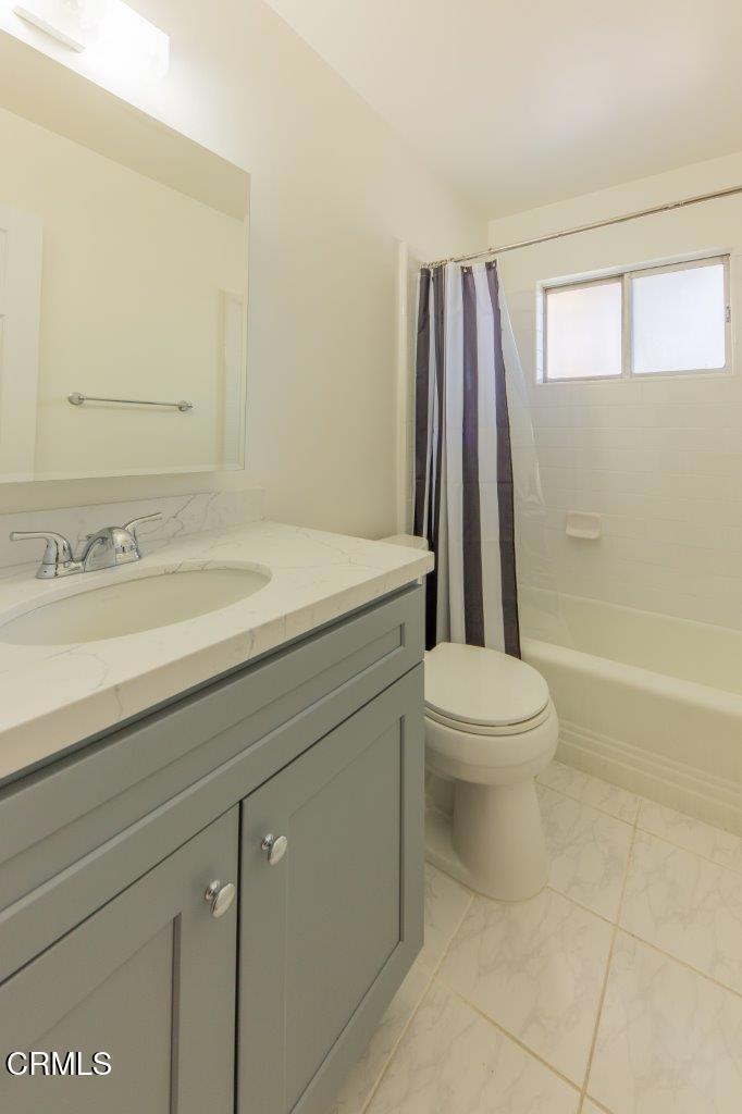 This top floor unit has an ideal setup in a great, central area. This is a very clean, remodeled, large, two bedroom home with an open floor plan and lots and lots of space. The kitchen is brand new...new cabinets, counters, appliances, sink and fixtures. The kitchen is bold, bright and stunning. The living room is huge. The bedrooms are also large. Bathroom is also completely remodeled. The unit is private with only two common walls. There is a laundry facility in the building. This home comes with one garage space for covered parking AND one outside parking space in the driveway (two assigned parking spaces).