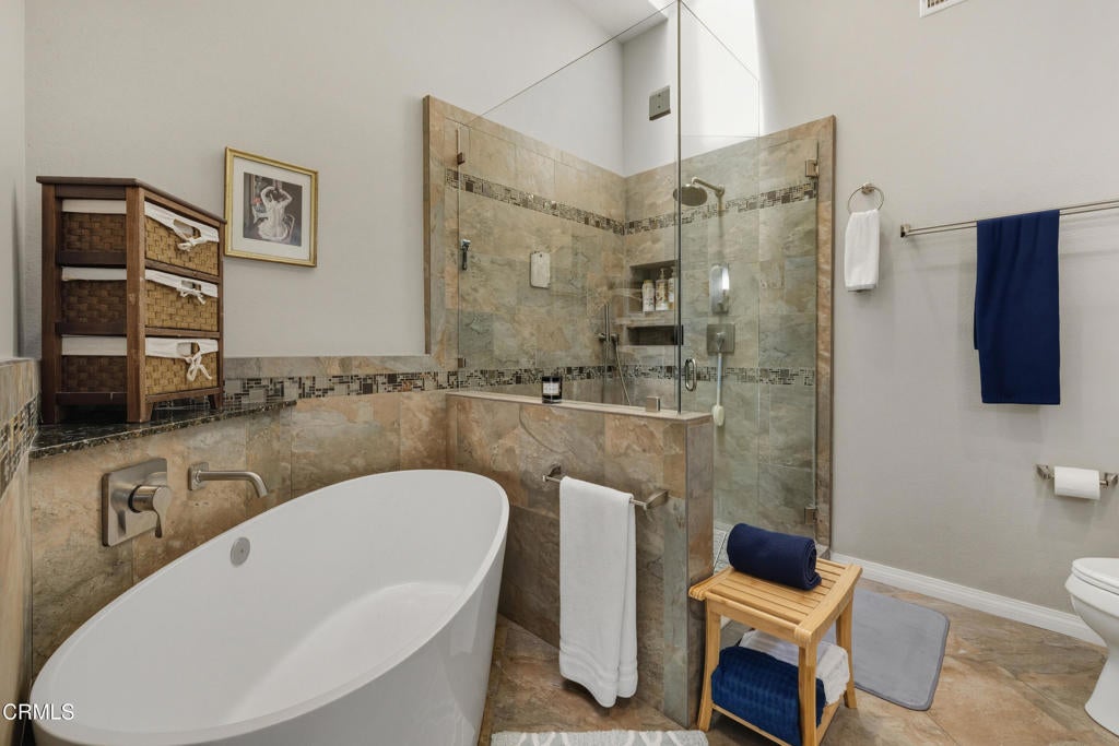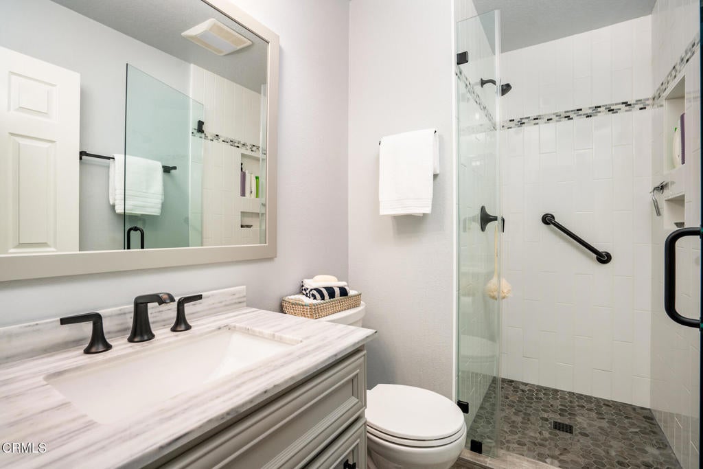 Located in Pacific Ranch, this neighborhood features lush landscaping and a security-gated entrance. This Barcelona model is a Tri-Level and has been remodeled/updated. Location, location, location: as you enter through the sun-filled front patio, notice the quiet backside proximity within the complex. Many of the units look down into the parking areas from the Primary Bedroom and Living Rooms, and can hear cars coming and going; unless you live with this daily, you are not aware! The front door opens into an oversized living room, where you can cozy up by the fireplace. The updated kitchen features a breakfast bar, stainless-steel appliances, granite counters, and oversized white cabinetry with all the features you are looking for, such as pull-out shelving, a corner lazy Susan, a bread warmer, and glass accents. Not to mention the custom backsplash that runs up to hidden lights under the cabinets. The kitchen's newest features include a motion-activated faucet and a glass rinser. The 5-burner gas stove is great for cooking family meals and entertaining larger groups. Adjacent to the kitchen is the second back patio, ideal for outdoor dining. Three bedrooms are located upstairs, and the primary bedroom and bath are stunning; the bathroom feels like you are in a luxurious hotel. There is also an oversized extra room on the lower level that can be used as a guest room, office, or workout room, and features its own en-suite bathroom with a shower. There is a convenient inside laundry room and direct garage access. Enjoy a stroll through the lighted park-like grounds with three pools, three spas, BBQ, & clubhouses. This unit has sunshine on the three different patios. The back patio sun arrives around 7-8 AM, from there relax on the front patio and enjoy the surrounding greenery. The late afternoon sun peaks on the primary balcony/patio, where you can appreciate the comfortable ocean breezes from the southwest that flow through the bedrooms upstairs. The quiet and privacy of this location are ideal. Do you love the Beach Life? Pacific Ranch is approximately 1.5 miles from the ocean. from the beautiful beaches of Huntington Beach, the popular Pacific City and Seacliff Shopping Center, Main Street Village, and the infamous HB Pier, with breathtaking sunsets that remind me of Hawaii. Enjoy great shops and eateries while being surrounded by award-winning schools. You will be living the coastal lifestyle at its finest