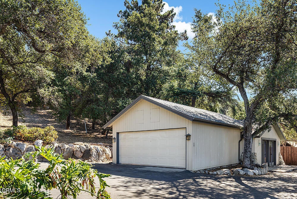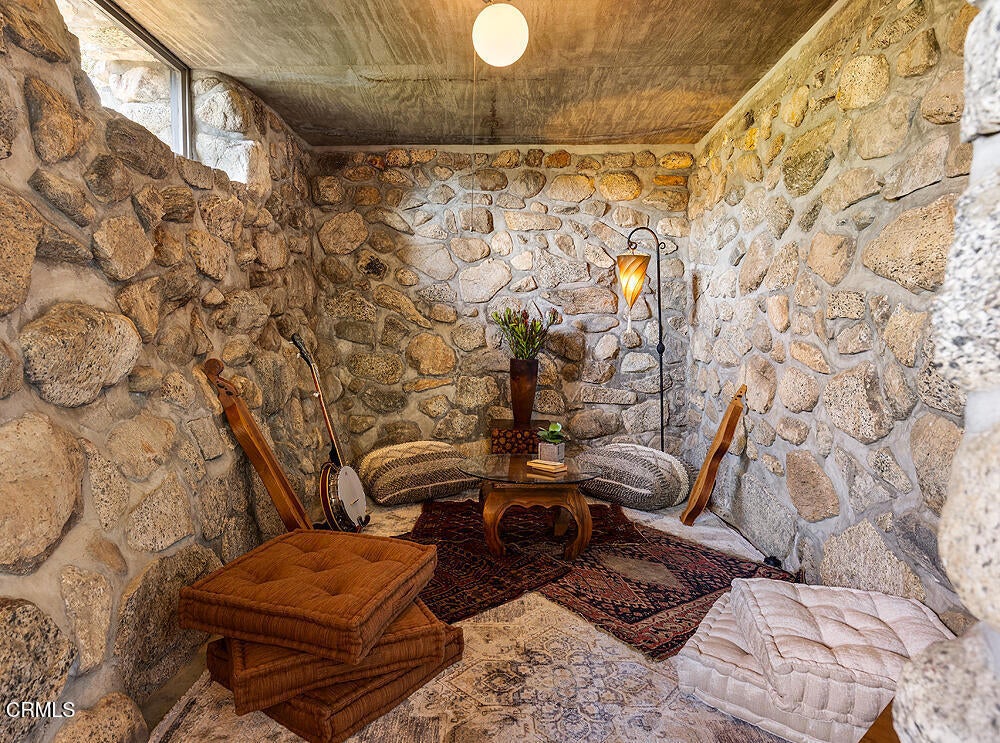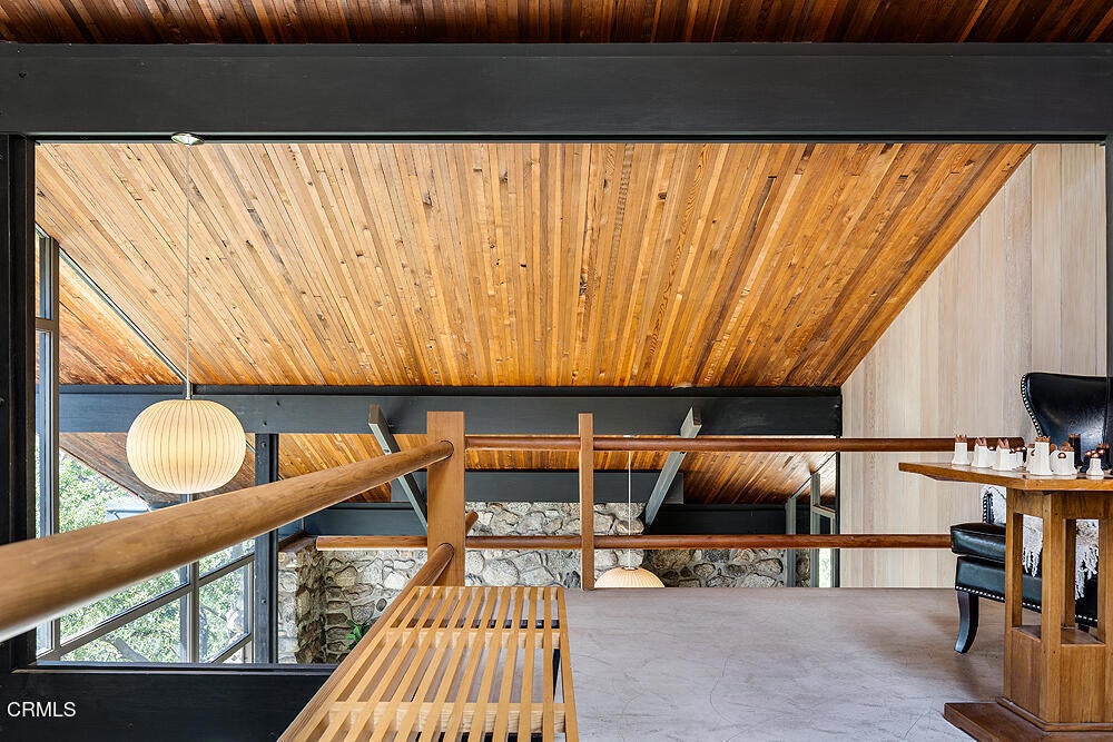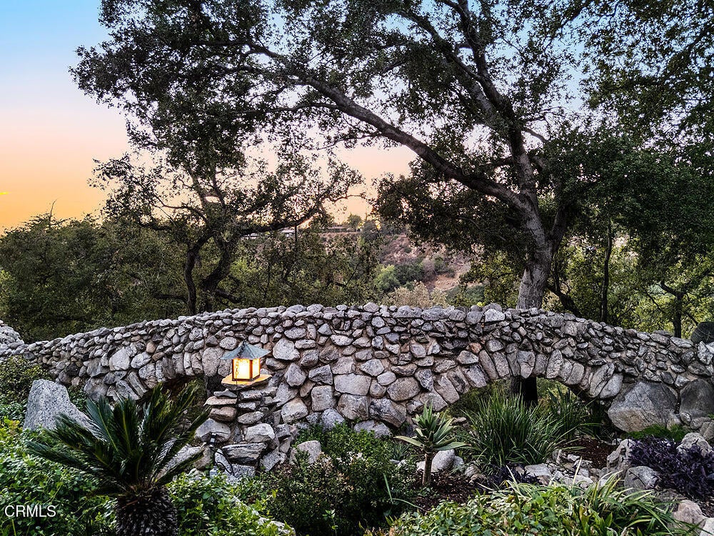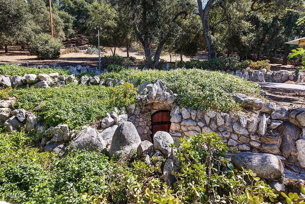 Up a secluded private road in a grove of California live oaks is a creative haven with a unique legacy. 'Boulder Crest' is singular: a historic marvel, an architectural gem, a property rising from the landscape -- an enduring biophilic design. Built of massive granite boulders placed at the beginning of the 20th century, the house and grounds are a feat of vision, engineering and artisan masonry. This home seamlessly melds arts and crafts elements with mid-century modernism - the net effect is timeless - from arroyo stone work and old growth redwood to post & beam construction. Serpentine stone-lined pathways cross a network of masonry channels and terraces on the approach to the entry. A keystone engraved '1912' heralds over the arched double door, opening to reveal rich jade-hued concrete floors. Redwood paneling, vaulted beamed ceilings and oversize pendant lanterns warm a jaw-dropping step-down living room, anchored by the floor-to-ceiling stone fireplace and wall of windows. The living room connects to both the dining room and galley kitchen with rock walls and clerestory windows, as well as the first bedroom and adjacent den (once a gold vault, ready to be reimagined as a music room, meditation space, or quiet office). Even the 3/4 bath boasts a beautiful river rock wall that imparts a feeling of warmth and security. Upstairs, a spacious art studio enjoys canyon vistas, a private patio and calming sounds of the corten steel water feature. Past shoji screens with encapsulated botanical elements, find the generous primary suite, with its own wall of windows, large cantilevered deck with treetop and pool views, and impeccable full bath. Adjacent, a lofted library space overlooks the living room, separate from the public space, but connected by the beautiful curved stone staircase. The 2.75 acre grounds comprise a large private pool, subterranean workshop, wine cellar, patios, two car garage and over 160 oak trees on two parcels (one measuring 69,006 SF and a second, completely separate lot measuring 50,625 SF). The property sits adjacent to El Prieto Canyon (famed burial place of abolitionist Owen Brown), and at the base of Millard Canyon - in winter, the stream flowing through Angeles National Forest can be heard from the yard. This rare historic home has had just three owners (artists or visionaries, all) -- recognized by Altadena Heritage and published a handful of times, it remains largely under the radar and relaxed. What a joy it is to behold.