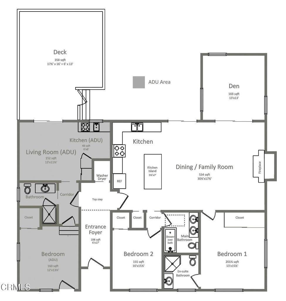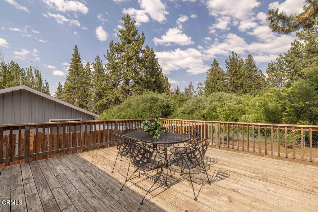 This beautifully remodeled property features 2 bedrooms plus a versatile den (easily used as a third bedroom) and 2 bathrooms in the main house, along with a private 1-bedroom, 1-bathroom ADU with its own entrance.Perfect for owner-occupancy with rental income potential, multi-generational living, or those needing flexible space for guests, extended family, or a dedicated home office, this home offers both functionality and comfort.The main house showcases newer flooring and elegant tile upgrades throughout. A bright, open-concept layout seamlessly connects the kitchen, dining, and living areas, creating a warm and inviting atmosphere. The modern L-shaped kitchen is equipped with a large island, newer appliances, a 200-amp electrical panel, updated wiring, and newer piping--making it ideal for both everyday living and entertaining. A cozy fireplace serves as the focal point of the living room, while the dining area opens to a spacious fenced backyard with a deck, perfect for outdoor gatherings.The primary suite includes an en-suite bathroom, and the den offers great flexibility as an office, guest room, or playroom, complete with its own split A/C and heating unit. Additional upgrades include a dedicated laundry room, updated heating system, and newer water heater.The ADU provides complete privacy with a separate entrance, its own split A/C and heating unit, a full kitchen, bedroom, living area, and bathroom--ideal for extended family, guests, or other permitted uses.Enjoy the large fenced backyard and deck for entertaining and ample on-site parking, a major advantage in Big Bear where overnight street parking is restricted. The home is just minutes from The Village, Big Bear Lake, and local hiking trails, making it an excellent option for full-time living or as a vacation investment property.