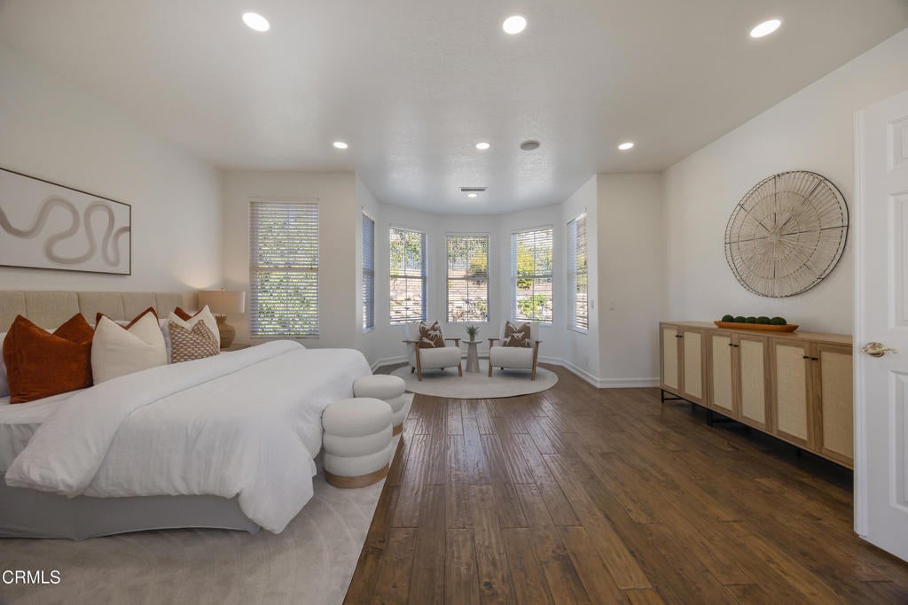Nestled within La Vina, a private gated community that embodies prestige, sophistication, and timeless beauty, this 5-bedroom + office (or 6th bedroom) residence captures the essence of modern California living, where architectural warmth meets contemporary innovation. Every space evokes serenity, comfort, and connection to nature.Step into this Spanish Revival masterpiece, where a soaring two-story foyer and sparkling crystal chandelier set the tone for the beautifully renewed interior, warmed by a floor-to-ceiling fireplace and bathed in natural light from an abundance of windows.French doors open to the interior courtyard, a sun-filled sanctuary that blurs the line between indoors and out. Multiple patios, garden spaces, and open-air seating areas invite al-fresco dining, play, and relaxation, perfect for dinner parties or weekend fun under the California sky.An open yet defined floor plan welcomes you inside. The elegant living room and formal dining room provide distinct spaces for gathering, while the inviting family room opens directly to the chef's kitchen and breakfast nook, creating a seamless flow for everyday living and entertaining. The kitchen impresses with premium stone countertops, designer cabinetry, stainless-steel appliances, and a generous prep island ideal for both casual dining and culinary creativity.The newly re-envisioned primary suite offers a true retreat with spa-inspired luxury: a freestanding soaking tub, dual walk-in shower, exquisite tilework, and an oversized walk-in closet. Additional bedrooms provide versatility for family, guests, or a home office.Outdoors, tranquility continues with a romantic courtyard fireplace, a soothing fountain, and lush landscaping designed for privacy. A porte-cochere adds architectural charm and functional elegance, and multiple entertaining areas make this home ideal for gatherings large or small.Fully paid-off Tesla solar panels deliver eco-conscious living and long-term savings, complemented by hardwood floors throughout, recessed LED lighting, and a private setting on a peaceful cul-de-sac.Located moments from scenic hiking trails, vibrant parks, and the charm of nearby Pasadena, this home embodies the perfect balance of sophistication, comfort, and calm--a true showcase of refined California living.*This home can be sold fully furnished at an adjusted price--please call for details.Truly a must see!