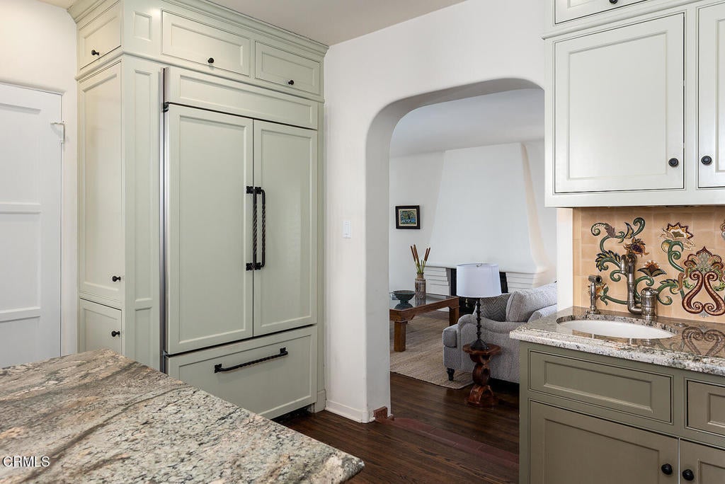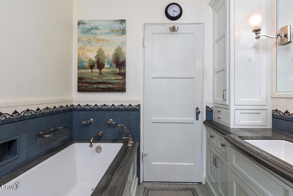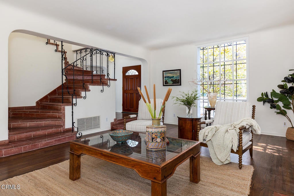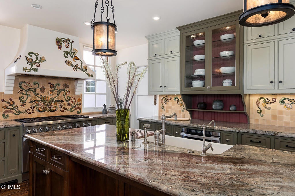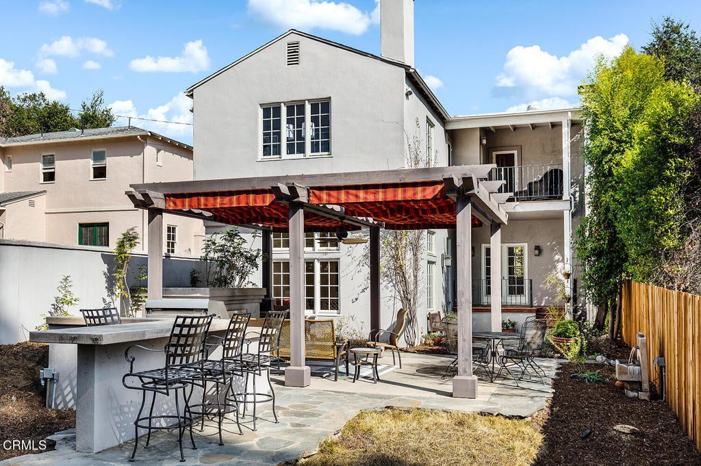 This elegant 1932 colonial on Altadena's Boulder Road is a gem. Preserved architectural elements like hand-troweled stucco, classic brick work and symmetrical facade with large windows provide curb appeal and a welcoming presence. The property is anchored by the street's eponymous granite boulders and handsome curving stone front path around a native grass meadow, with a quiet front patio just beyond a sculptural Redbud tree. A generous paneled wood front door opens to reveal rich oak hardwood floor and plaster walls; the quality and craftsmanship here would be impossible to duplicate in 2025. Comprising over 3000 ft, this 4 bedroom, 3 bath home features hand-finished coved ceilings and flattened arches throughout the public rooms. On the south of the ground floor, a grand living room offers a generous decorative fireplace, casement windows, and French doors opening to the backyard. To the north, the formal dining room with bay window and built-in cabinetry. Both the dining and living rooms connect to the home's generous designer kitchen, featuring custom cabinetry, incredible artisan tilework that elevates the every day to the extraordinary. Rich stone countertops, Shaws farmhouse sink, top-of-the-line fixtures and stainless steel appliances, are a chef's dream. A convenient powder room and pantry provide access to the driveway for quick unloading and easy entertaining. Past the kitchen office niche, down a few steps find a spacious family room with soaring ceilings, walls of windows, a second fireplace and access to the backyard. A fabulous bonus: sprawling basement with pantry and storage is just steps down from the family room. Bedrooms and private spaces can be found on the second floor, up a terracotta-hued magnesite floor staircase, a piece of craftsmanship to be cherished. Four bedrooms enjoy natural light, views and ample closet space. The large primary suite offers incredible mountain views, a full ensuite bath, with soaking tub and direct access to balcony overlooking the backyard. Another stylish full bath boasting custom tile work, stone countertops, and skylight, and the windowed laundry room with its own sink complete the upper level. Outside, the entertainer's backyard is fenced with a covered outdoor kitchen and dining patio space and backyard punctuated by more spectacular granite boulders. Incredible mountain views, proximity to beloved local spots...this is a rare opportunity to own a piece of historic architecture in the foothills.