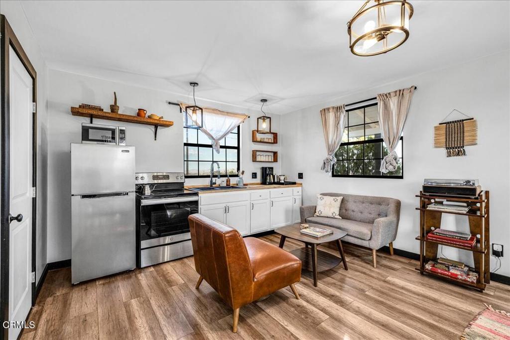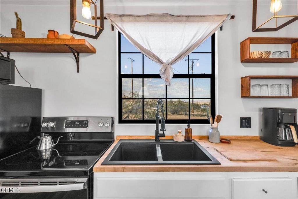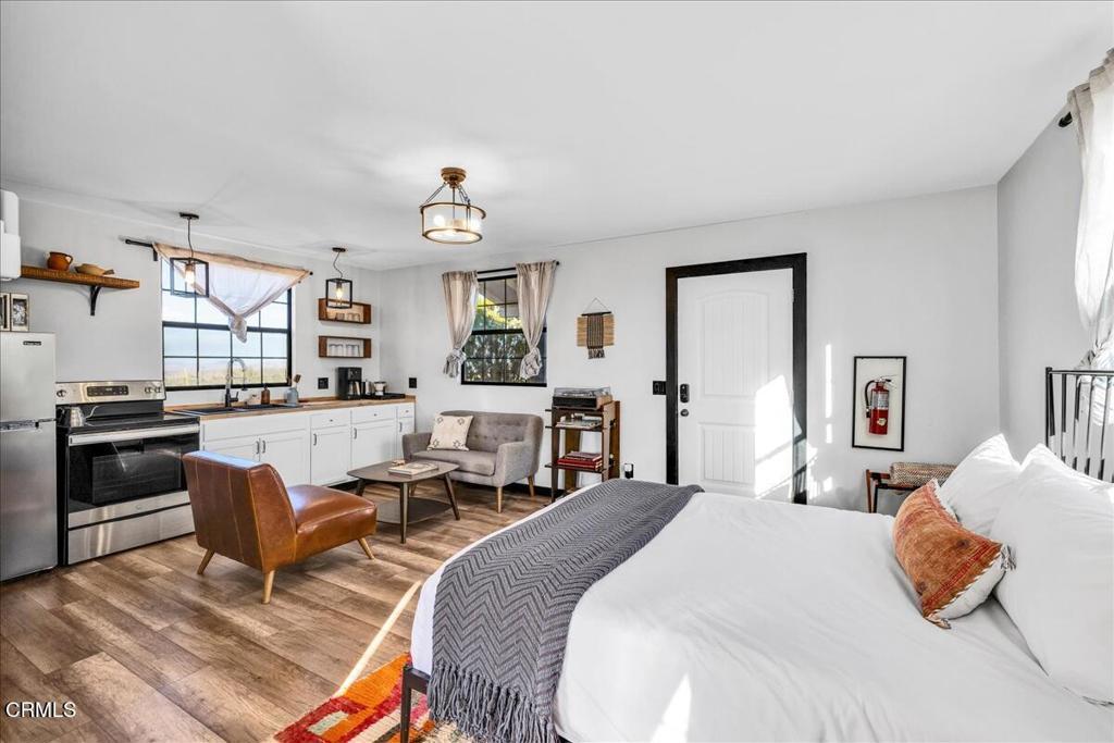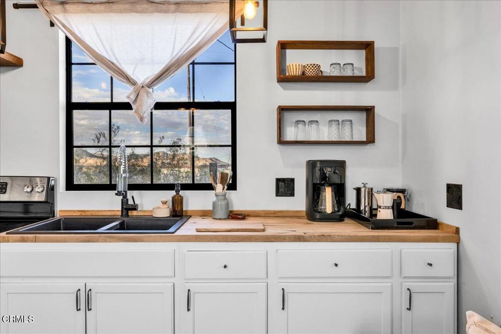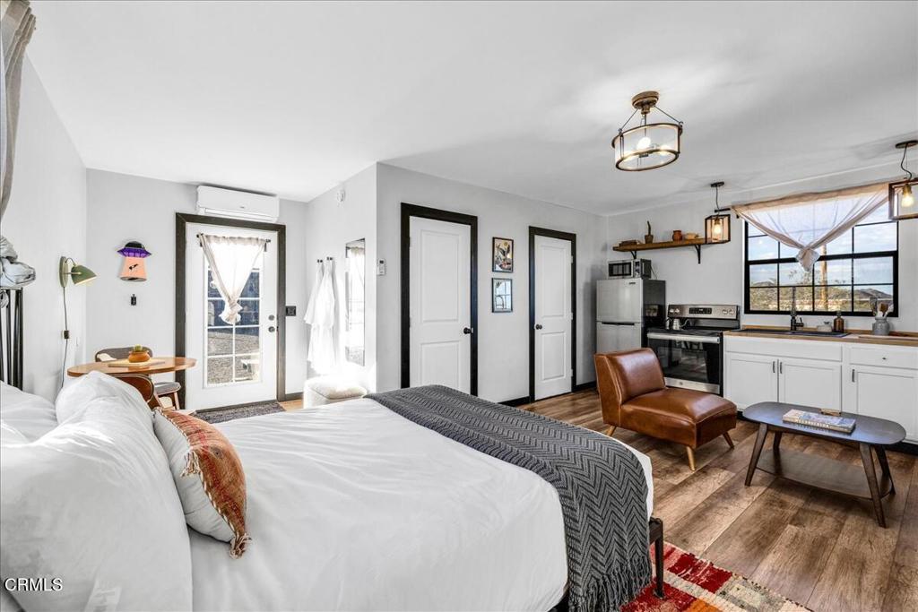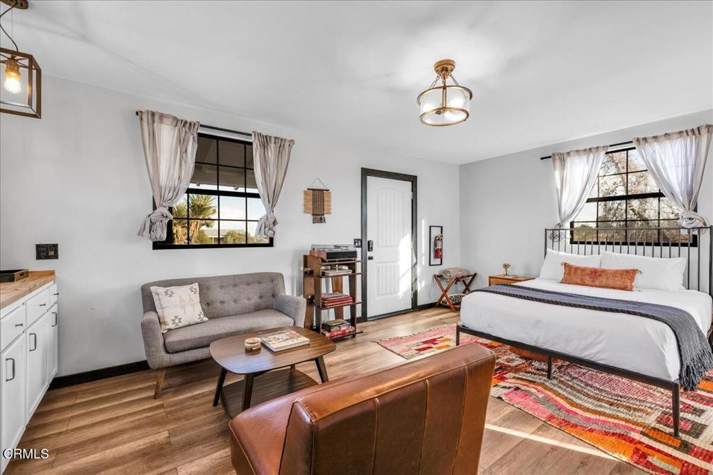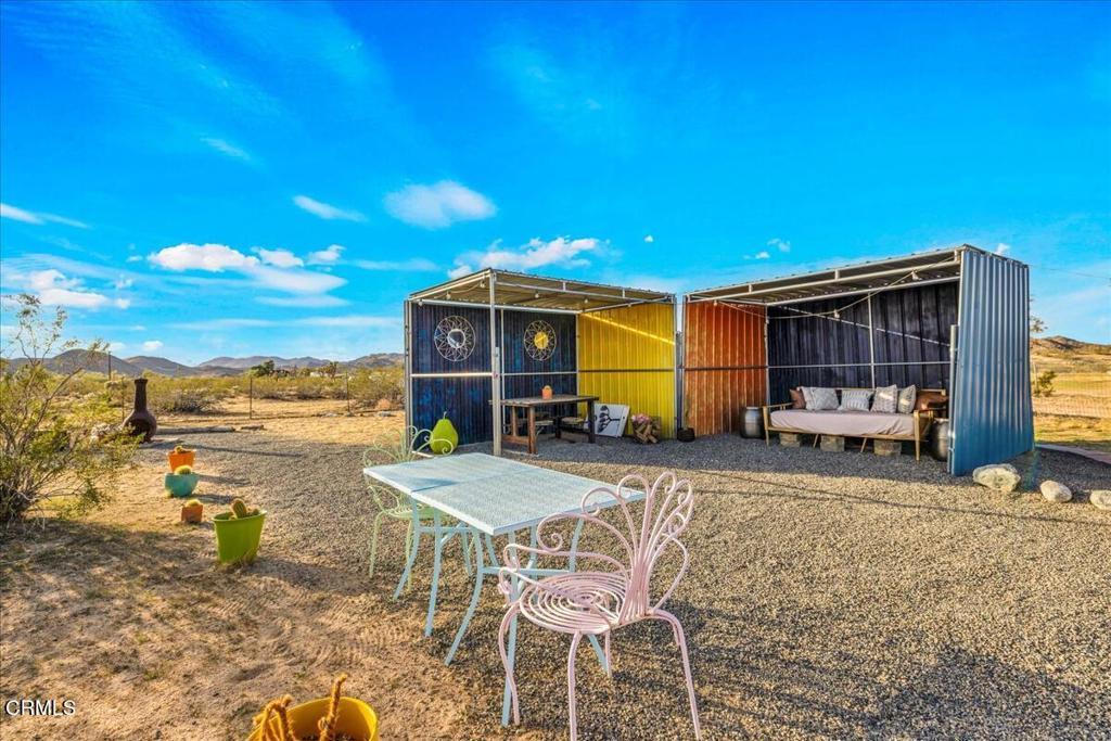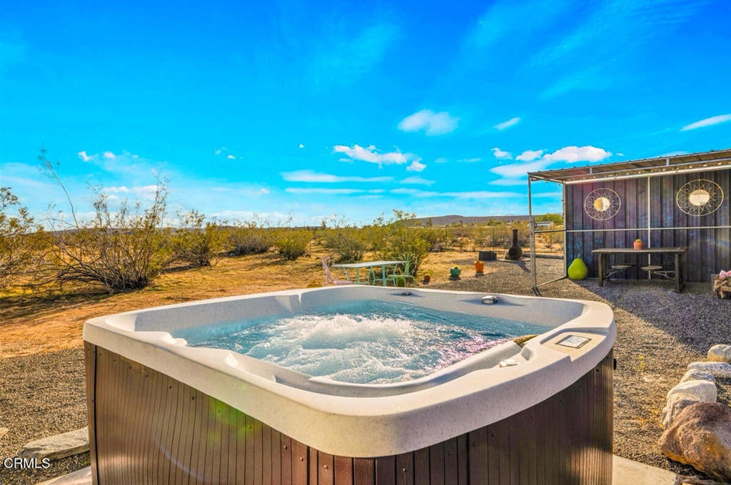 Tucked away on a peaceful 2.5-acre corner lot in Flamingo Heights, this beautifully remodeled midcentury studio cabin blends rustic charm with modern comfort. Fully furnished and thoughtfully designed, the open living space features a cozy lounge area, bedroom nook, updated kitchen, and dining corner--plus a full bathroom and convenient laundry closet with a stackable washer and dryer. Large windows fill the interior with natural light and frame stunning desert vistas. Step outside to enjoy shaded seating areas, a brand new spacious hot tub, and panoramic views that transform into an incredible blanket of stars at night. With stylish furnishings and finishes, and thoughtful upgrades throughout, this charming retreat was granted SFR status in 2023 and offers the perfect balance of tranquility and convenience-- private and secluded but just a short drive from Pioneertown, Joshua Tree, and local favorites like La Copine, Copper Room, and Tiny Pony.