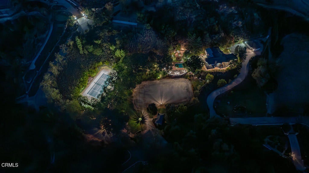 Nestled within the exclusive Bradbury Estates, a 24-hour guard-gated community renowned as one of California's most distinguished addresses, this exquisite home offers five bedrooms and six bathrooms designed for luxurious comfort and lifestyle. As you arrive, you're greeted by meticulously manicured landscaping and a serene ambiance that immediately sets the tone for the grandeur within. Custom-built by Mur-Sol Construction, this remarkable estate rests on nearly 5 acres and showcases exceptional craftsmanship, architectural precision, and thoughtful design.The main residence spans 6,579 square feet across two levels, offering an inviting yet sophisticated layout. The grand foyer welcomes you with soaring ceilings, a graceful curved staircase, and an abundance of natural light that fills the home with warmth. At the heart of the home lies a gourmet chef's kitchen, equipped with high-end appliances, a large center island, and an inviting breakfast area framed by six sets of French doors that open seamlessly to the backyard and outdoor BBQ area. Adjacent, the formal dining room provides the perfect setting for intimate dinners or lavish celebrations. The luxurious primary suite is a private sanctuary, featuring a cozy fireplace, spa-inspired bath with soaking tub, dual vanities, and a spacious walk-in closet. Expansive balconies and a covered veranda capture sweeping vistas of the surrounding hillsides and city lights, creating the perfect backdrop for morning coffee or evening relaxation. Designed for both everyday living and grand entertaining, this estate offers an array of resort-style amenities, including a stunning pool and spa with a cascading rock waterfall, multiple outdoor lounge and dining areas, and a North-South-facing professional tennis court. For equestrian enthusiasts, the property also includes a full-size riding pavilion, casita, and stables. Set amidst the tranquil beauty of Bradbury, this estate offers the ultimate in privacy, prestige, and natural splendor. Renowned for its expansive estates, scenic landscapes, and exclusivity, Bradbury embodies refined luxury and timeless elegance, harmoniously blending world-class amenities with breathtaking natural surroundings and panoramic views.