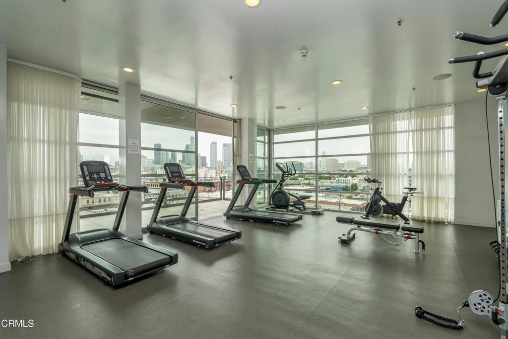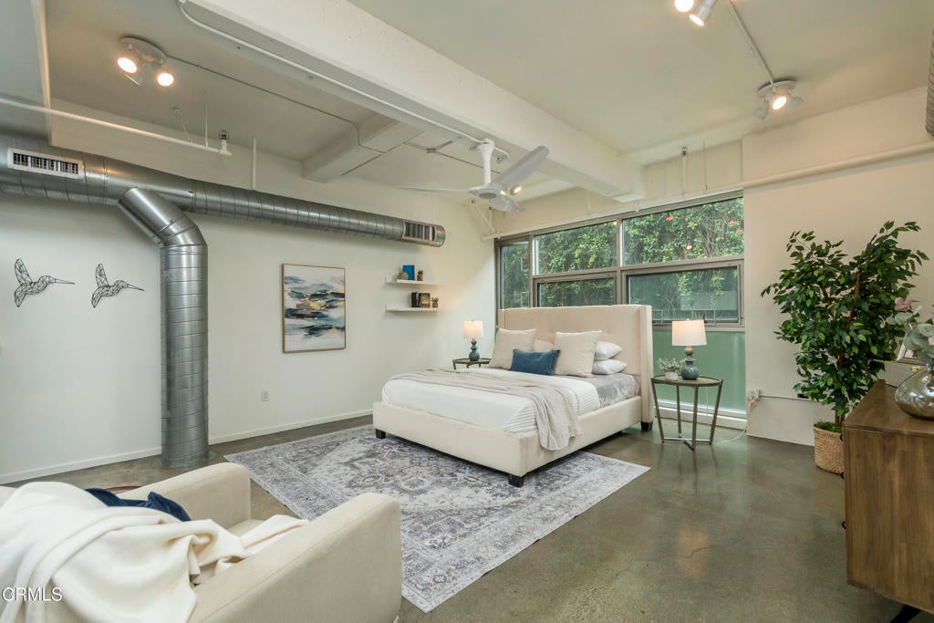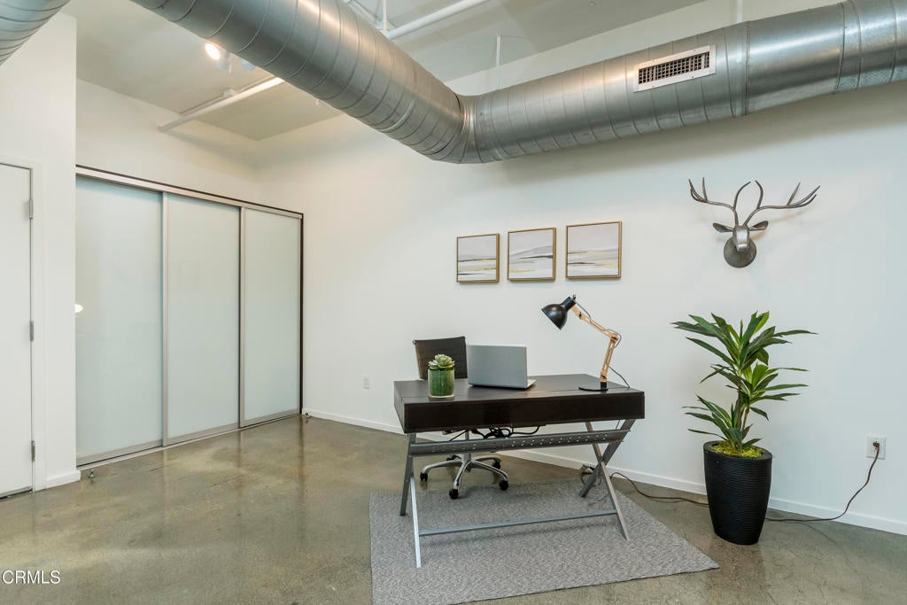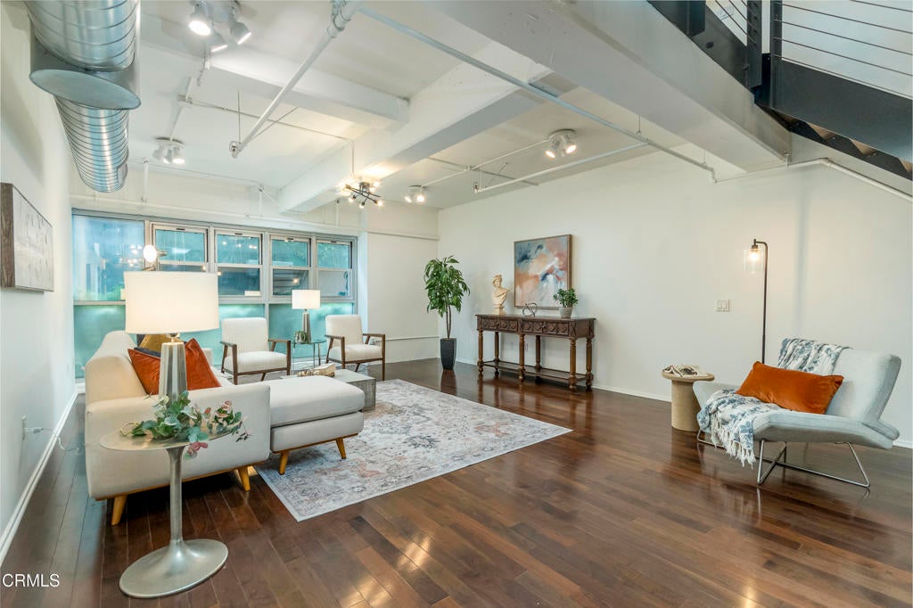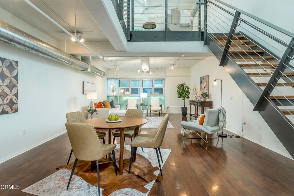 Experience inspired loft living in the heart of the Arts District. This striking two-story residence at the iconic Barker Block Lofts offers 2,040 square feet of historic character and contemporary design. On the main level, rich espresso hardwood floors and dramatic double-height ceilings create an inviting, open atmosphere. The sleek kitchen features black granite countertops, stainless steel appliances, and a spacious dining area that flows seamlessly into the expansive living space. Upstairs, natural light floods through oversized industrial-style windows, highlighting polished concrete floors and an open hallway that leads to a flexible office or second bedroom space with a spacious dressing area adjacent to the primary bathroom. This versatile layout offers endless possibilities, whether you envision a gallery inspired retreat, creative studio, or entertainer's dream home. Residents of Barker Block enjoy resort-style amenities, including a newly renovated rooftop deck with pool, spa, cabanas, and 360 skyline views, as well as a chic outdoor lounge with fireplace, BBQ area, 24-hour security/concierge, and two assigned parking spaces (one with EV charging). Perfectly located steps from Urth Caffe and surrounded by LA's best dining, cafes, galleries, and boutiques, this home puts you at the center of the city's most vibrant neighborhood. With this significant price adjustment and a motivated seller ready to make a deal, now is the perfect opportunity to own one of the Arts District's most unique and stylish lofts.