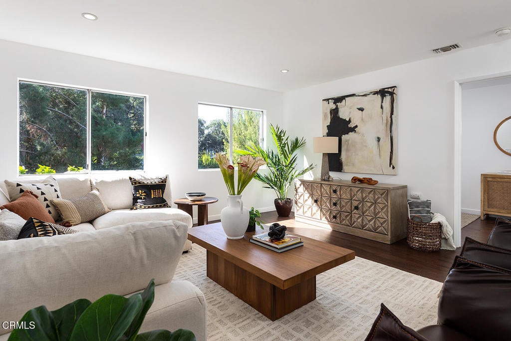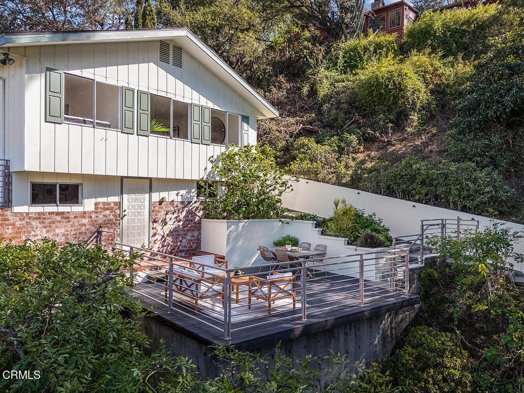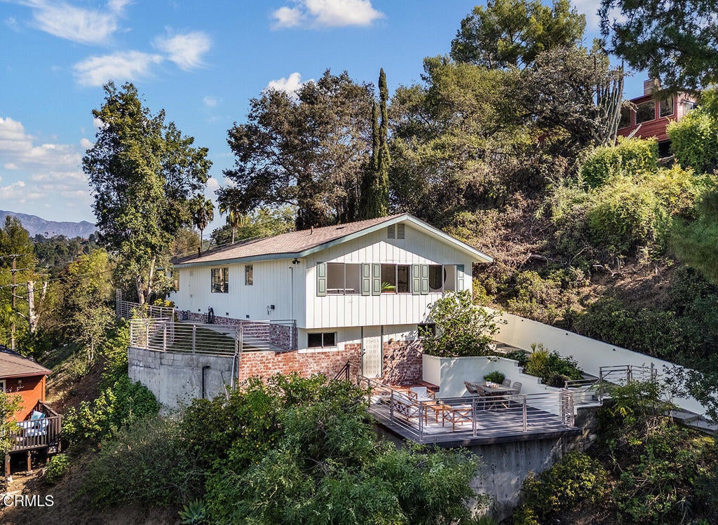 Just blocks from Pasadena in vibrant Eagle Rock, serenity and privacy define this hilltop view home. This bight and airy residence has a separate ADU perfect for an income opportunity. The newly remodeled ADU sits atop the street level garages. Up the hill, the bright and airy 3 bedroom, 2 bath house boasts views from most every room. The updated open-concept kitchen opens to the great room. A large living room, 3 bedrooms and two updated baths complete the home. Entertain friends and family, or enjoy a peaceful coffee on the spacious front deck. A storage room currently shown as an office (not counted in the square footage) sits right off the deck. The back and side yards are fully fenced. Brand new roofs on both the main house and ADU were installed in March of 2025. The ADU was just completed. Main house measures 1409 sq ft. The ADU measures 391 sq ft. This gem of a house is move-in ready. With its convenient location in Eagle Rock, you're just minutes from coffee shops, dining, parks, and quick freeway access to the 134, 110 and 2 -- making commuting or city escapes a breeze. Although, once you are home, you won't want to leave.