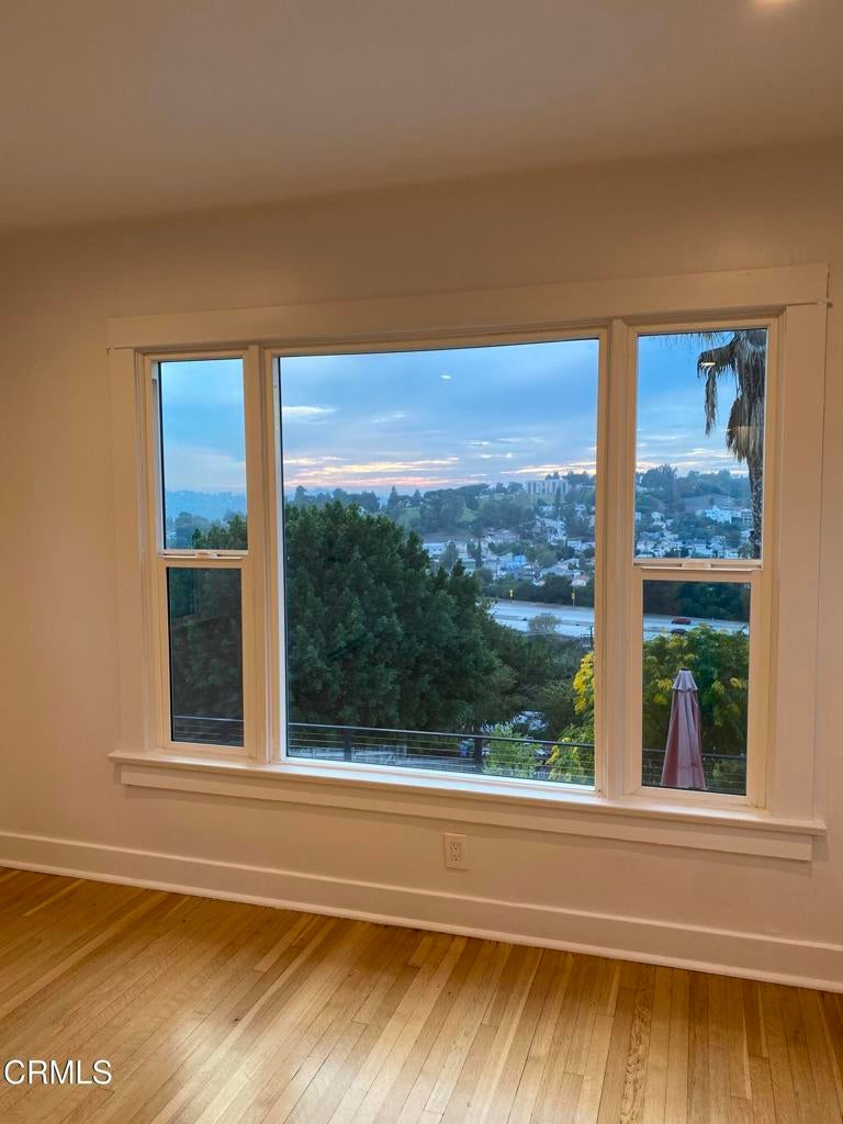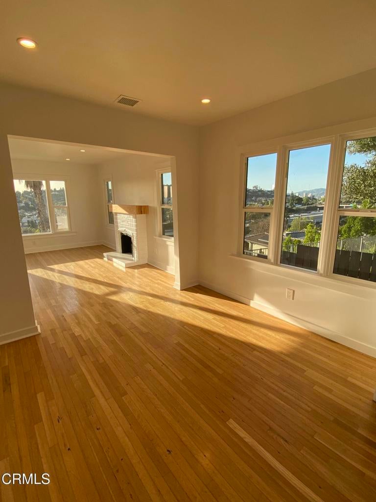 Welcome to your hillside retreat on the border of Glassell Park and Eagle Rock! This charming three-bedroom, one-bath home offers 900 sq. ft. of living space with stunning sunset views! Enjoy central air conditioning, beautiful hardwood floors, a decorative fireplace, and a beautiful kitchen with newer stainless steel appliances. Relax in the front yard or on the front porch, with a whimsical backyard for added tranquility. Benefit from a 2-car detached garage and shared laundry. Over 60 steps lead to your peaceful haven with amazing views! Close to coffee shops, cafes and restaurants.