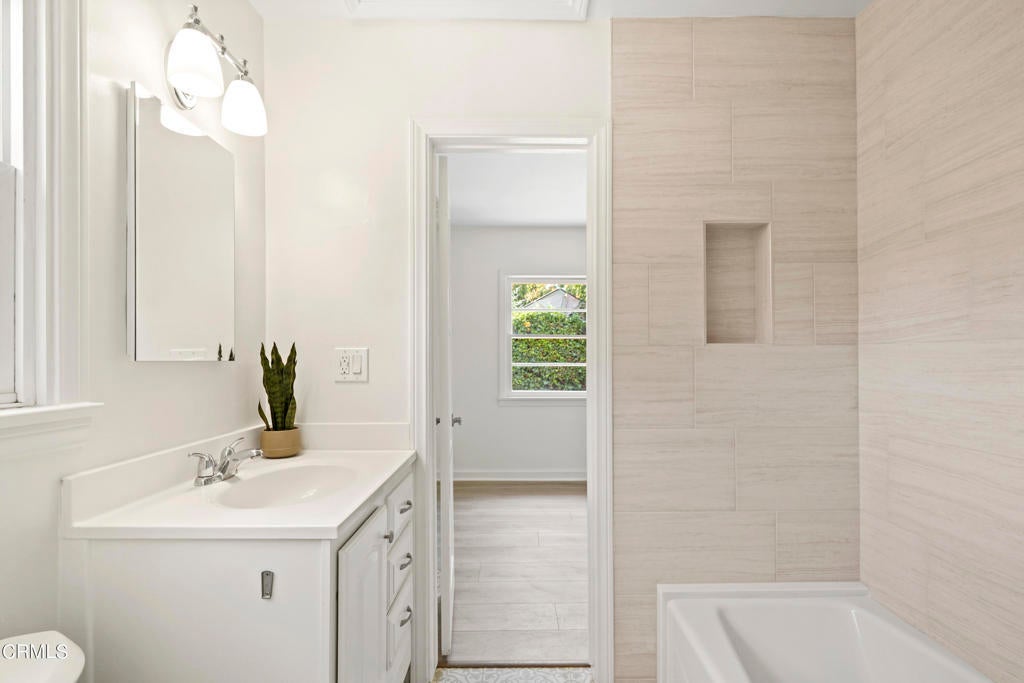This lovely, light filled South facing traditional home in North Pasadena is located on a large deep lot. This is a duplex and this property is located at the back of the lot. The home features 1 bedroom, 1 bath, a newly remodeled kitchen with quartz countertops, laundry room, new vinyl wood like floors, 2 wall air conditioning units and 2 ceiling fans. The home has been freshly painted inside, there is a one car parking spot and storage shed for extra belongings. There is a private gated yard and patio which is an ideal spot to relax or BBQ with family and friends. The home is ready for immediate occupancy. The front house is currently rented and uses a portion of the driveway to park their vehicle. Don't miss put on this darling rental in an ideal and convenient location in Pasadena.