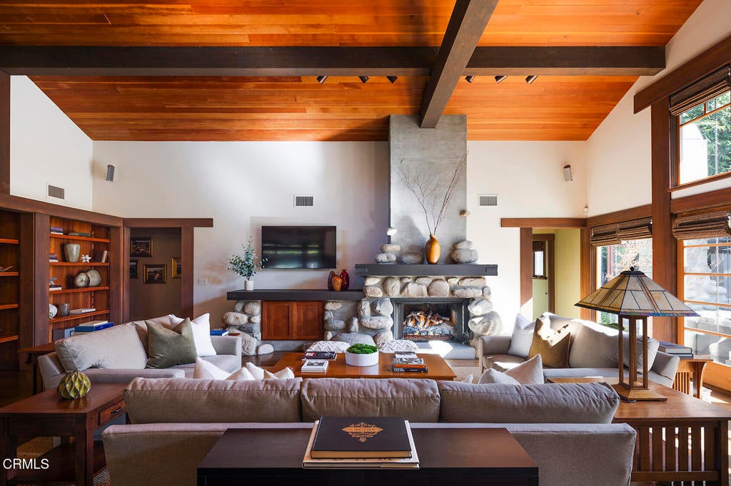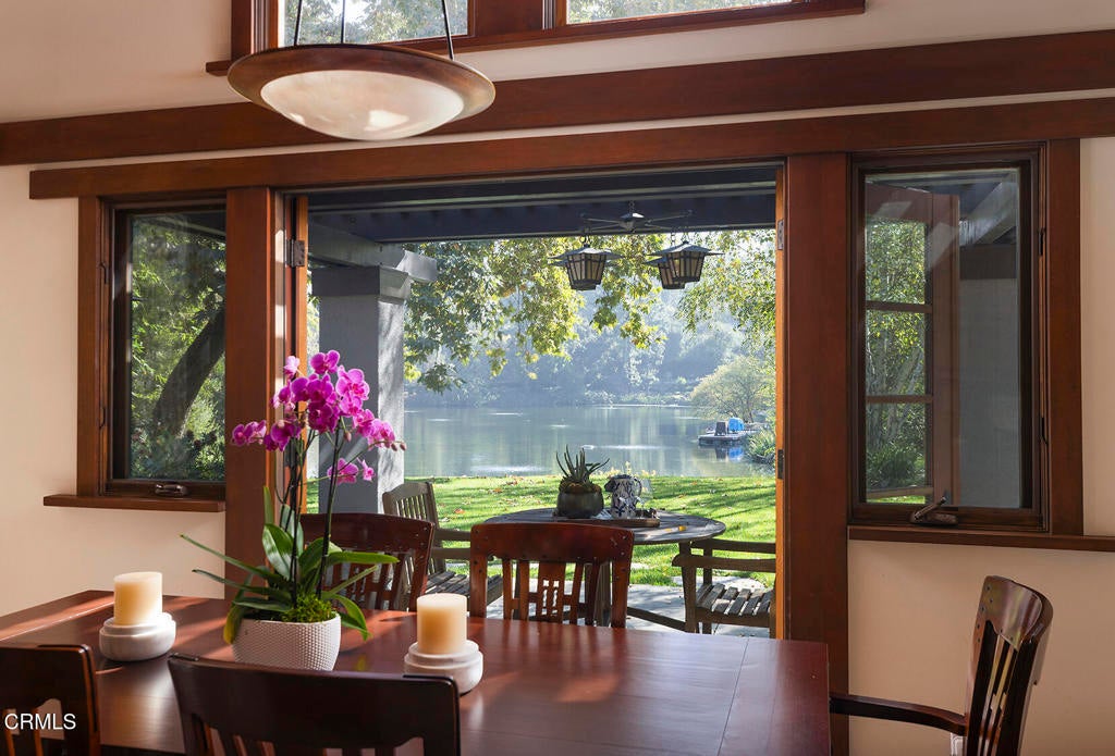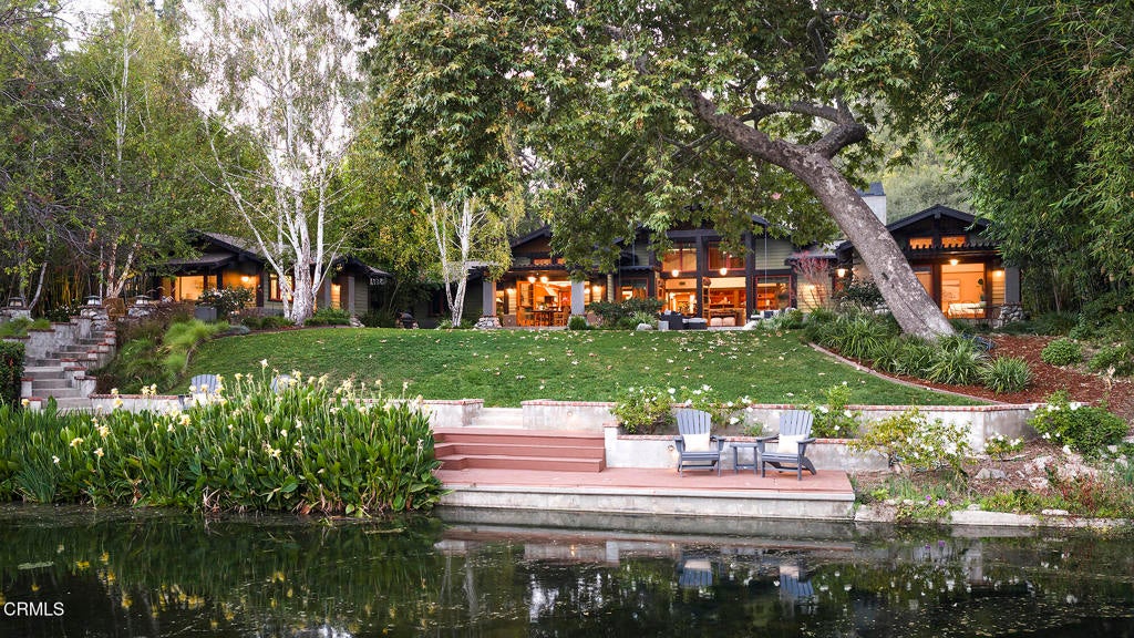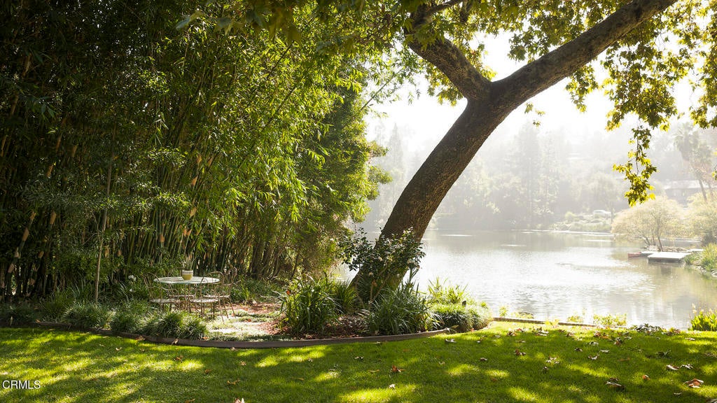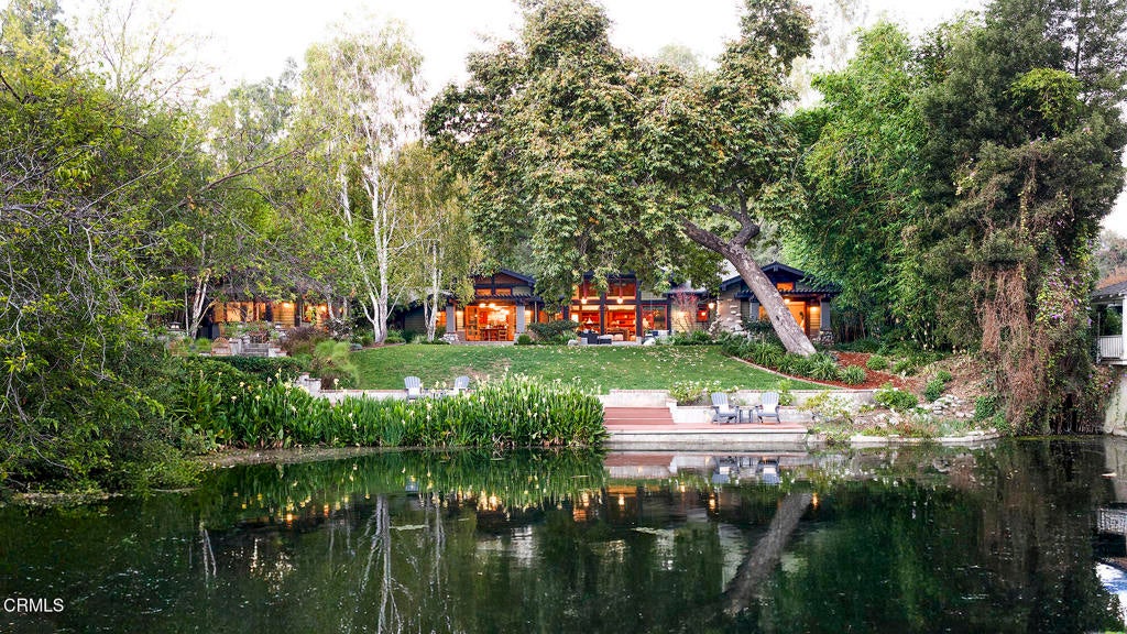 Nestled along the tranquil shores of Johnston Lake in Pasadena's prestigious south San Rafael neighborhood, this exceptional Craftsman estate, designed by noted architect Doug Ewing, is a rare architectural statement set amid nature's splendor. The home enjoys a magical over half-acre setting framed by towering oaks & graceful sycamores. Its secluded appeal is enhanced by a private dock and separate guest house. Designed to harmonize with its environment, the residence embraces the lake and landscape from every angle. The dramatic great room, crowned by 18 ft. wood beamed ceilings & anchored by a massive boulder fireplace. Woodwork, crafted by the artsian who restored the iconic Gamble House, reflects Pasadena's most storied traditons. Everywhere there is detail, intention and artistry. Opening through expansive doors to a full patio with sweeping and glittering lake views, the space is flooded with natural light. Designed for entertaining, the open floorplan flows into the eating areas offering opportunities for hosting large parties, private affairs or a wonderful family lifestyle. The kitchen is masterfully designed with a wonderful layout for the serious cook. The informal dining area opens onto a covered patio with a full lake view. The formal dining room exudes elegance.The primary suite is set apart for privacy, featuring a spa-like bath with jetted soaking tub, dual sinks & shower. The retreat area has a romantic fireplace and French doors opening to a peaceful patio that captures the serenity of the beautiful setting. On a separate wing, there are three additonal ensuite bedroom suites. Coupled with a separate den, featuring a fireplace and access to a front terrace, the home provides inviting spaces for work and relaxation. Across a beautiful lawn is a separate guest house with its own kitchen and bath. Tucked away under a tree canopy with a backdrop of the ever changing scenes on the lake, tt offers a private santuary and a peaceful retreat for guests. A meandering walkway leads over a little bridge to the grassy area know as ' The Meadow' and the HOA pool. This home is a legacy. It stands as a testament to Pasadena's architectural heritage, the artistry of Doug Ewing and the vision of a family who dared to dream of creating this special place on the shores of a hidden lake.