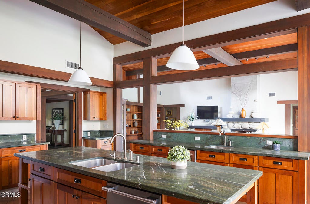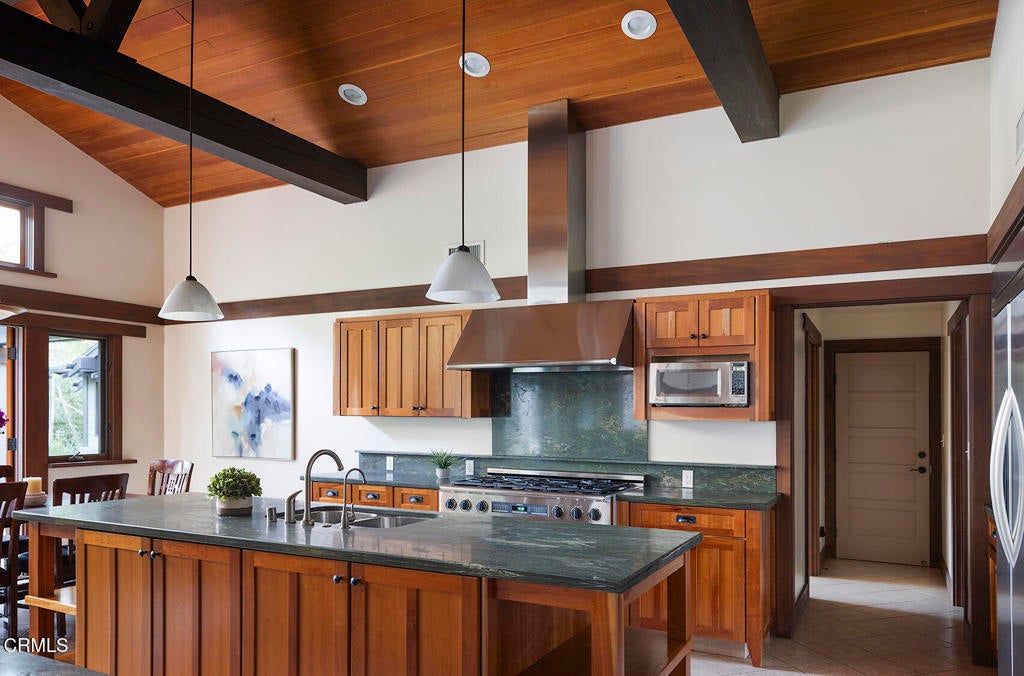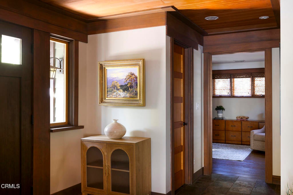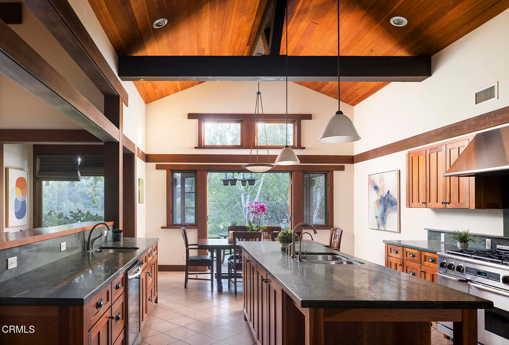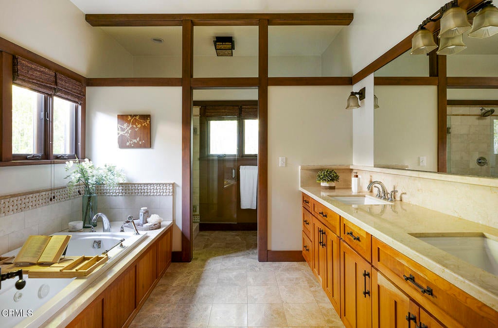 Nestled along the tranquil shores of Johnston Lake in Pasadena's prestigious south San Rafael neighborhood, this exceptional Craftsman estate, designed by noted architect Doug Ewing, is a rare architectural statement set amid nature's splendor. The home enjoys a magical over half-acre setting framed by towering oaks & graceful sycamores. Its secluded appeal is enhanced by a private dock and separate guest house. Designed to harmonize with its environment, the residence embraces the lake and landscape from every angle. The dramatic great room, crowned by 18 ft. wood beamed ceilings & anchored by a massive boulder fireplace. Woodwork, crafted by the artsian who restored the iconic Gamble House, reflects Pasadena's most storied traditons. Everywhere there is detail, intention and artistry. Opening through expansive doors to a full patio with sweeping and glittering lake views, the space is flooded with natural light. Designed for entertaining, the open floorplan flows into the eating areas offering opportunities for hosting large parties, private affairs or a wonderful family lifestyle. The kitchen is masterfully designed with a wonderful layout for the serious cook. The informal dining area opens onto a covered patio with a full lake view. The formal dining room exudes elegance.The primary suite is set apart for privacy, featuring a spa-like bath with jetted soaking tub, dual sinks & shower. The retreat area has a romantic fireplace and French doors opening to a peaceful patio that captures the serenity of the beautiful setting. On a separate wing, there are three additonal ensuite bedroom suites. Coupled with a separate den, featuring a fireplace and access to a front terrace, the home provides inviting spaces for work and relaxation. Across a beautiful lawn is a separate guest house with its own kitchen and bath. Tucked away under a tree canopy with a backdrop of the ever changing scenes on the lake, tt offers a private santuary and a peaceful retreat for guests. A meandering walkway leads over a little bridge to the grassy area know as ' The Meadow' and the HOA pool. This home is a legacy. It stands as a testament to Pasadena's architectural heritage, the artistry of Doug Ewing and the vision of a family who dared to dream of creating this special place on the shores of a hidden lake.