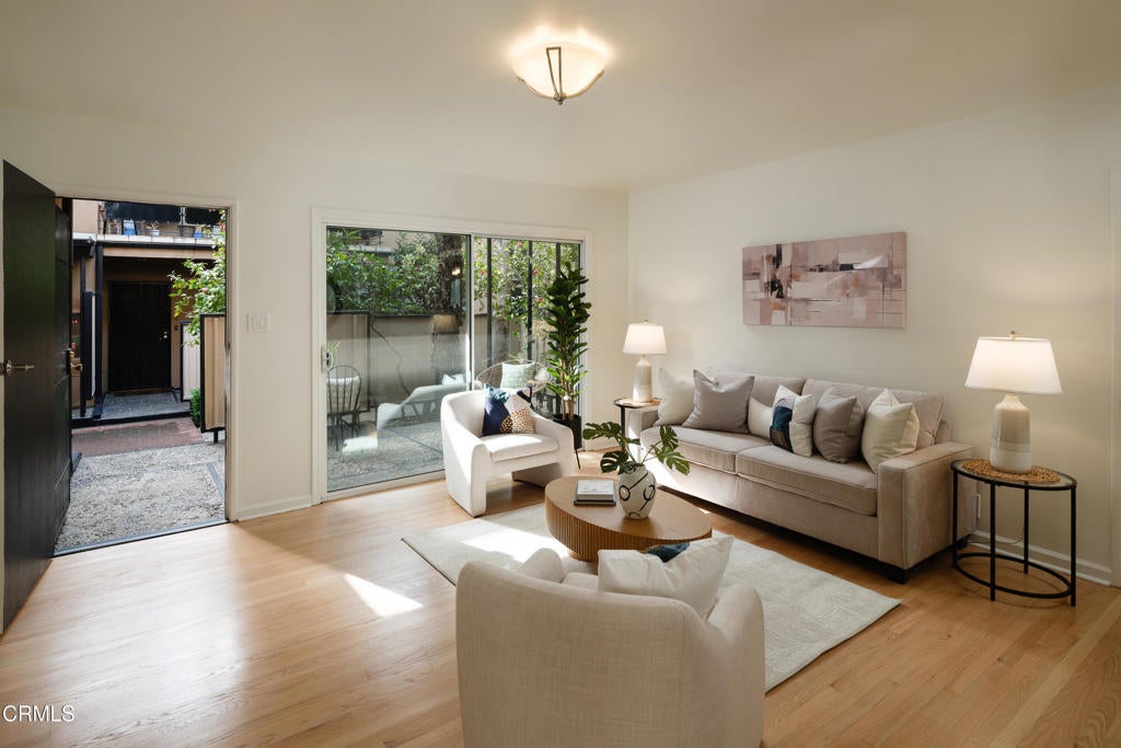 Welcome to a bright and thoughtfully updated condo set in one of South Pasadena's most convenient and well-loved neighborhoods. You begin in a quiet, landscaped courtyard that adds a sense of privacy and calm from the moment you arrive. A private, semi-enclosed patio wrapped in greenery creates a warm first impression to the unit, leading into a living space with hardwood floors, fresh white walls, and a smooth indoor-outdoor flow through a large sliding glass door. The dining area connects naturally to a well-appointed kitchen featuring white cabinetry, granite counters, classic parquet flooring, and a full suite of stainless-steel appliances including a GE French-door refrigerator, LG gas range with modern hood, and Whirlpool dishwasher. Both bedrooms offer hardwood floors and long horizontal windows that bring in soft natural light, while the primary suite includes a generous closet with built-ins and a stylish 3/4 bath with pebble-stone shower flooring and modern tile finishes. The hallway bathroom adds a full tub/shower with mosaic accents and an updated vanity. Storage stands out in this condo, highlighted by multiple closets including a deep walk-in linen closet, and the community provides on-site laundry for added ease. Located just blocks from neighborhood cafes, markets, shopping options, parks, and easy transportation access, this home delivers the ideal blend of comfort, convenience, and everyday walkability--ready to welcome you into your next chapter.