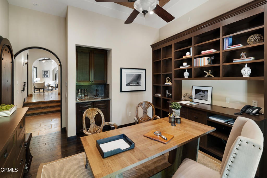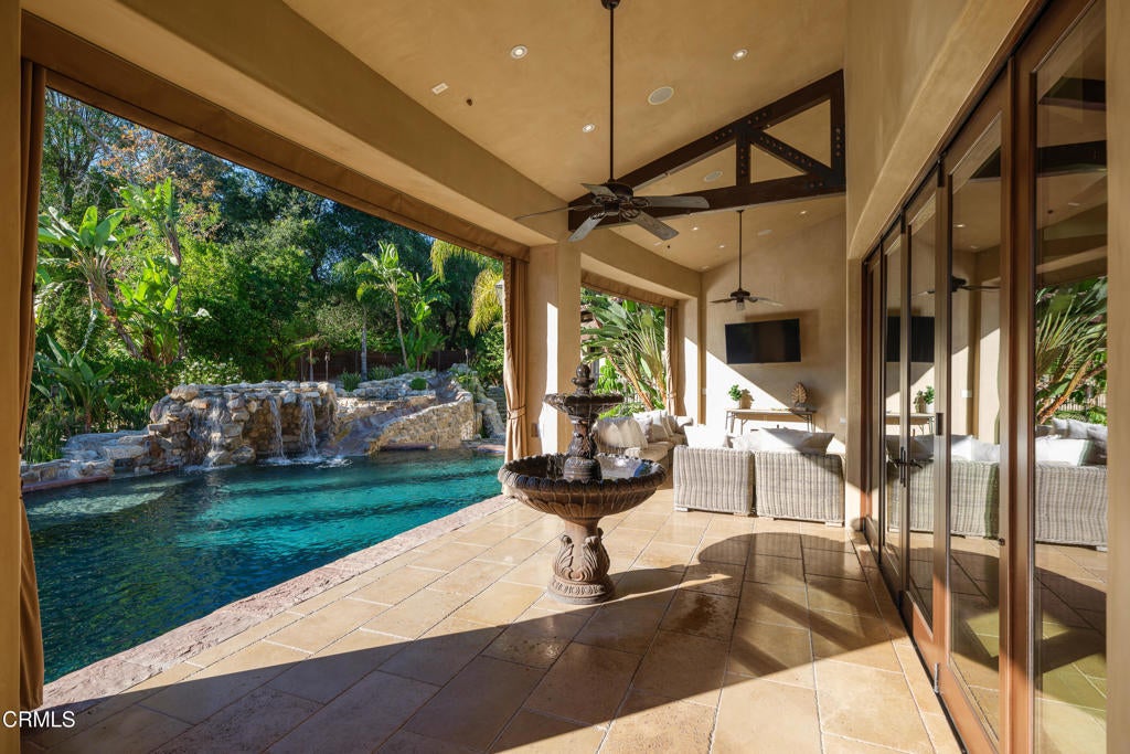 Masterfully designed and impeccably crafted, this stunning 9,000+ SF Mediterranean villa offers luxurious resort-style living with many unique and creative features that invite you to linger and relish the experience. Enjoy warm, comfortable daily living while also having unlimited opportunities to entertain in your own personal resort. From the moment you enter, an impressive radius-designed foyer frames a first glimpse of the sweeping loggia and spectacular resort-style grounds beyond. The main level unfolds with an effortless sense of flow, each room connected with thoughtful intention and offering something new to discover. Seamless transitions between the kitchen, formal spaces, and outdoor areas make entertaining feel both natural and inspired. The main-level bedroom wing hosts four bedrooms, including the impressive primary suite, along with a handsome office with a library and study. A sweeping stairway leads to the show-stopping lower level, where you are transported to another realm and imagination truly comes to life. Beyond arched doorways, an immersive world of gathering, play, escape, and entertainment reveals itself, inviting experiences that surprise even the most seasoned host. It feels like a movie set, yet functions as the ultimate personal retreat for all ages. A few of this home's numerous features include a billiards room, gymnasium, arcade, 1,100+ SF workshop/studio, and the most incredible bar & tasting room you will ever find in a residential home. Outside, the backyard oasis continues the story of wonder and retreat. Accessible from nearly every major room, this outdoor haven is designed for connection, relaxation, and fun. Romantically lit cabanas, multiple outdoor kitchens, and a shimmering pool anchor the space, while lush greenery, an elevated spa, and numerous gathering areas evoke the essence of a private resort. Situated at the end of the cul-de-sac on one of La Canada's most cherished streets in the charming PCY neighborhood, this resort-style estate blends luxury, comfort, entertainment, and lifestyle into one extraordinary offering. All of this and more....in one of the California's most highly rated public school districts. This is not just a home, it's a destination. See more at 5065Indianola.com.