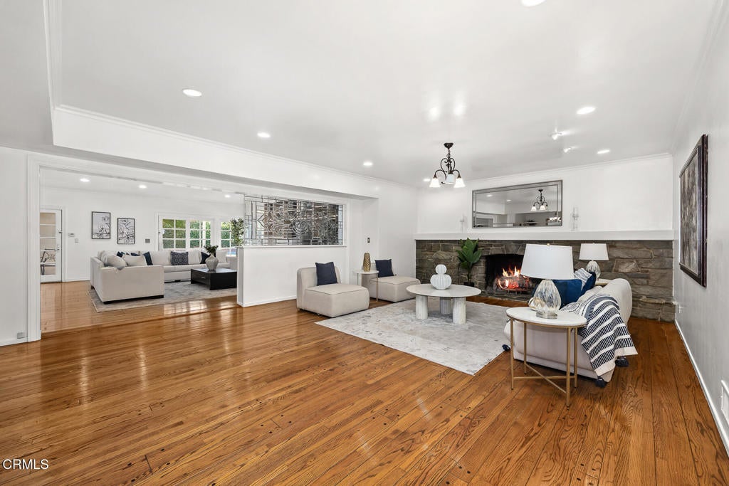 Welcome to 625 Chester Avenue, a rare one-level home located in a very prestigious neighborhood of San Marino, just moments from the iconic Huntington Library and Gardens. Set on a flat lot over 18,000 square feet, this expansive property offers the perfect blend of classic charm, lots of space, and endless potential. This gracious 5-bedroom, 3-bathroom home features open and generous living quarters, including a spacious primary suite, one bedroom on other side of the house with 3/4 bath, could be used as separate guest quarters,ideal for flexible use. A formal entry leads into a traditional living room with an impressive fireplace, recessed lighting, and beautiful hardwood floors. The heart of the home is the spacious family room, complete with soaring ceilings, skylights, a custom entertainment center, and French doors that open to a brick patio--ideal for indoor-outdoor living. The kitchen features granite countertops, Viking appliances, and a sunlit breakfast area with serene views of the manicured front garden. The centerpiece of the backyard has a sparkling pool, perfect for entertaining, relaxing or enjoying warm evenings. As a bonus, you will enjoy the view of the San Gabriel mountains. This home is a cosmetic fixer, offering incredible potential for those looking to customize, renovate, or invest in a solidly built property with great bones.