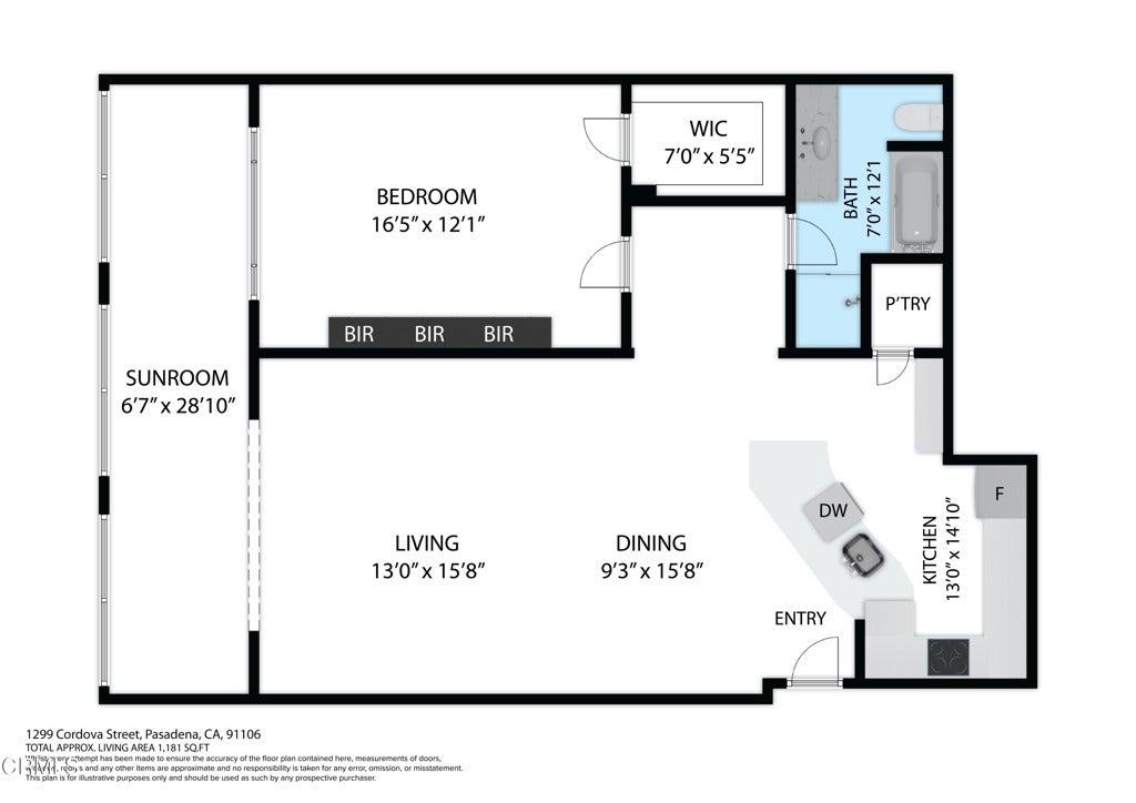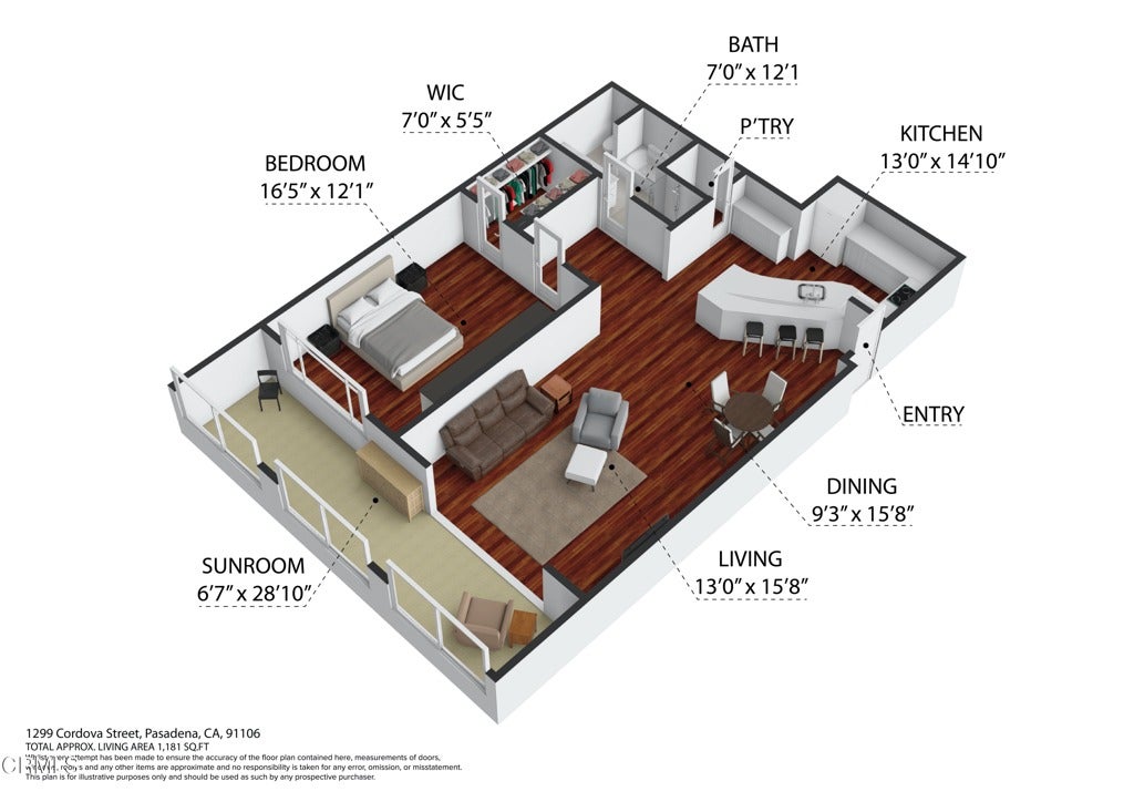 Located in the Caltech corridor and in close proximity to Pasadena's Lake Avenue Shopping and Business District, this charming third-floor 1-bedroom, 1-bathroom unit offers 1,181 square feet of comfortable living space. As you step inside, you'll be greeted by a very spacious open-concept floor plan that provides a seamless flow from the kitchen to the living room. The spacious living room is perfect for relaxing or entertaining and features an enclosed patio area, ideal for a home office, workout room, or children's play area.The remodeled kitchen boasts wood cabinets, granite countertops, and a marble subway tile backsplash. It is equipped with modern appliances, including a refrigerator, electric oven and cooktop, and dishwasher, offering convenience and functionality. The bedroom is generously sized and includes a full-length built-in wardrobe and a separate walk-in closet for all your storage needs. The bathroom features a separate shower and tub, along with an updated vanity that provides ample storage.This low-rise building offers fantastic amenities, including an elevator for easy access, a secure garage with one assigned parking space, additional assigned storage, and laundry facilities within the building. Additional upgrades to the home include an updated electrical panel, hardwood floors, and crown molding. Don't miss the chance to make this delightful Pasadena condo your new home!
