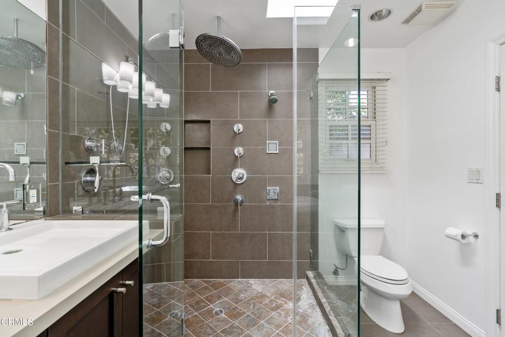 Lovely 3 bed + 2.5 bath home located on a tree-lined street, within the highly desirable Kester Avenue Elementary School district. Surrounded by lush landscaping, tranquility awaits you! This home features over 2,000sf with a spacious living room, formal dining room, real hardwood floors, recessed lighting, alarm system and central A/C. Galley kitchen has stainless steel appliances, Caesarstone counters and a cozy breakfast nook. There are 3 large bedrooms including a primary suite with a walk-in closet and spa-inspired bathroom, complete with a jetted tub + oversized shower with a multi-head rainfall shower system. Behind the detached 2-car garage is a large bonus room (12x18) that can be used as an office, playroom or studio. Garage has epoxy flooring and a wood workbench. Secluded, grassy yard with gazebo is perfect for entertaining! Additional features include a newer roof and updated plumbing. Great location with easy access to Ventura Blvd, Sherman Oaks Galleria, Westfield Fashion Square and the 405!
