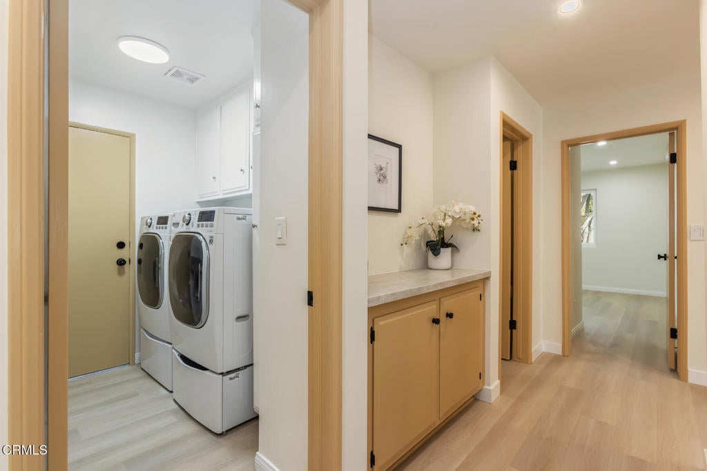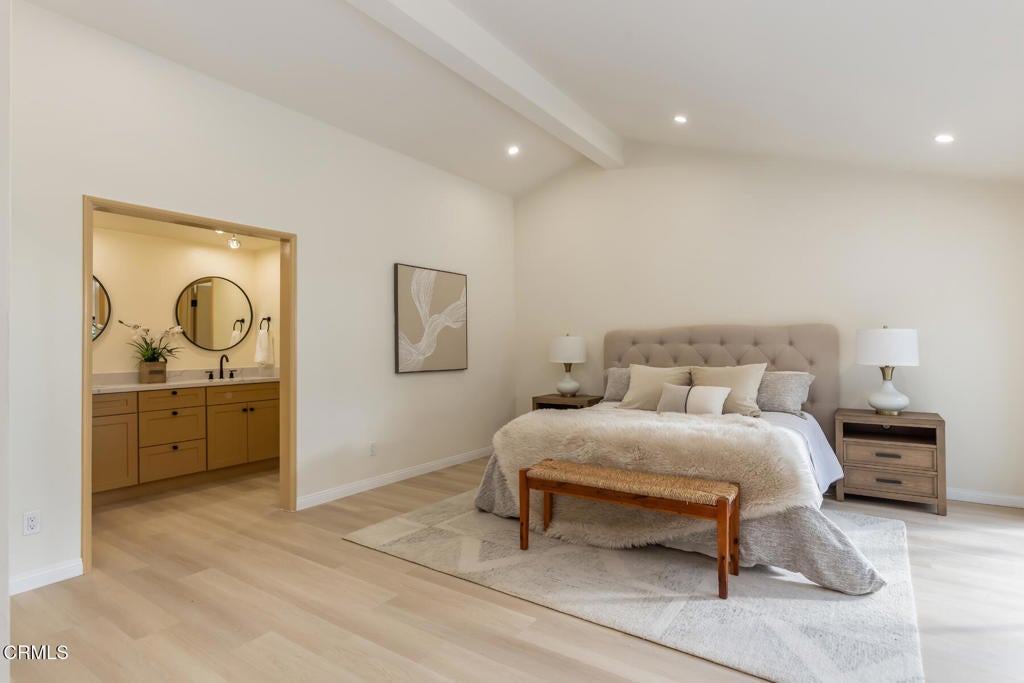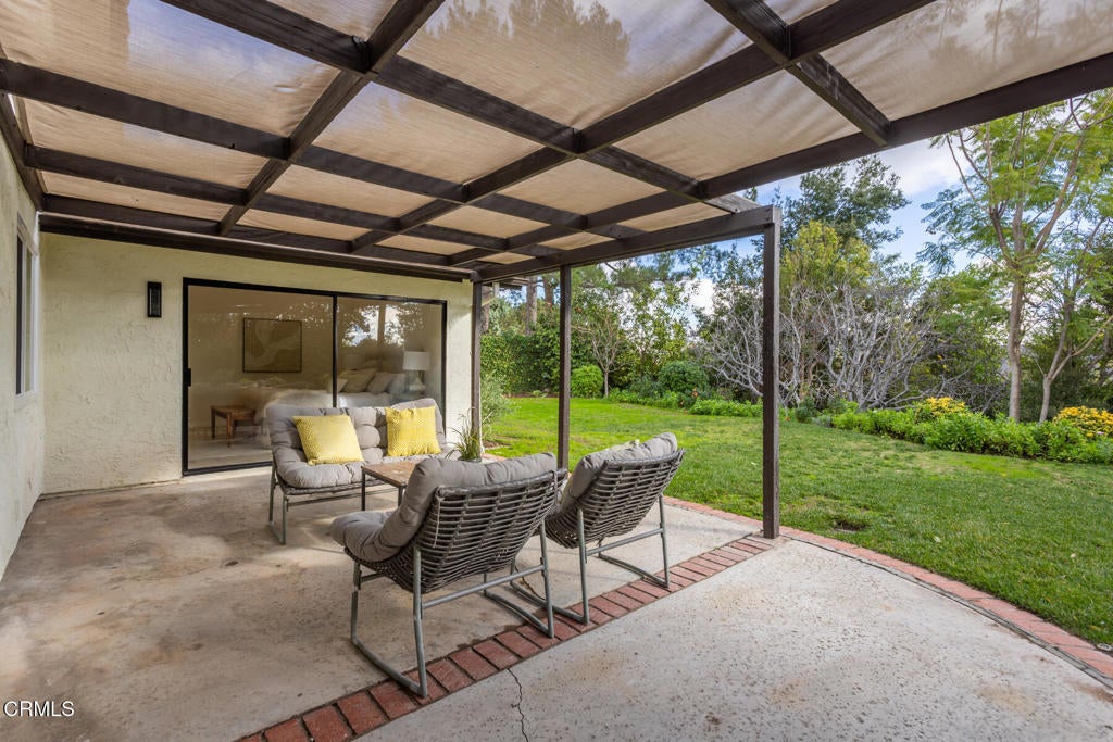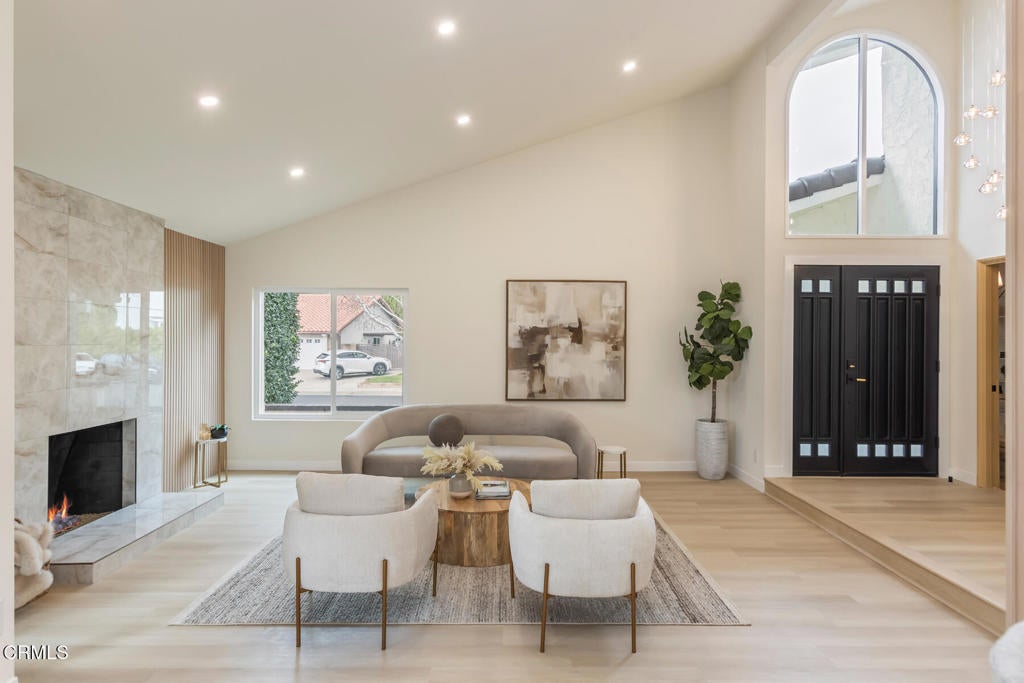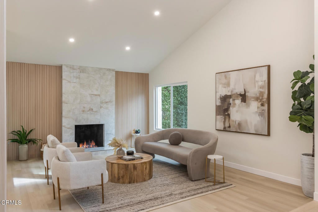 This beautifully reimagined, single-story home, located in one of Porter Ranch's most desirable neighborhoods, has been thoughtfully updated, blending modern luxury with timeless design. Step inside and into the inviting entry foyer, highlighted by high ceilings and natural light. Throughout the home, brand-new water-resistant flooring and fresh interior and exterior paint create a clean, contemporary feel.The main living area is anchored by a renovated fireplace with new tile and paneling, offering a refined focal point for gatherings. At the heart of the home, the fully renovated kitchen showcases brand-new cabinetry, Taj Mahal quartz countertops, a waterfall island accented by a mid-century modern chandelier, and a complete suite of new GE appliances--including refrigerator, range, dishwasher, and hood. The primary suite features high ceilings, a walk-in closet as well as a secondary closet, access to the backyard, and an en-suite bath. Both bathrooms have been completely renovated to include new vanities, fixtures, lighting, shower tiles/doors and more. A bonus room/office provides the ideal work from home space with bookshelves and new lighting. New windows throughout the home enhance natural light and energy efficiency, while all doors have been repainted and upgraded with modern hardware. A brand-new front door and garage door further elevate the home's curb appeal. Additional highlights include a well-appointed laundry room with LG washer and dryer, updated sink, and fixtures, as well as a fully drywalled and painted garage. Outside, enjoy the peaceful setting with new landscaping and irrigation system, as well as a covered patio. Minutes away from top-rated schools, local shopping and dining, parks, golf courses, and more.
