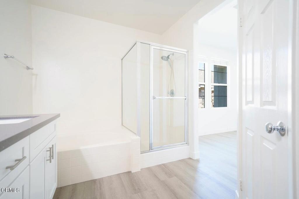 This modern style upgraded 3-bedroom, 2.5-bathroom home, built in 2004, offers 1,320 sq ft of living space. The open-concept floor plan that seamlessly connects the living, dining, and kitchen areas, and wood laminate flooring. The modern style kitchen is equipped with a sleek Quartz countertop, newer stainless steel appliances, and a walk-in pantry. The primary suite is complete with an en-suite bathroom featuring dual sinks, a soaking tub, and a large walk-in closet. This home is just a moment away from Paseos, Heritage Park, Shopping Centers, and Restaurants.Desirable Creekside neighborhood of Valencia, NO MELLO-ROOS, and a low HOA.Don't miss the opportunity to make your new home.