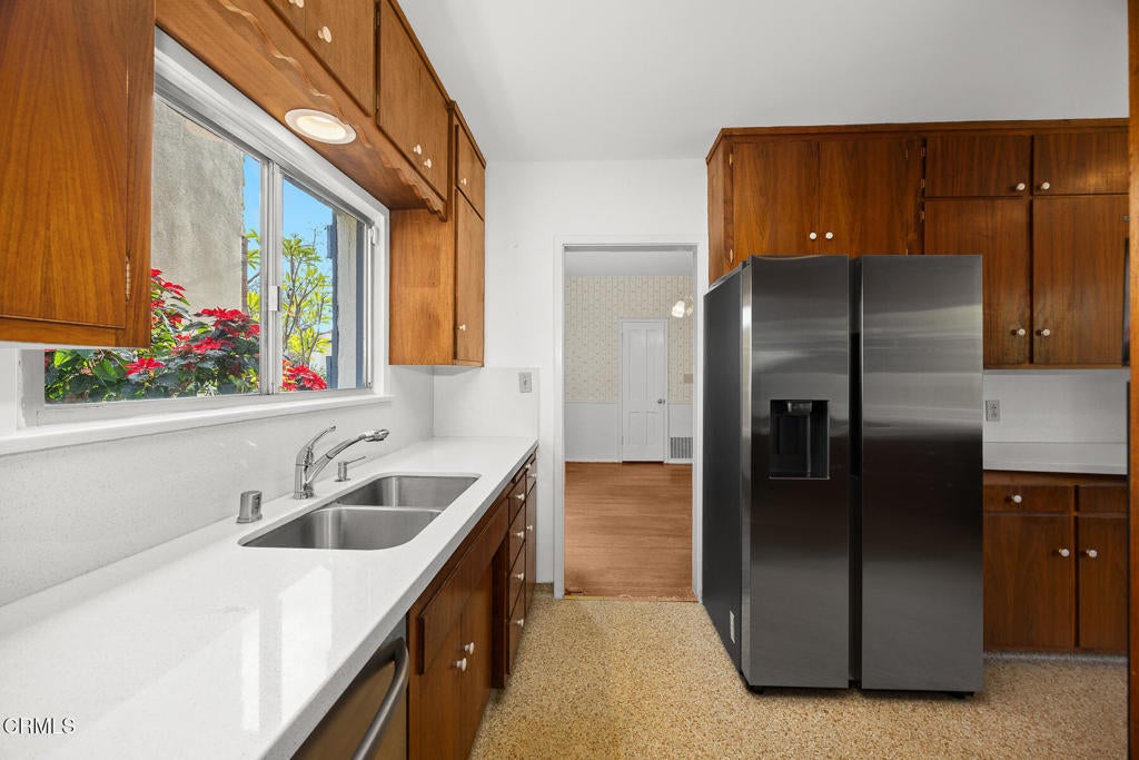 Nestled in the heart of San Marino, this enchanting early-1920s Spanish residence sits gracefully on a prime corner lot, blending timeless character with abundant potential. A welcoming pathway leads to the charming entry, setting the tone for the classic architecture found throughout. Inside, the expansive living room impresses with a dramatic arched picture window, high, beamed ceiling, rich hardwood floors, and a cozy fireplace. Dual French doors open seamlessly to the back patio, creating an effortless indoor-outdoor flow. The formal dining room, framed by an elegant arched entry, also enjoys its own French door access to the backyard--ideal for entertaining. The centrally located kitchen overlooks the lush rear grounds and is conveniently positioned near the home's main living spaces. The main level is complete with a dedicated laundry room, a powder bath with room to expand into a full bath, and a cozy downstairs bedroom--perfect for guests or a home office. A graceful curved staircase leads to the second level, where two generously sized bedrooms await, each offering unique features such as dual closets and private balconies. A large full bathroom serves the upper floor. Outdoors, the lushly landscaped and fully gated backyard provides a private retreat and leads to a detached two-car garage. With its classic Spanish charm, thoughtful layout, and loads of potential, this special home is ideally located just moments from Mission Street shops, restaurants, Award Winning Blue Ribbon Schools and all that San Marino living has to offer.
