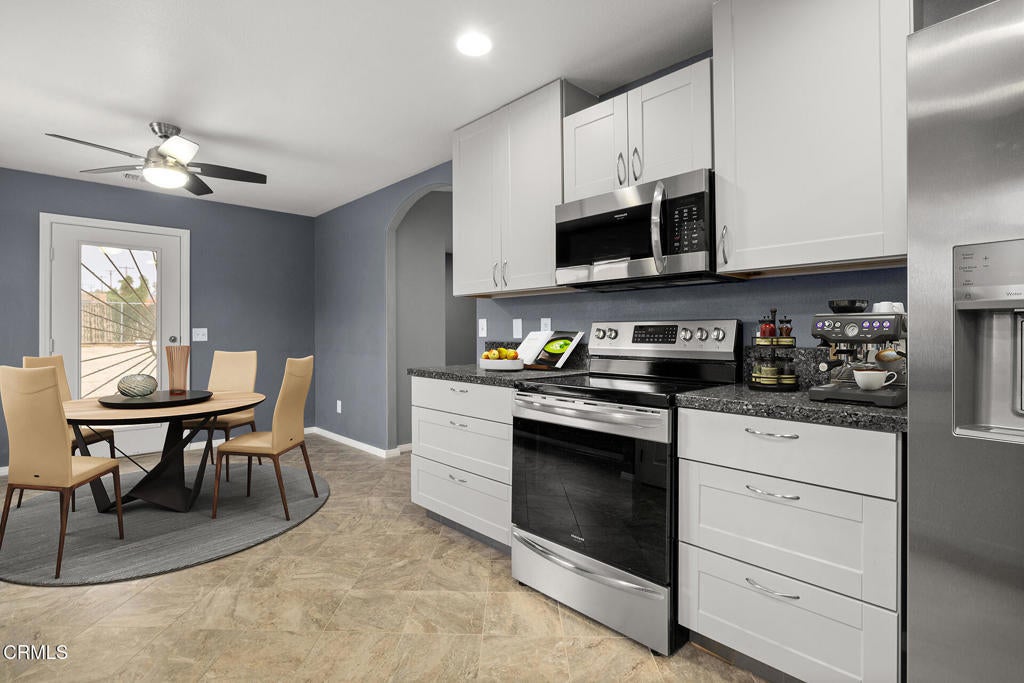 Ceiling Fan(s), Eat-in Kitchen, Granite Counters, Stone Counters, Recessed Lighting, Tile Counters, Unfurnished, Primary Suite, Walk-In Closet(s)