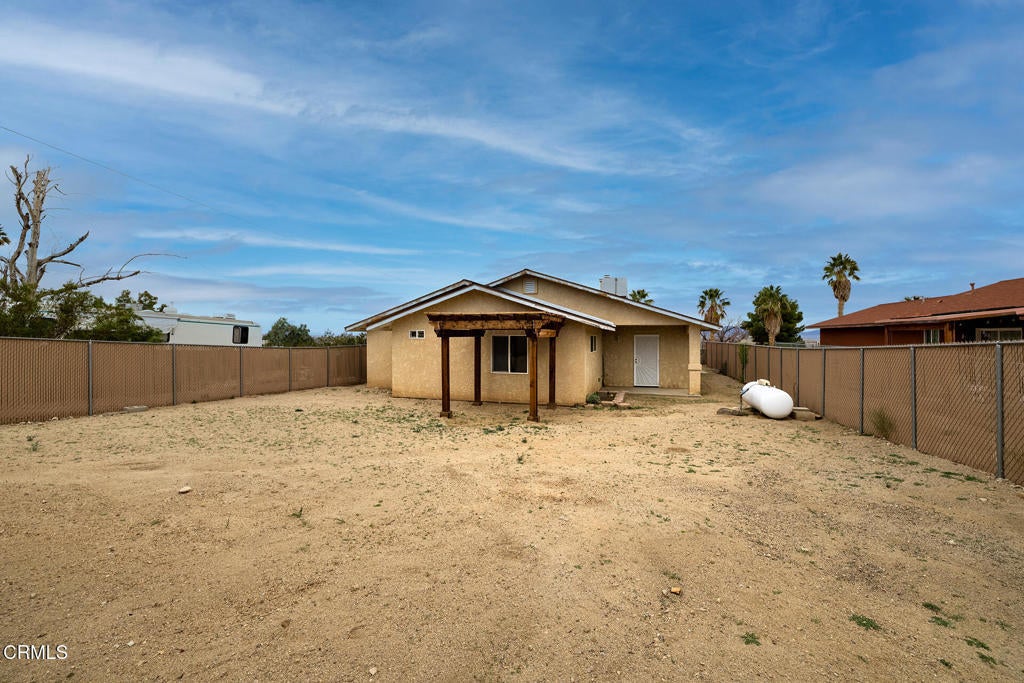 Welcome to 74757 Sunrise Dr, a well-maintained 3-bedroom, 2 bath home located in the desirable Hanson Tract. Built in 2007 and partially remodeled in 2018, this property offers 1,468 sq ft of living space on a nearly 9,000 sq ft lot. The large living area is complemented by a fireplace and a bonus space just off the living room, ideal for a home office, library, or formal dining room. This home features a remodeled eat-in kitchen with granite countertops, newer cabinetry, and stainless steel appliances that run on electric with propane option. Attached to the kitchen is a dedicated laundry room with extra storage. Conveniently located next to the laundry room is a two-car attached garage. The spacious primary suite boasts an en-suite bathroom and two closets, including a large walk-in. Central HVAC and superior Evaporative cooling ensure year-round comfort. You'll enjoy the expansive backyard that offers great mountain views and plenty of room to relax or customize. Ideally situated just minutes from Joshua Tree National Park, close to the Marine Corp training base, and near local amenities, this home combines comfort, functionality, and a sought-after location.