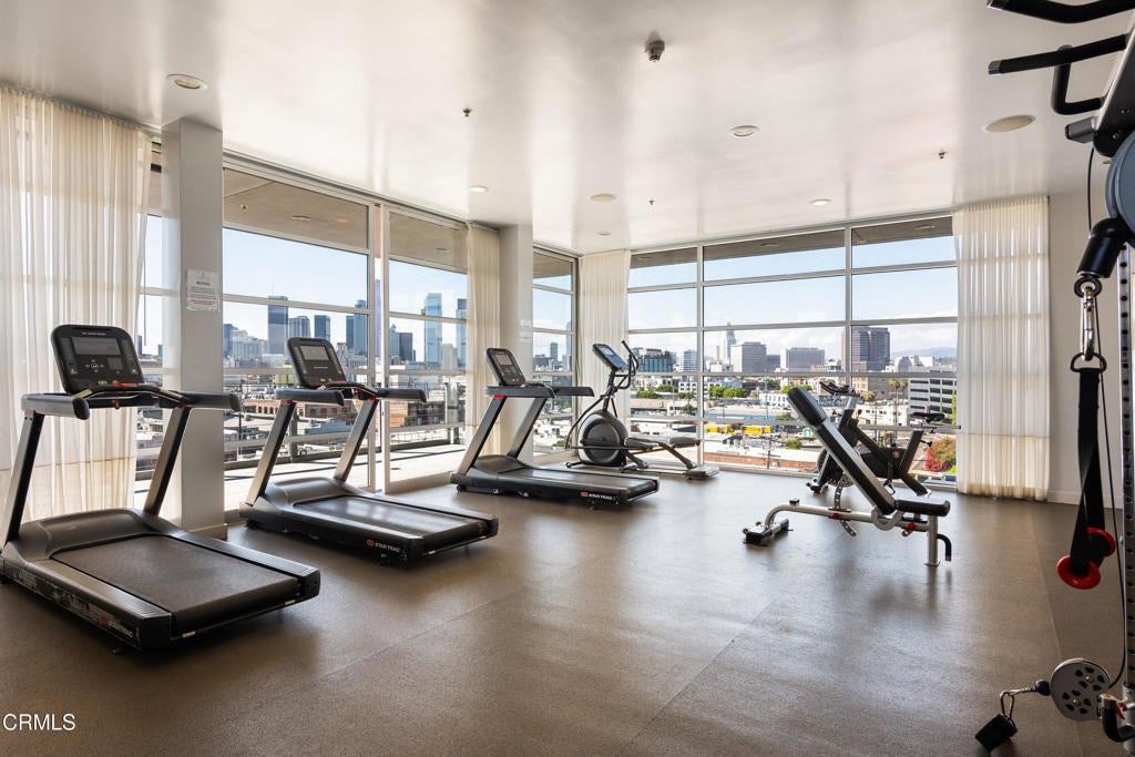 Welcome to Barker Block Unit 110, a unique townhouse-style unit nestled in the heart of the DTLA Arts District. This exceptional residence is perfect for enjoying the vibrant city atmosphere in your own quiet sanctuary. With 1,380 square feet of living space, this unfurnished home features two spacious bedrooms and one and a half bathrooms, blending comfort with modern urban living.Step inside to discover a smartly designed layout with sleek concrete floors and air conditioning, keeping the space cool and stylish. The open living area flows seamlessly into the dining space, creating a welcoming environment for both relaxation and entertaining. Your own private storage unit is deeded with the property, providing ample space for personal belongings. Upstairs is a soft-loft format ideal for a couple or a work from home need or that roommate if you must. Residents enjoy exclusive access to an array of top-tier amenities. Take a dip in the sparkling rooftop pool, unwind in the hot tub, or host a barbecue gathering on the common roof deck. Stay active in the well-equipped gym or just take in the stunning DTLA skyline. Convenience is key with an in-unit washer and dryer and assigned parking in the garage.The building also features a full-time concierge, security gate, and security system, offering peace of mind. Pet-friendly policies ensure that your furry friends are welcome, too. Embrace the sophisticated lifestyle at Barker Block, where comfort meets elegance. Walking distance from dining like Zinc Cafe, Girl and the Goat, Bevel and more.