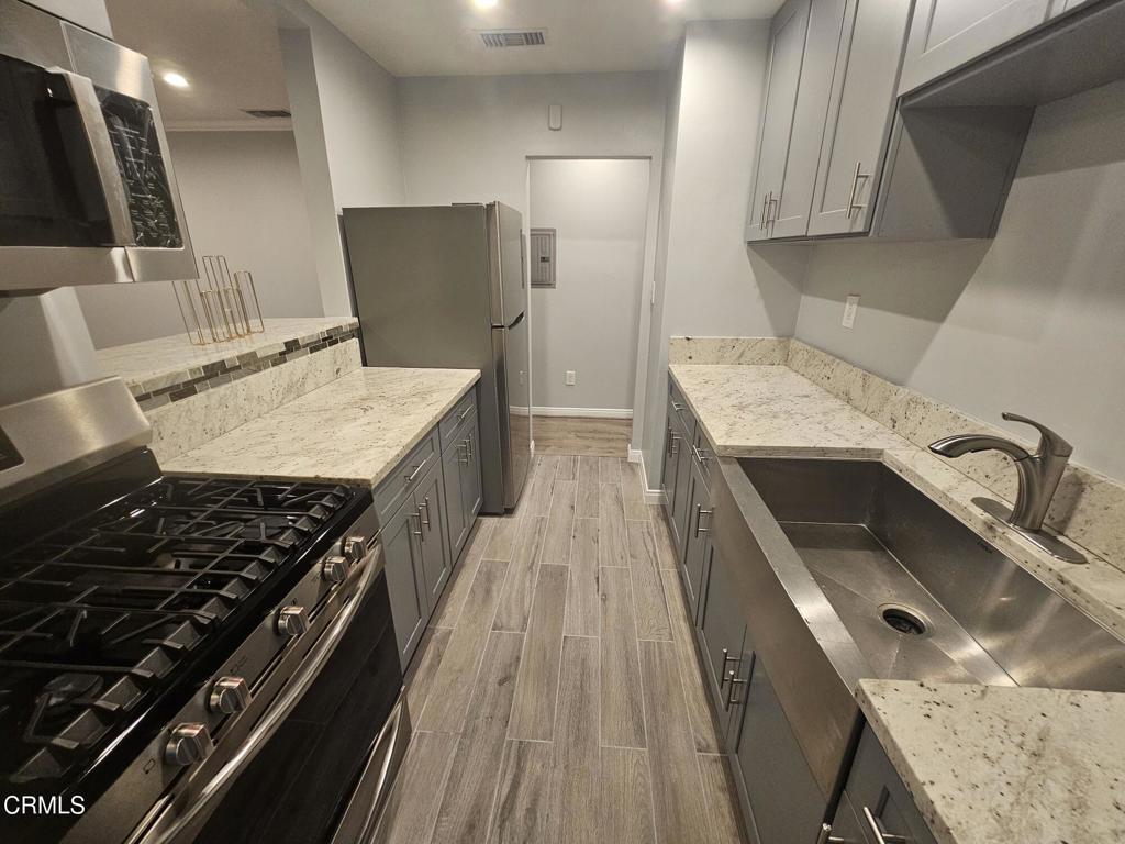 Recently Remodeled Duplex in the heart of Pasadena with a 1-Car Detached Garage with roll-up aluminum door. 1 Large Bedroom with a walk-in closet and access to Back Covered Patio, and 1 Full Bathroom. Front porch entry opens up to Living Room and Breakfast Counter, plus Kitchen with newer shaker cabinets and granite countertops and splash on both sides on new 'wood grain' looking ceramic tile flooring. Large farmhouse basin stainless steel sink, new built-in microwave oven, free-standing stove/oven, free-standing stainless steel refrigerator, that all lead to a cozy Dining Room off kitchen. Unit has Laundry Closet off of hallway with a stackable washing machine and dryer included, plus a linen/storage closet. Beautiful newer laminate flooring throughout and was recently painted. Central Air Conditioning and Forced Air Heating. Recessed lighting throughout most of unit. New window treatments blinds on all windows - which are dual-paned and energy efficient. Access to large backyard. Property is a duplex - so not a lot of tenants - and property is set-back from street, giving you more privacy. Conventiently located close to 210 & 134 freeways, MTA Gold line, Old Town Pasadena, shopping, markets, park (Villa Park, and so much more!Priced well below others in the area. *** 2-year+ lease is preferred. Units here go quick, and don't sit on the market, so inquire today!