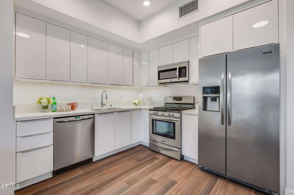 First time on the market for sale. Own a contemporary, spacious and serene home base near the heart of Pasadena. Set in the sleek Monaco Terrace, walking distance from the Del Mar Gold Line station and Pasadena shopping and dining, this stylish two-level condominium is open, modern and filled with the latest amenities. On the first level, a gourmet island kitchen gleams with quartz counters, tile backsplash and stainless steel appliances including a built-in microwave. The spacious living room opens to this setting, the dining area, and a private front patio. A half bath completes this floor. The second level is home to three bedroom suites with generous walk-in closets, a balcony and a laundry closet, carpet, striking light fixtures and sleek blinds add to the polished tone. Behind-the-scenes amenities include security system, central HVAC, tankless water heater, and two-car detached garage.Outdoors, features an inviting landscaped courtyard with a barbecue and grassy area.
