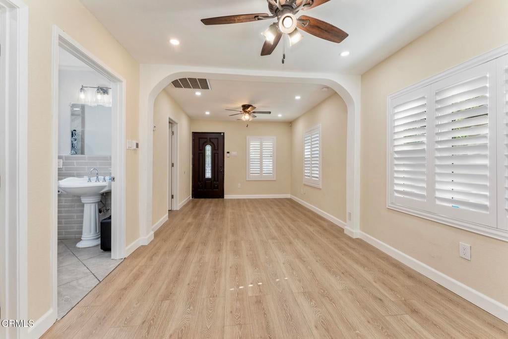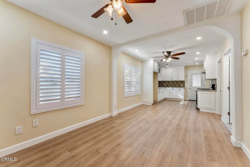 Pet friendly consideration. Enter into this highly upgraded single house on a large lot on the boarders on Boyle Heights and East L A, . There is a large back yard with a concrete open patio area and a large grassy area for entertaining functions and pet accommodation. This home offers two off-street parking spaces (tandem) behind a new sliding gated area. A front concrete and tiled front patio / yard space for your convenience and enjoyment. The front walk-up gate and driveway sliding gates are deadbolt locked.The home has many amenities such as: Central air conditioning and heat / Freshly painted interior and exterior / Wood laminate flooring throughout (no carpet) / Wood plantation shutters on all windows / Newer double pane windows / Recessed ceiling lights / Ceiling fans in the living room, dining area and two of the three bedrooms.The kitchen has been completely remodeled providing: New cabinets / Granit countertops / Decorated glass backsplash / Farm sink with extended neck faucet / Garbage disposal / New 3 door stainless steel refrigerator / 5 burner stainless steel gas stove / Rangehood, and so much more.The large bathroom has been completely remodeled, boasting: Ceramic tile flooring / Oversized walk-in shower (no bathtub) with floor to ceiling tiles inside, just to name a few upgrades.The rear bedroom has its own door that leads into the backyard. The back yard offers two storage sheds for your personal items, a mix of a large open concrete patio and a large grassy area, excellent for entertaining and pets. Fruit trees and a new fiberglass six-foot fencing all around for privacy. There are two locking side gates from the front yard for your pets (breed and size considerations).There are a washer and gas dryer provided outside the back door, off the kitchen. Located near the intersection of Olympic Blvd. and Indiana Ave,, adjacent to the 5, 60 and 710 freeways. This home is ready to be called your own!