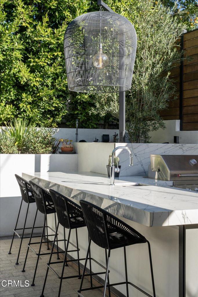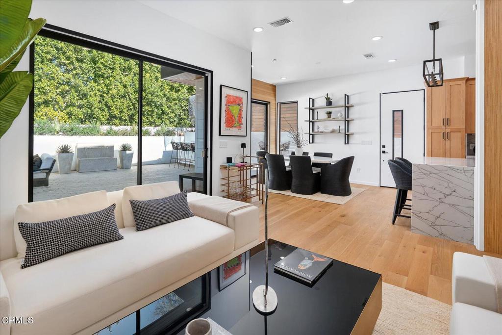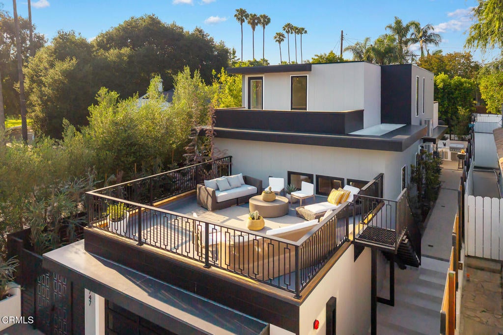 2025 New Build! Energy independent residence in the heart of Studio City--where luxury design meets high-performance living. Crafted with sustainable, climate-resilient materials and advanced smart home technology, this property embodies refined elegance and cutting-edge efficiency.Inside, the home showcases soaring 10-foot ceilings with shiplap wood detailing, creating an expansive feel. A handcrafted staircase stands as a central showpiece, blending natural stone, custom metal railings, and exotic wood finishes. Architectural tall metal-framed windows invite abundant natural light, offering stunning views of Studio City and the Hollywood Hills.Two private decks, accessible from en suite bedrooms, provide seamless indoor-outdoor living. A third oversized entertainment deck above the garage is perfect for hosting gatherings and enjoying city views.The outdoor space is designed for luxury entertaining, featuring a custom outdoor kitchen with a handmade Italian Antolini quartzite island, chandelier, built-in BBQ, sink, wine refrigerator, storage, spice rack, and wall-mounted TV. A designer RH water feature, Lumacast all-season fire table, and meticulously laid pavers blend seamlessly with drought-resistant landscaping. Custom irrigation and Volt lighting provide a resort-style atmosphere.The home is powered by an efficient solar energy system, reducing power costs and promoting self-sufficiency. Built with climate-resistant materials, this residence offers long-term durability and sustainability.Inside, you'll find custom Restoration Hardware lighting fixtures, French oak wide plank flooring, and natural stone surfaces like Carrara limestone and Thasos. The gourmet kitchen includes Miele appliances, a custom stainless hood, Shaws fire clay sink, quartzite island, Alder cabinetry, and a marble bay window. Laundry rooms on both levels are equipped with Miele washer and dryer sets.Three full bathrooms feature floor-to-ceiling marble and natural stone, with luxurious Restoration Hardware fixtures and lighting. Tailor-made walk-in closets provide generous storage in every suite.The exterior boasts handcrafted iron security gates and fencing with Brazilian mahogany inlays, smooth stucco walls, and striking metal overhangs.More than a home, it's a visionary expression of sustainability, craftsmanship, and design in one of Los Angeles' most desirable neighborhoods. This home is available with ALL Modern Luxury furnishings.