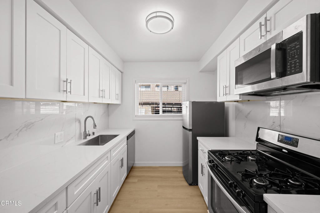 Welcome to this fully remodeled 1-bedroom, 1-bathroom unit in Pasadena. Upon entering the unit, you are welcomed into a large living room with plenty of space to host guests and brand new, luxury vinyl flooring throughout. Making your way to the kitchen you will be greeted by beautiful white countertops and brand new stainless-steel appliances that include refrigerator, dishwasher, stove, microwave, and dishwasher. The bedroom has windows that bring natural light into the space and a large closet. The bathroom has tiled flooring and a tiled shower that makes the room feel bright and spacious. The unit also features in unit laundry and one parking space.