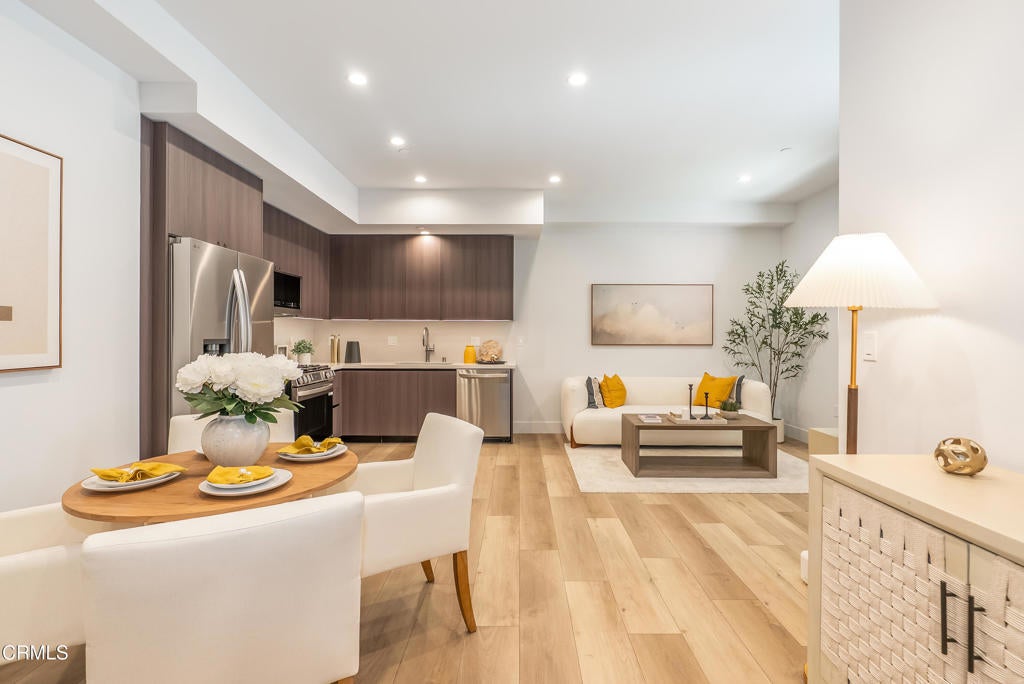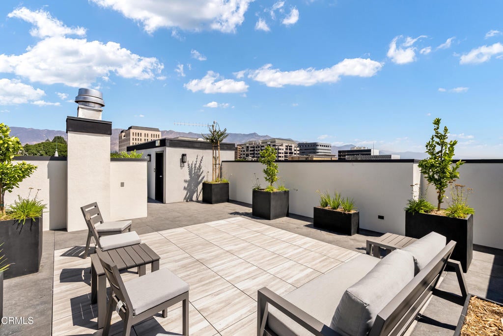 One of 19 stunning new condos in Pasadena's Vibrant Playhouse Village...Welcome to your modern retreat in the heart of Pasadena. This brand-new, luxury condominium blends sophisticated design, quality finishes, and unbeatable location for an elevated urban lifestyle.Step inside to discover an open-concept living area filled with natural light, designer recessed lighting, and wide-plank wood floors that flow seamlessly throughout. The gourmet kitchen features sleek wood-grain cabinetry, premium stainless-steel appliances, quartz countertops, and a full-height backsplash--perfect for cooking and entertaining in style.The primary bedroom suite treats one to a calm, beautiful space complete with oversized windows, custom lighting, and a spacious closet, complemented by a bath en suite. The spa-inspired bathrooms impress with gorgeous vanities that flaunt modern fixtures, quartz counters and elegant large-format porcelain tile.You'll appreciate the private patio--ideal for morning coffee or evening relaxation, but don't miss the spectacular 5th floor rooftop deck featuring multiple lounge areas, lush planters, and a built-in BBQ and fire pit for ultimate ambiance to match the panoramic city and mountain views.Developed by a local builder with a strong track record of creating exceptional condominiums throughout Pasadena, Midtown Condos reflects a deep commitment to quality and community.NOTE: renderings and video depict a similar unit but are NOT photos of the exact unit.