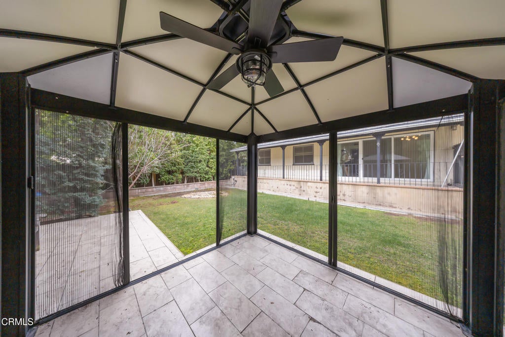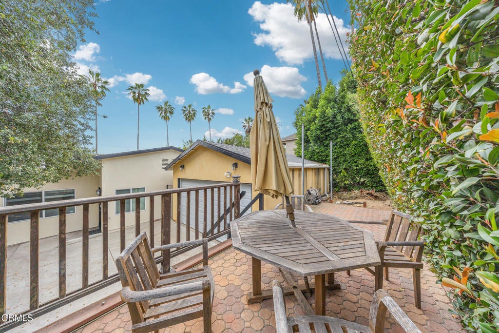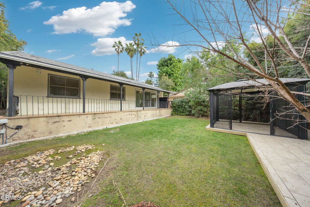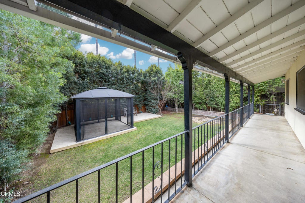 This well-maintained single-story four-bedroom home is located in the charming community of Sierra Madre. As you arrive, you are welcomed by attractive, drought-tolerant landscaping and a shared driveway leading to a spacious garage. The home is equipped with a whole-house water softener and a Ring security system. A cozy den sits just off the driveway, complete with patio furniture and perfect for relaxing or casual gatherings.The kitchen and dining area are conveniently located near the main entrance and are well equipped with a refrigerator, five-burner gas cooktop, double oven, brand-new microwave and dishwasher, and an enclosed pantry. Adjacent to the dining area is a guest bedroom with an en-suite bathroom featuring a Woodbridge smart toilet and a generous closet with built-in shelving.The south facing living room is situated next to the kitchen and offers direct access to the patio, overlooking the backyard. The backyard features lush grass and a domed hardtop gazebo with a ceiling fan and screen doors, creating an inviting outdoor space.A washer and dryer are discreetly located in a hallway closet with a door enclosure. Down the hallway is a remodeled bathroom with marble walls, a double sink vanity and a shower-tub combination, easily accessible from two additional bedrooms. The primary bedroom includes its own private bathroom with a brand-new glass shower enclosure.Ideally located just a short distance from downtown Sierra Madre, the home offers convenient access to a supermarket, pharmacy, restaurants, coffee shops, and a variety of local boutiques. It is also a block away from Sierra Vista Park and a YMCA swimming pool. This is a wonderful opportunity to enjoy comfortable living in a truly delightful town.