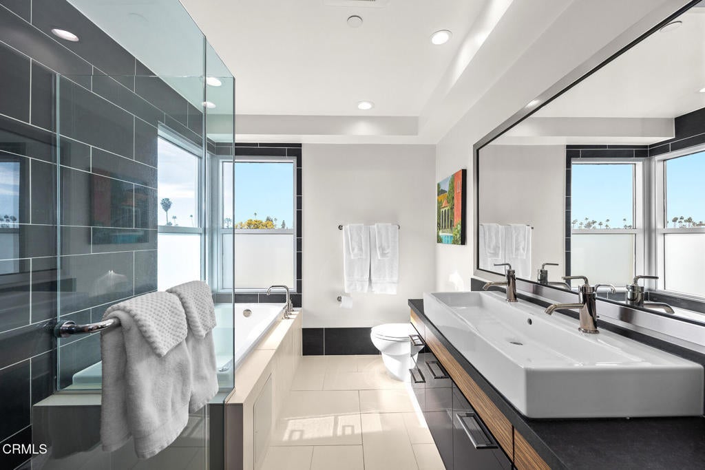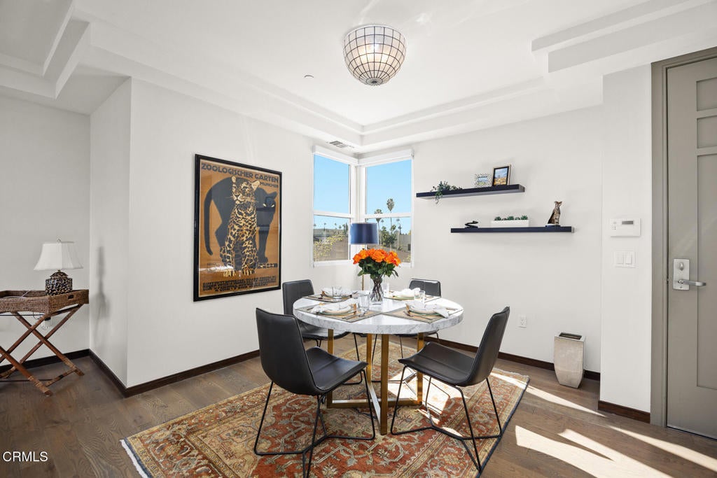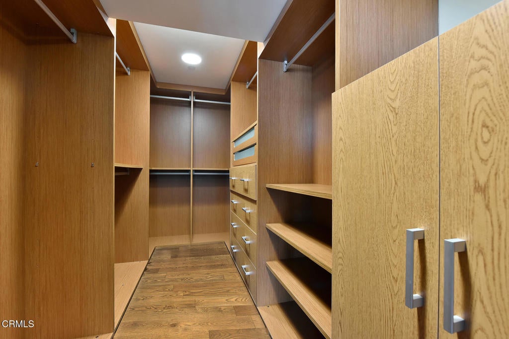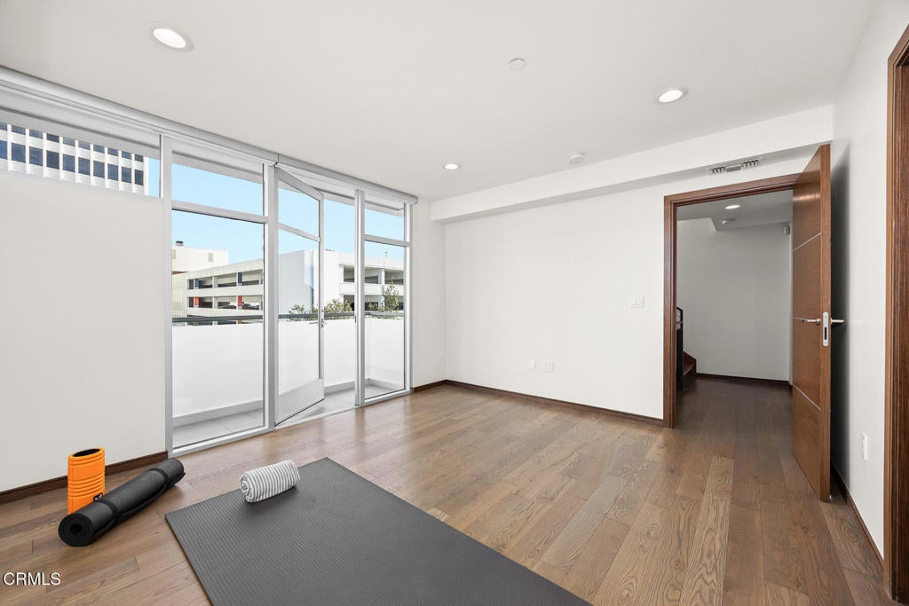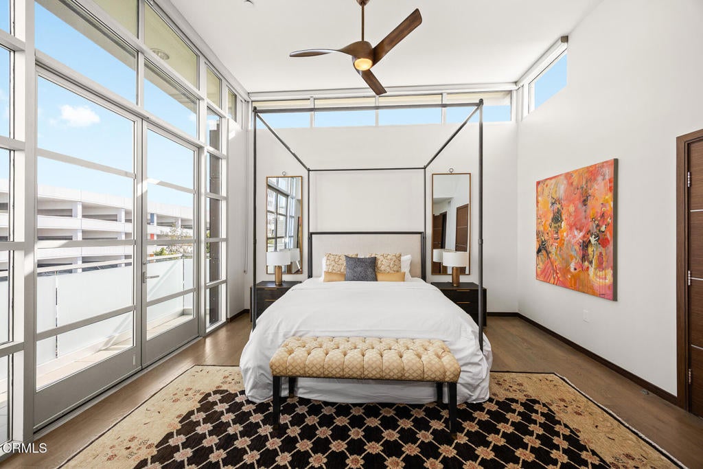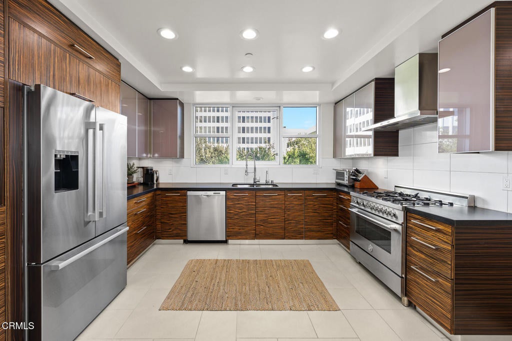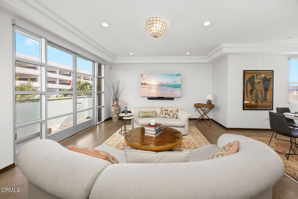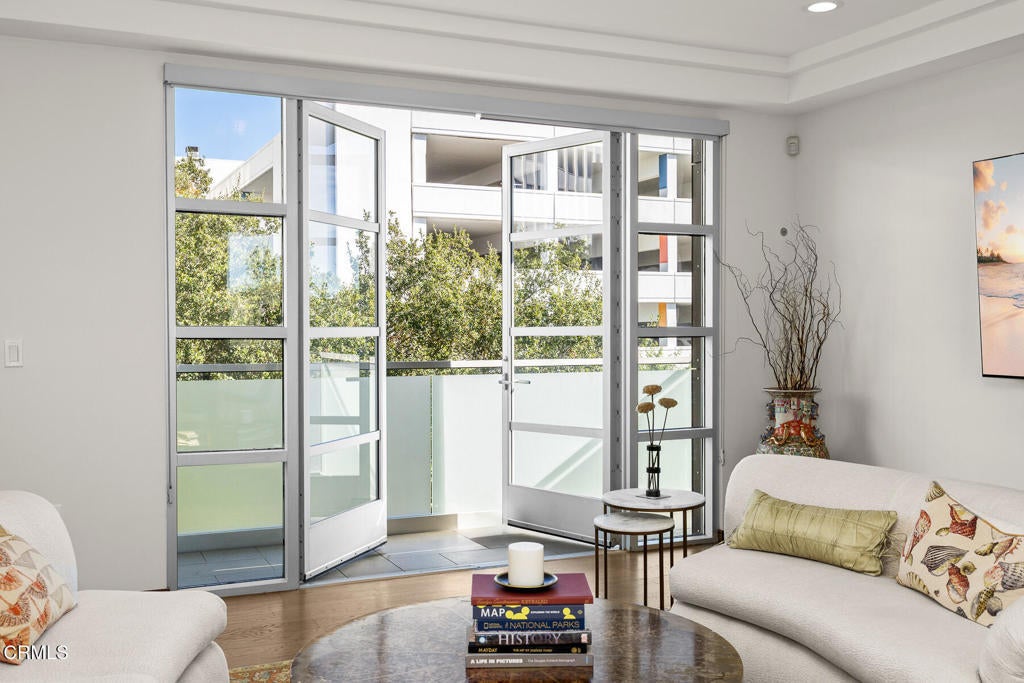 Inspired by Bauhaus architecture, Hudson Terrace is a modern luxury penthouse built in 2009 in Pasadena's vibrant South Lake Avenue District. Ideally positioned across from the Pasarroyo Business Complex and 1 block from dining, shopping, and fitness--including Trader Joe's, Erewhon, Macy's, and LA Fitness--this front-facing penthouse offers exceptional urban convenience in one of the city's most desirable neighborhoods. The exterior features a Trespa Meteon rain shield system, ivory brick and stucco detailing, sandblasted glass balcony railings, and expansive floor-to-ceiling windows that fill the home with natural light. This residence provides a loft-like living experience with a dramatic living room showcasing resurfaced hardwood floors, a precast stone corner fireplace, French Deco capiz shell sconces, custom Hunter Douglas roller blinds, and floor-to-ceiling dual-paned glass doors opening to a balcony overlooking oak-lined Hudson Ave. Updated electrical circuitry and Lutron Caseta dimmer-controlled recessed lighting enhance the modern ambiance. An elegant guest bath with marble counters and intricate tilework completes the main level. The gourmet kitchen features sleek Italian-designed cabinetry, honed black granite countertops, a Bertazzoni gas range and hood, Bosch stainless steel appliances, filtered water at both sink & refrigerator, a walk-in storage room, utility closet, and a dedicated balcony with stainless FireCraft smoker grill. The primary suite offers vaulted ceilings, remote-controlled roller shades, a craftsman wood ceiling fan, a gas fireplace, and a custom Dall'Agnese walk-in closet. The spa bath includes a 6 jet soaking tub, floor-to-ceiling glass shower, double Duravit sinks with Kohler polished nickel fixtures, and imported stone. A second bedroom with a mirrored wall functions as a guest room, gym, or office, with an adjacent bath featuring a spacious travertine and mosaic steam shower. A private rooftop terrace crowns the penthouse, offering sweeping city & mountain views. Additional highlights include 4 balconies, 2 side-by-side parking spaces near the elevator and storage room. Upgrades: Nest climate control, Lutron Caseta lighting, Hunter Douglas blinds, Restoration Hardware lighting, Bosch refrigerator, LG ThinQ washer/dryer. This pristine residence is moments from Pasadena's iconic: Caltech, ArtCenter, Langham, Huntington Library, Norton Simon, Old Town, Playhouse & Rose Bowl.
