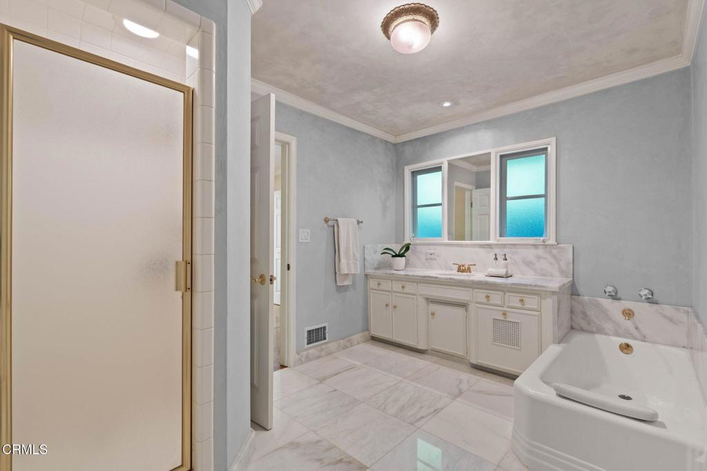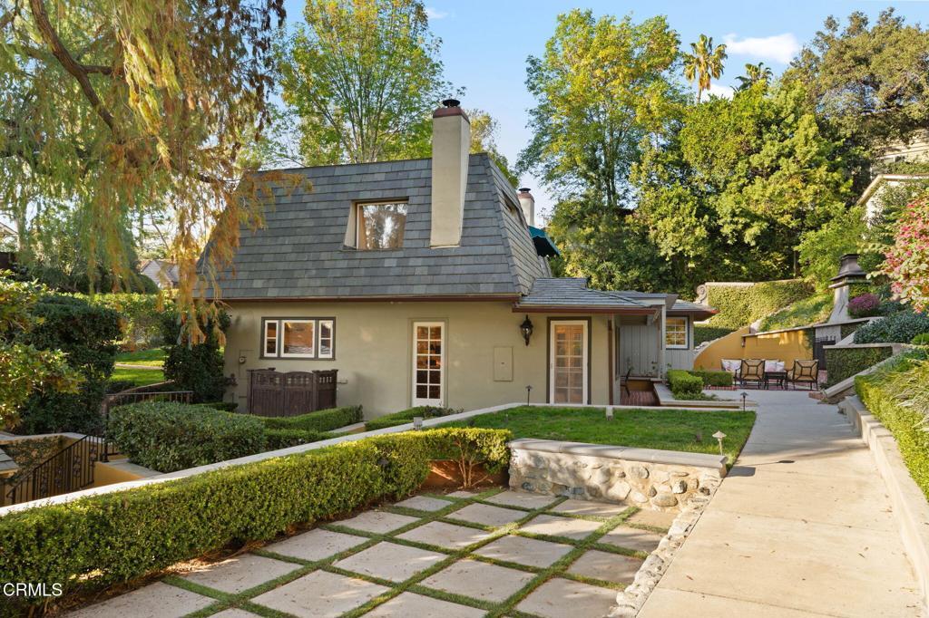 The charm and magic of the Loire Valley await you on a private cul-de-sac in Pasadena's exclusive Busch Gardens neighborhood. Welcome to 1010 Stoneridge Drive, a gorgeous French Provincial home designed for those who appreciate privacy, elegance, and the finer things in life. Tall, lush hedges and century-old Montezuma Cypresses envelop the beautifully landscaped grounds, where afternoon sunlight filters through cascading branches onto the winding pathways crafted from historic Simon's bricks. Coming home feels like entering your own private sanctuary. Crowned with a mansard slate roof, even before you enter it's clear that quality and luxury define this exceptional residence. Inside, the open floor plan creates an ambiance that's both graceful and inviting. The spacious living room, with its gleaming oak floors, handsome fireplace, and wall of French doors flows naturally to the exquisite chef's kitchen, which has been completely remodeled. With commercial grade Viking range, Sub-Zero fridge, and a massive island topped with stunning Taj Mahal quartzite, there's plenty of space to host a charcuterie tasting with a dozen or more guests. Nearby, the open-concept dining room stands ready for the feast to follow and looks out to the peaceful backyard. The home includes three spacious en suites, with two found on the main level. Upstairs, the owner's suite is a peaceful and luxurious retreat complete with a fireplace, garden views, and a palatial bath. Down the hall, find a quiet home office filled with natural light. When entertaining, your supremely private backyard offers the perfect backdrop for garden parties and intimate gatherings with close friends. With lush greenery, a massive outdoor fireplace, and multiple areas to sip, dine, and unwind, time spent here feels like you're relaxing in the French countryside. Just close your eyes, feel the breeze, and listen to the sounds of the songbirds. As part of the historic Busch Gardens estate, the grounds feature remnants of its storied past, including stately decorative volutes and a river rock staircase that once stretched to the back door of the original home, evoking a sense of heritage and timeless elegance. More than just a beautiful home, 1010 Stoneridge Drive is an invitation to savor the good life.