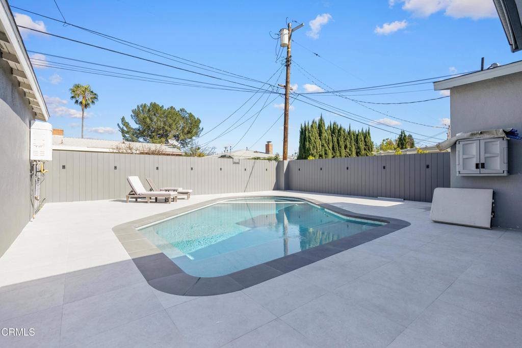 Newly updated 4-bedroom, 3-bath home for lease in the heart of Valley Village! This spacious home offers over 1,600 sq ft with an open living area, open kitchen, separate laundry room, and en-suite bedrooms. The kitchen features granite countertops, stainless steel and black appliances, bar seating, and large windows that bring in great natural light. Bathrooms have been updated with modern tile finishes, and the bedrooms are generously sized with plenty of closet space. Enjoy a private backyard with a covered patio and a beautifully updated pool with new stone and pebble finish--perfect for relaxing or entertaining. Washer and dryer hookups are included (machines not provided). Conveniently located near shopping, dining, nightlife, and major freeways. Please note: There is a detached ADU on the property, separated by a private fence. The driveway and parking belong to the main house. There is also an option to rent both units together at a higher price.