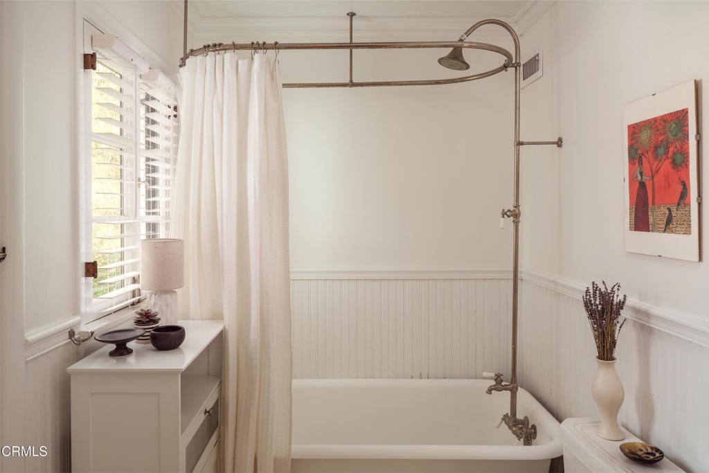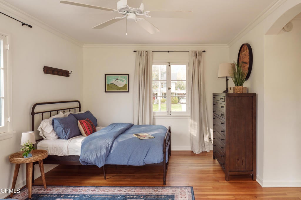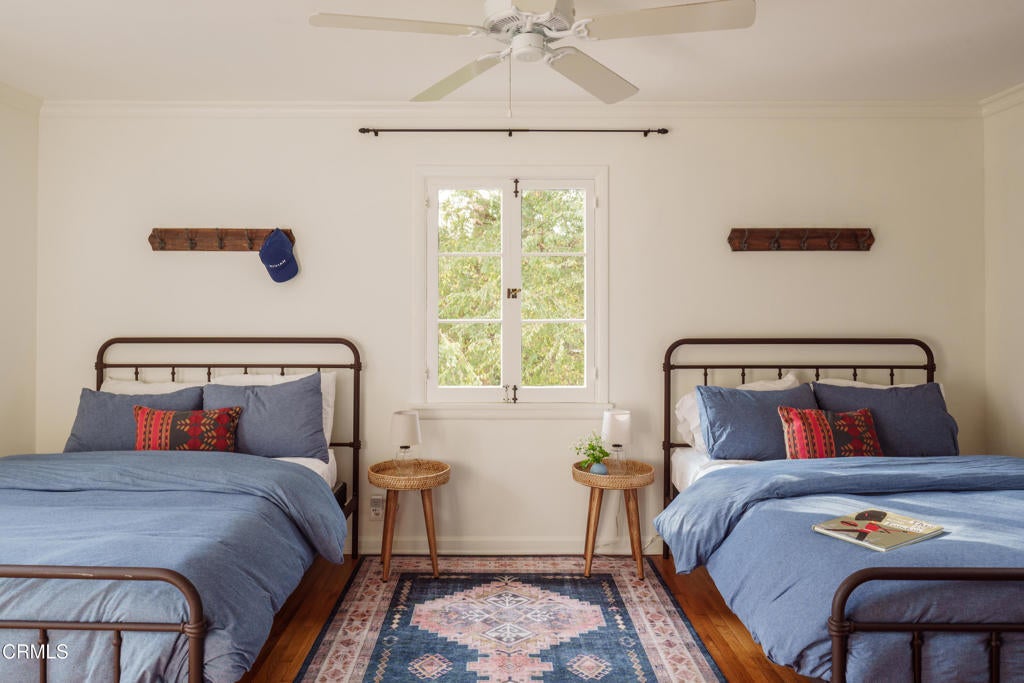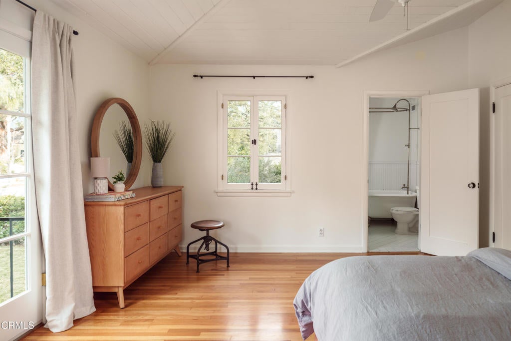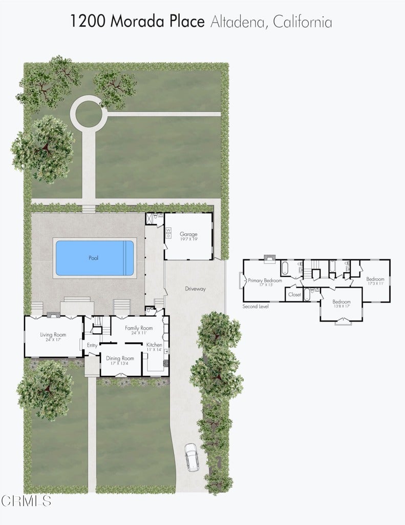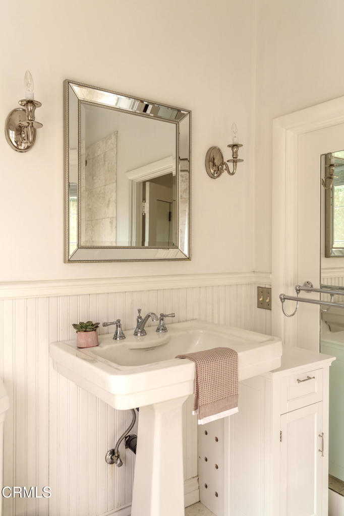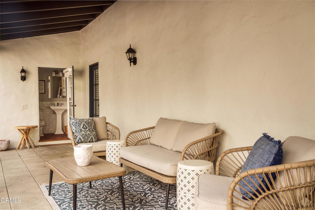 A beautifully restored and thoughtfully updated Spanish Colonial Revival, 1200 Morada Place blends timeless architectural character with elegant modern updates. The home was built in 1926 by esteemed architect John Danley Atchison who built several homes in Pasadena, Altadena and Beverly Hills. From the moment you arrive, the fantastic curb appeal makes an impression--an inviting entry framed by classic saltillo pavers sets the tone for what lies beyond. Inside, hardwood floors run throughout the home, leading to a dramatic step-down living room with exposed beam ceilings and a stunning plaster fireplace. French doors flanking the fireplace open directly to the expansive backyard, creating a seamless indoor-outdoor flow that's ideal for both entertaining and everyday living. Through traditional arched doorways, the large formal dining room opens to the updated kitchen, where white quartzite countertops, stainless steel appliances, and a Viking range combine elegance and functionality. Every detail feels intentional, honoring the home's Spanish roots while elevating it for today's lifestyle. Upstairs, a generous primary suite complete with its own fireplace and beautiful mountain views feels serene and sunfilled. A second en-suite bedroom, a spacious third bedroom, and a large hall bathroom complete the upper level, offering comfort and flexibility for family or guests. The oversized backyard is a true highlight--featuring a beautifully redone pool, an expansive grassy area perfect for gardening or play, and ample space to accommodate a future guest house or ADU. A charming covered loggia overlooks the pool and includes an additional bathroom with convenient garage access, making outdoor living effortless year-round. This incredible property is not just classic California, it's classic Altadena.