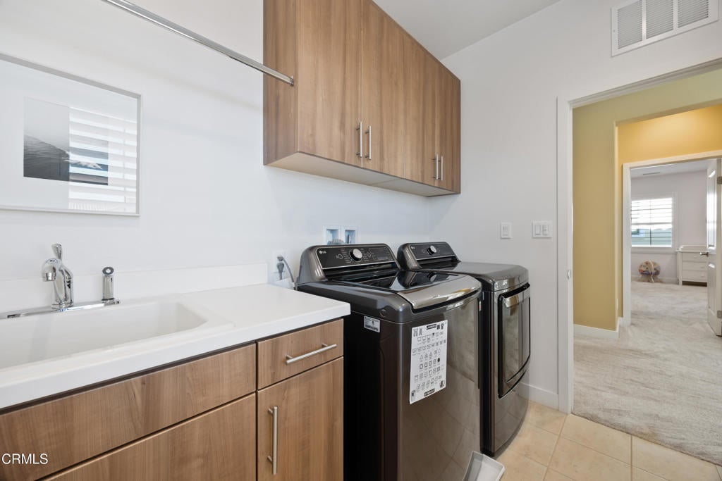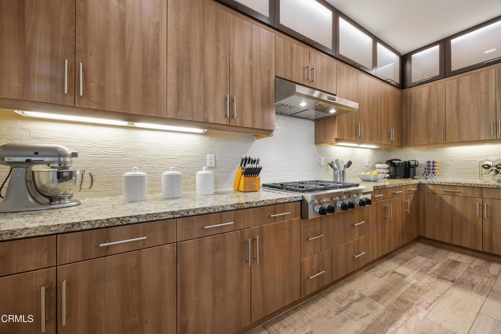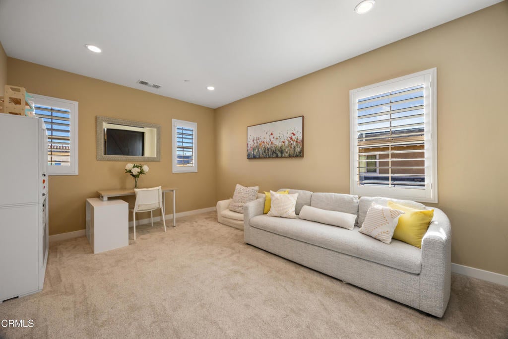 Nestled in the prestigious Rosedale Community this 4 Bedroom + Den fully paid off SOLAR home offers the perfect blend of modern sophistication, luxurious upgrades, and serene outdoor living. Every detail has been thoughtfully curated to provide both elegance and comfort in one of the area's most sought-after neighborhoods.Step into a world of refined design and comfort. Just off the entry, a rare downstairs bedroom suite with its own expansive private patio, creating a seamless indoor-outdoor retreat perfect for guests or multigenerational living. The open-concept floor plan unfolds into a formal dining room and living room flanked by a custom wood-paneled wall, centered around a contemporary fireplace that exudes warmth and style.At the heart of the home, the remodeled modern gourmet chef's kitchen impresses with sleek granite countertops, premium stainless-steel appliances, including a wall oven and 6-burner gas range with exhaust hood and a large island. Modern cabinetry, a walk-in pantry with custom wood shelving, and upgraded lighting complete this stunning culinary space.Upstairs, a spacious loft with sliding barn doors provides a flexible retreat ideal for a media lounge,home office or 5th bedroom. The primary suite redefines luxury with a walk-in closet and an expansive spa-inspired bathroom larger than many bedrooms. Relax in the oversized soaking tub or rejuvenate in the glass-enclosed oversized shower with built-in bench. Dual vanities, a private water closet, and extra storage add to the functionality and indulgence. Three additional bedrooms and a large laundry room with mud sink and storage complete the upper level.Custom built-ins, upgraded cabinetry, plantation shutters, and a paid-off solar system add comfort and efficiency throughout. The oversized three-car garage offers is thoughtfully designed with coves for storage.The private backyard is an entertainer's dream, framed by lush, fragrant landscaping that fills the air with the scent of Asian jasmine, lemon and lime trees, roses, basil, rosemary, and lavender. Two covered patios offer elegant spaces for al-fresco dining and lounging, while the outdoor kitchen with built-in grill, Blackstone griddle, and a cozy fireplace, creates the ultimate SoCal entertaining experience. As the day winds down, enjoy mesmerizing sunset views across the mountains and the greenbelt. Don't miss Rosedale's amenities, Jr. olympic salt-water pool, gym, etc!