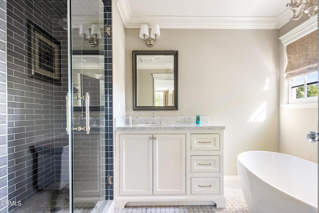 Welcome to 2390 Ridgeway Road, a sanctuary estate nestled in the esteemed heart of The City of San Marino, North of Huntington Drive. This historic home, recognized by The City of San Marino as a potential contributor to the Huntington Hill Historic District, embodies the essence of timeless elegance and refined living. Originally crafted in 1936 by the renowned builder E.A. Daniell, this Colonial Revival masterpiece stands as a testament to architectural excellence and enduring quality. Meticulously restored to its original grandeur by Greenwich Home Construction & Remodeling Inc., this award-winning estate seamlessly merges classic charm with modern luxury. Step inside and be greeted by an expansive foyer leading to a professionally decorated living room, adorned with a wood-burning fireplace and beamed ceiling, and a gracious formal dining room featuring custom ceiling moldings and oversized bay windows, bathing the space in natural light. The kitchen, thoughtfully renovated with premium materials, boasts ample cabinet space, natural stone marble countertops, and high-end commercial appliances. French doors from the kitchen and living areas effortlessly blend indoor and outdoor living, inviting you to explore the lush custom-designed gardens. The second level offers a tranquil retreat with a cozy den and three spacious ensuite bedrooms, each exquisitely appointed with custom details. Luxurious touches abound in the renovated bathrooms, showcasing soaking tubs, marble accents, and high-end fixtures. Original hardwood floors throughout the home add warmth and character, while the expansive park-like lot, newly landscaped gardens, and sparkling pool and spa create a private oasis for relaxation and entertainment. Completing this extraordinary property is an oversized detached garage with additional storage space, crowned by a cupola and copper weathervane. In every detail, 2390 Ridgeway Road epitomizes the timeless allure of historic craftsmanship and bespoke luxury. A rare opportunity for the discerning buyer to own a piece of San Marino's rich architectural heritage, meticulously preserved for generations to come.