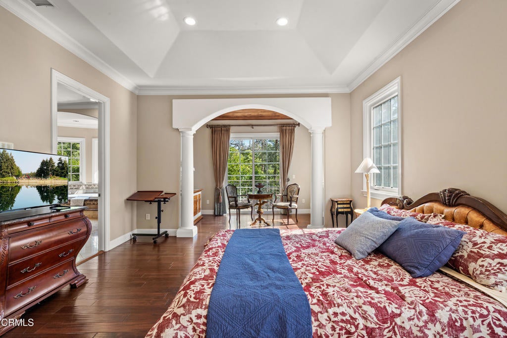 Welcome to this stunning Mediterranean luxury home nestled in the quiet and prestigious neighborhood of La Canada Flintridge. Situated in the heart of nature, this exquisite residence features 5,657sq.ft and occupies an approx. 19,629 sq.ft lot with landscaped gardens that are truly a sight to behold.With 5 spacious rooms and 6 bathrooms, each bedroom boasting its own private bathroom, this home provides the utmost convenience for every member of your family. One of these bedrooms offers direct access to the backyard, creating a private retreat for guests or family members. The interior features are truly remarkable, with high ceilings that create an open and airy atmosphere throughout the house. The main level seamlessly flows into an open concept design, with the family room seamlessly connecting to the living room and offering direct access to the backyard a true entertainer's dream. The gourmet kitchen, a chef's delight, showcases new granite counters, top-of-the-line appliances, and an abundance of sleek cabinets. Step outside and be captivated by the enchanting Mediterranean-style exterior. Entertain guests with ease in the backyard oasis, which features a built-in BBQ, a sparkling swimming pool and spa, and a lavish waterfall. The covered patio and gazebo offer the perfect spots to relax and unwind, while the spacious backyard provides plenty of room for parties and gatherings. The lush and bushy backyard, adorned with an abundance of trees, creates a serene and private sanctuary. With a 3-car garage, this property provides ample parking space for your convenience. Award Winning La Canada School District.
