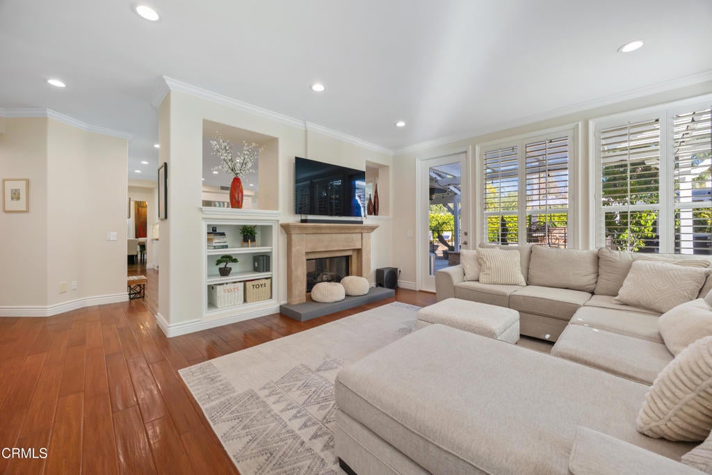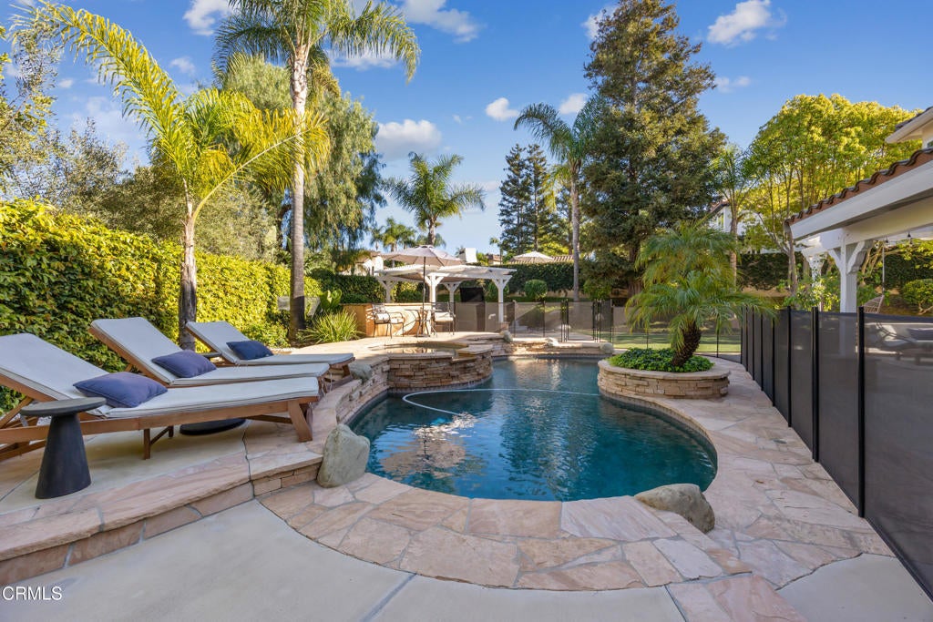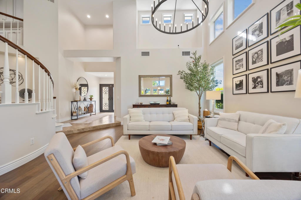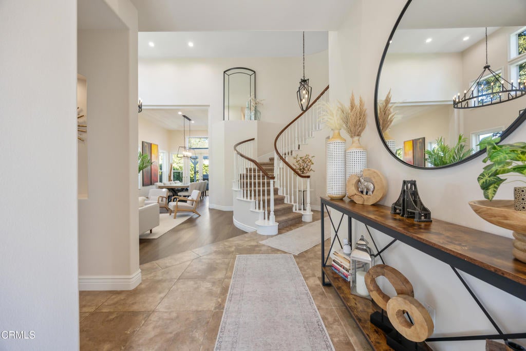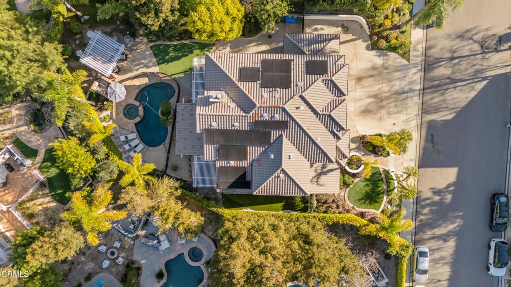 Enter the gates of Legacy Estates in Wood Ranch and discover a home where elegance, privacy, and resort-style living come together. This beautifully appointed 5-bedroom, 4-bath residence offers over 3,527 square feet of living space on an expansive 11,286 square foot lot designed for both comfort and entertaining.A dramatic entry with custom wrought-iron double doors opens to soaring vaulted ceilings and light-filled living spaces. The versatile floor plan includes four bedrooms upstairs, including a luxurious primary suite, while a fifth bedroom on the main level provides the perfect guest suite, office, or private quarters.The chef's kitchen features custom cabinetry and Viking stainless steel appliances, flowing effortlessly into the home's gathering spaces. The primary retreat offers its own fireplace, dual closets, spa-style bath with soaking tub, separate shower, and dual vanities.The backyard is a true entertainer's retreat with a sparkling pool and spa, built-in BBQ, and generous patio space for outdoor living. Additional highlights include hardwood floors, Milgard windows with plantation shutters, travertine finishes, and a rare four-car garage with a drive-through bay to the backyard.The Home Features Tesla Solar Panels for more modern efficiency with EV Charging capability, Additional upgrades include lighting throughout, updated HVAC system and paint throughout.Located within walking distance of Wood Ranch Country Club and close to excellent schools, shopping, and recreation, this gated residence offers the best of Wood Ranch living.