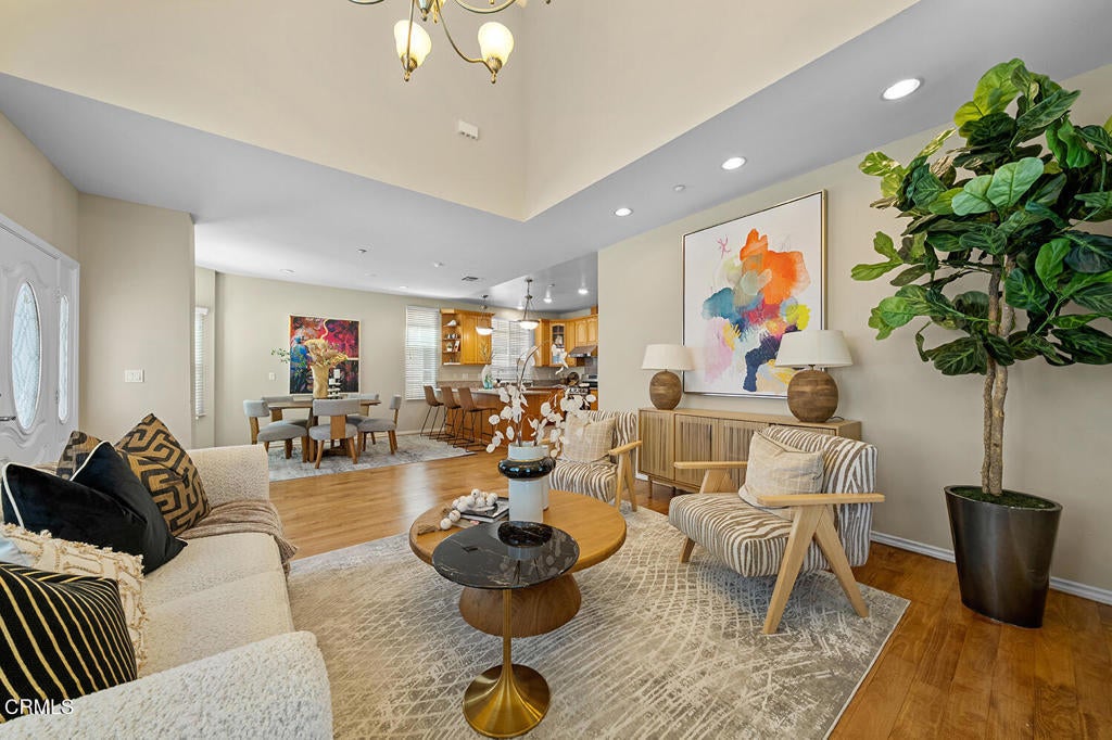 Located in a prime pocket of San Gabriel, this 3 bedroom plus den and loft home is within an intimate 3-unit community, offering the privacy of a single-family residence with the ease of low-maintenance living. Upon arrival, you're greeted by a freshly landscaped front yard that creates a warm welcome. The main level features an open floor plan with elevated 12-foot high ceilings in the living room, enhancing the light and airy feel of the space. A cozy fireplace anchors the living area, and the dining area is highlighted by a bay window, adding architectural interest to a space designed for both gatherings and daily enjoyment. It flows seamlessly into the kitchen, where bar seating at the peninsula island makes everyday meals and casual entertaining effortless. The refinished maple hardwood floors add elegance throughout the first level. A versatile office or den with French doors opens to exterior greenery--perfect for working from home or enjoying a quiet retreat. A full bathroom downstairs, ample storage beneath the staircase, and direct access to the attached two-car garage complete the lower level. The garage is thoughtfully equipped with a Tesla charger and overhead storage racks, adding convenience and functionality. Upstairs, a spacious loft provides the perfect setting for a secondary living area, media space, or playroom. Two sizable bedrooms share a full bathroom, while the oversized primary suite serves as a true sanctuary. Designed for relaxation and comfort, it features a walk-in closet and a well-appointed ensuite bathroom with a standalone shower and soaking tub. Modern upgrades enhance everyday living, including an ADT security system, smart thermostat, and Google Nest doorbell, offering comfort, efficiency, and peace of mind. Ideally situated near a variety of restaurants, grocery stores, and convenient freeway access, this home offers easy connectivity to wherever you need to go--all while enjoying the charm and convenience of the San Gabriel Valley. *Title shows 4 bedrooms, downstairs room is used as a den with an adjacent full bath.