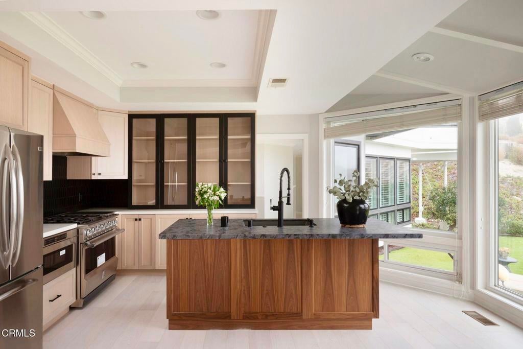 Unobstructed Ocean & Catalina Views in Rancho Palos Verdes with Top-Rated Schools!Wake up to sweeping, unobstructed ocean views from every south-facing window in this beautifully remodeled coastal retreat. Perched in a private gated community in Rancho Palos Verdes, this light-filled home offers breathtaking Pacific and Catalina Island views paired with an elegant yet comfortable design.The main living spaces are bright and airy, with a seamless indoor/outdoor flow ideal for everyday living and entertaining. A spacious great room features a dramatic accordion-style window that frames the ocean and opens wide to let in fresh coastal breezes. A stylish wet bar cozy adds charm. The chef's kitchen is both functional and refined, showcasing granite countertops, a center island with leathered stone, and a newly installed Hestan professional-grade range.A formal dining room captures spectacular Catalina views, creating a memorable backdrop for dinners and gatherings. Nearby, the formal living room offers another inviting space to relax and enjoy the scenery by the fireplace. A powder room and separate laundry room complete the main level, along with two bedrooms on the main floor sharing a beautifully remodeled bathroom. Upstairs, the private primary suite feels like a peaceful retreat above the coastline, with panoramic ocean views and a spa-like bathroom featuring a soaking tub positioned to take in the horizon. An adjacent office or optional fourth bedroom opens to its own private deck.The oversized front yard feels like a park, shaded by mature trees and offering generous outdoor space. Additional highlights include a three-car garage, a large driveway, and access to popular nearby hiking trails and Del Cerro Park. Located near top-rated schools and quiet streets, this exceptional home offers privacy, beauty, and the best of coastal living.