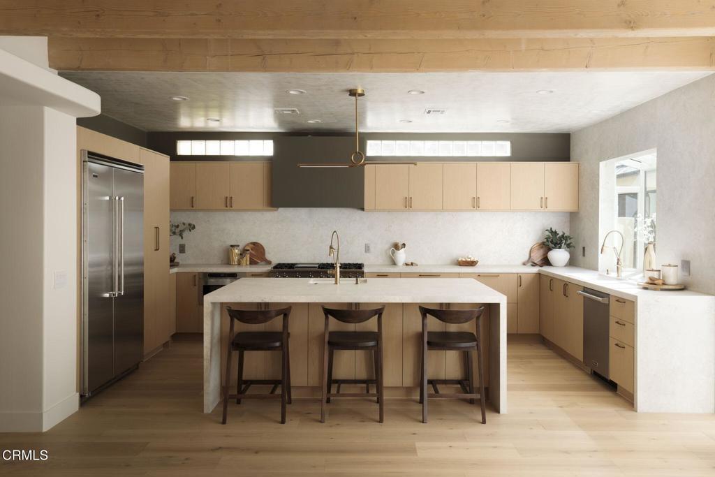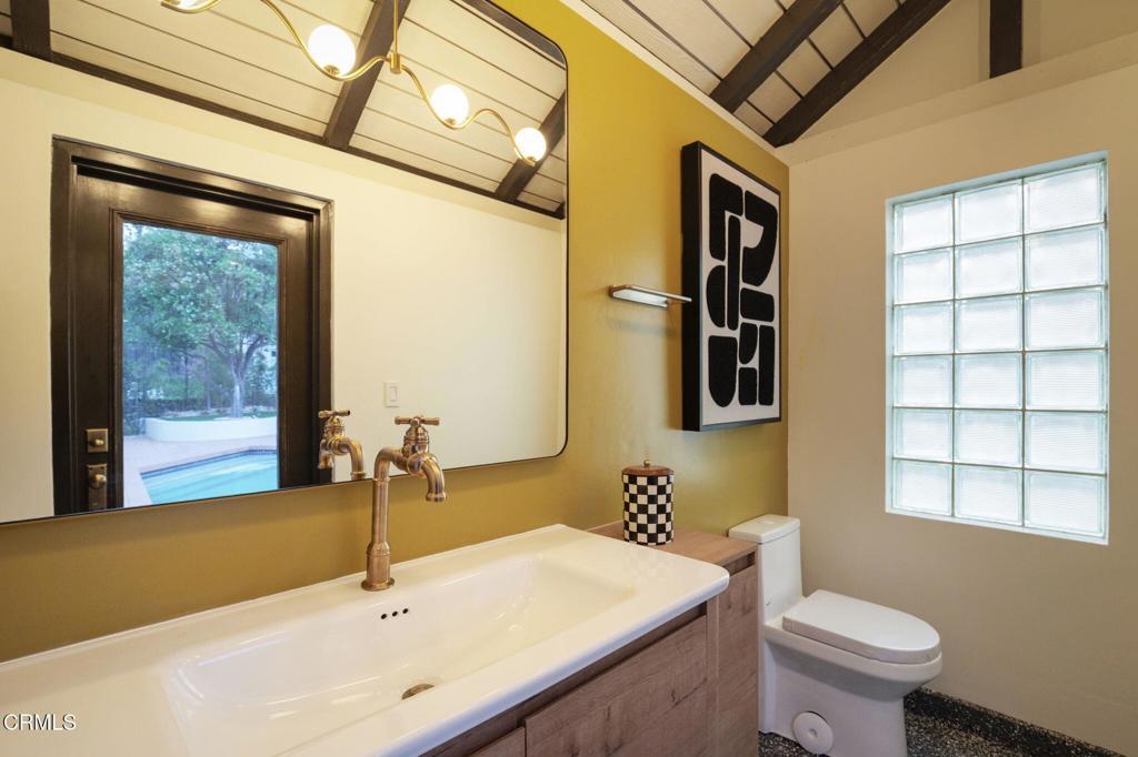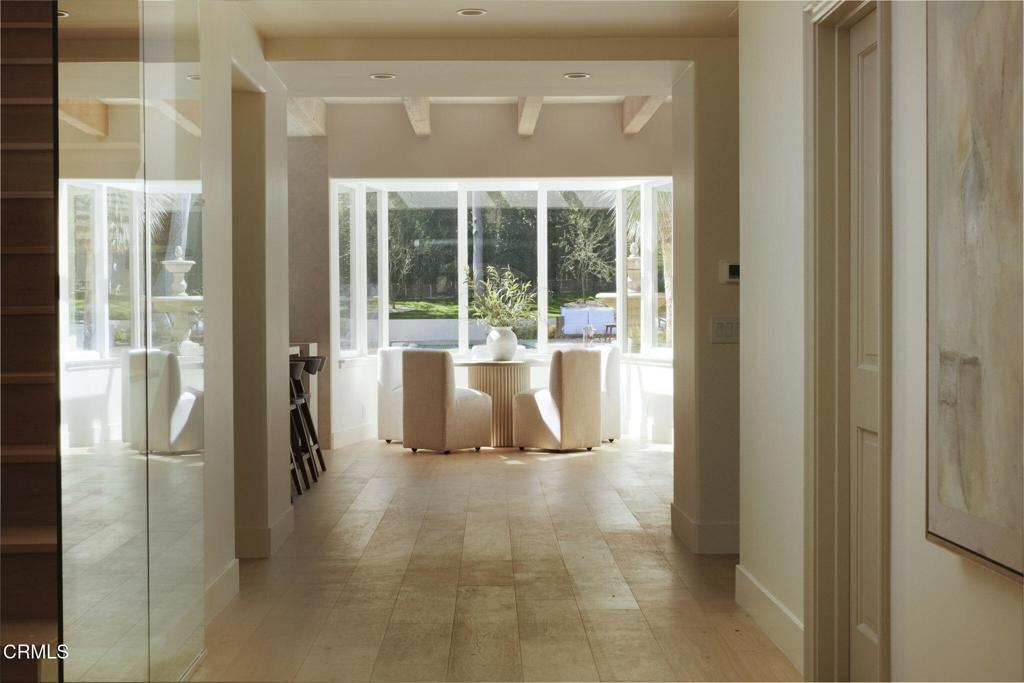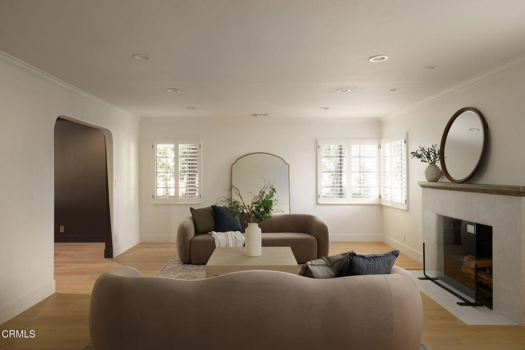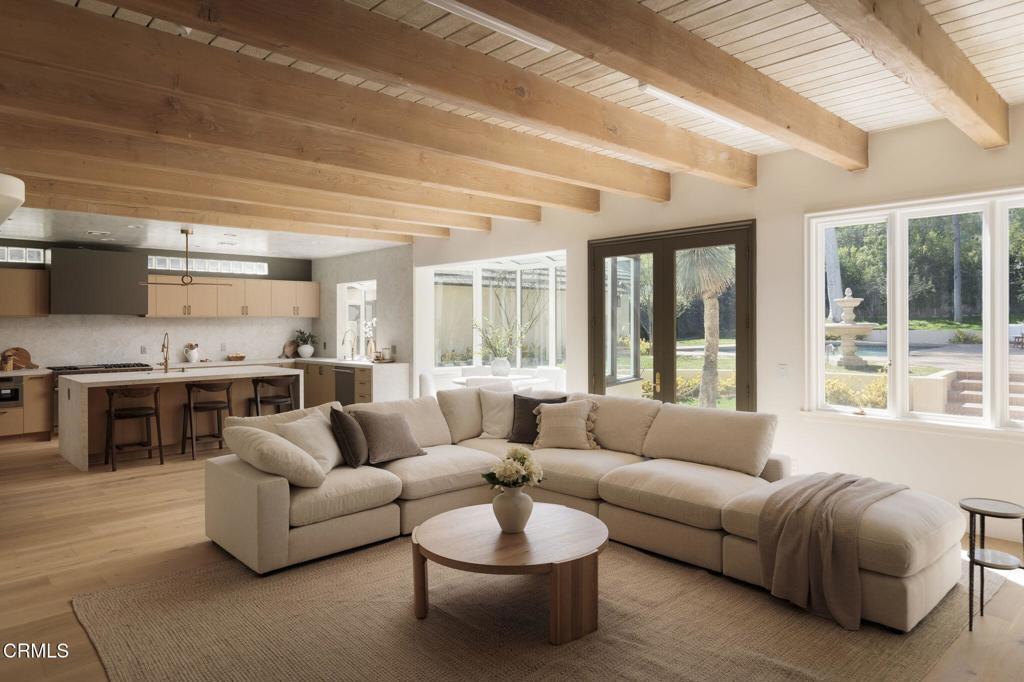 Enchanting French Country Revival in Pasadena's coveted Linda Vista neighborhood.Tucked along a quiet, picturesque street, this beautifully reimagined residence blends timeless European charm with fresh, sophisticated design. A private, storybook garden and winding brick path welcome you to the home, setting the tone for the serene and romantic living experience that awaits inside. Recently renovated with a refined eye for design, the nearly 5,000-square-foot residence offers expansive light-filled rooms, soaring ceilings with exposed wood beams, and a seamless indoor-outdoor flow ideal for both everyday living and elegant entertaining. Rich wood flooring, curated lighting, and thoughtful designer selections elevate each space.A gracious formal entry leads to beautifully scaled living and dining rooms, while the stunning great room forms the heart of the home--featuring a chef's kitchen with abundant cabinetry, stone countertops, built-in appliances, a waterfall center island with breakfast seating, and a sunlit solarium breakfast alcove. The kitchen opens effortlessly to the inviting family room with custom built-ins, a fireplace, a bar area, and French doors leading to the gardens. The flexible floor plan includes five bedrooms and four-and-a-half baths, with three bedrooms on the main level, including a handsome library/study with built-ins. Upstairs, the spectacular primary suite serves as a luxurious retreat with vaulted wood-beam ceilings, a fireplace, a sitting area, dual walk-in closets, and a spa-inspired bath. Set on a sprawling 14,000+ sq ft lot, the park-like grounds feature winding brick pathways, mature fruit trees, multiple patio areas, and a classic, sparkling pool and spa with an outdoor bathroom/changing room. Located near the North Arroyo, the Rose Bowl, the Art Center, and the Aquatic Center, this magical property offers exceptional privacy while remaining close to Old Town Pasadena, La Canada Flintridge, DTLA, and the best of Los Angeles and the San Gabriel Valley.