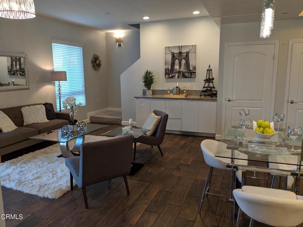 Amazing Secured Condo in a great Location of Downtown Alhambra.This beautiful 2 bedroom 3 bath condo has a spacious open floor plan. Modern kitchen with white etched glass cabinets granite counter, Stainless steel 5 burner Stove, microwave and dishwasher. Living room has great built-in cabinets and TV cabinets that match the kitchen, new lighting downstairs Easy care ceramic wood look floors on the first floor, Carpet in the upstairs bedrooms. Large Master bathroom with custom walk in closet and large bathroom with tub. Upstairs den space can be used for office or sitting area. Upstairs Stacked washer and dryer makes it convenient to do your laundry.2 secured parking spots. You have restaurants on the first floor and within the next few blocks you have an array of restaurants, grocery stores, shopping, and theaters. This could be your next home. Photos show previous staged photos and current empty condo photos.
