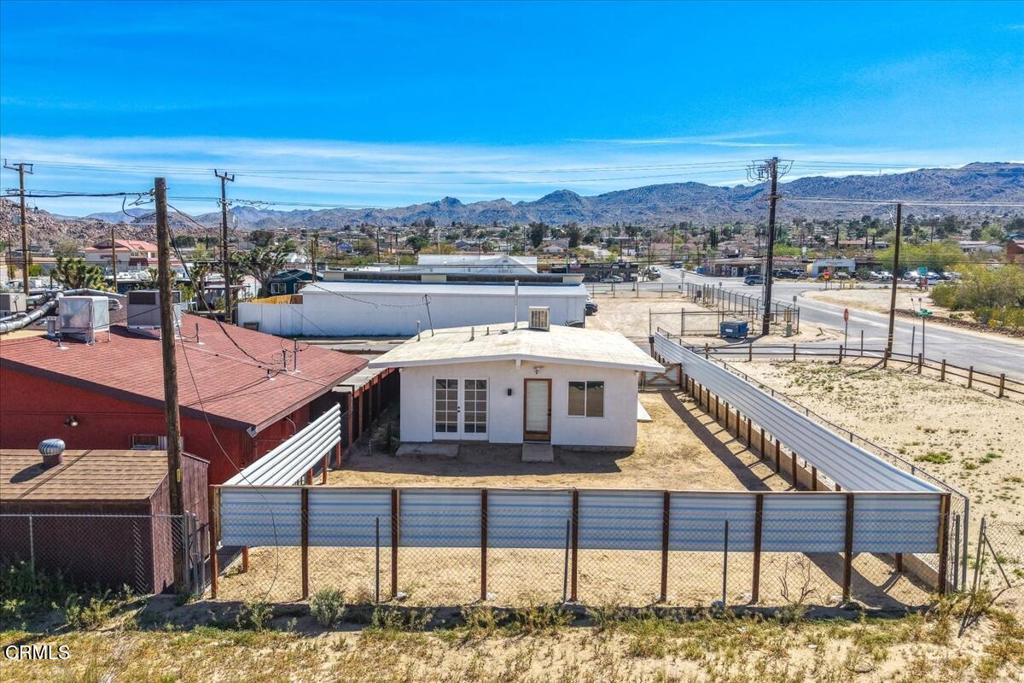 One block from the heart of downtown Joshua Tree, in full view of the farmers market and the steady foot traffic that defines this neighborhood, sits one of the most versatile commercial spaces in the desert. Natural light pours through the day. French doors open from the rear rooms to a fully fenced private yard - a patio, a garden, client entrance, or simply the best part of a workday. This live/work space offers a flexible layout that flows from an open front area into two generous rear rooms and a large central bathroom with ample turnaround radius. ADA compliant doorways, kitchen plumbing, washer/dryer hookups, and space plumbed for a shower add to the potential. The property has newer stucco, fresh interior and exterior paint, and an updated bathroom. This space has served as a writer's studio and a podcast recording room. IIt's also been seriously considered as a coffee shop, ice cream counter, boutique grocery, beauty studio, clothing boutique, coworking space, and office each of these possibilities made sense -- which tells you something. The current owner had to move so they were not able to see their plans to fruition but they've poured a ton into the space so you don't have to. Over 3 million people visit Joshua Tree National Park each year and walk through this neighborhood spending time and money. The businesses serving them are few. With limited commercial inventory in the area, the opportunity is clear. The adjacent parcel may also be available separately. Some photographs have been virtually enhanced to show conceptual renderings. Buyer to verify all uses, permits, and utilities.